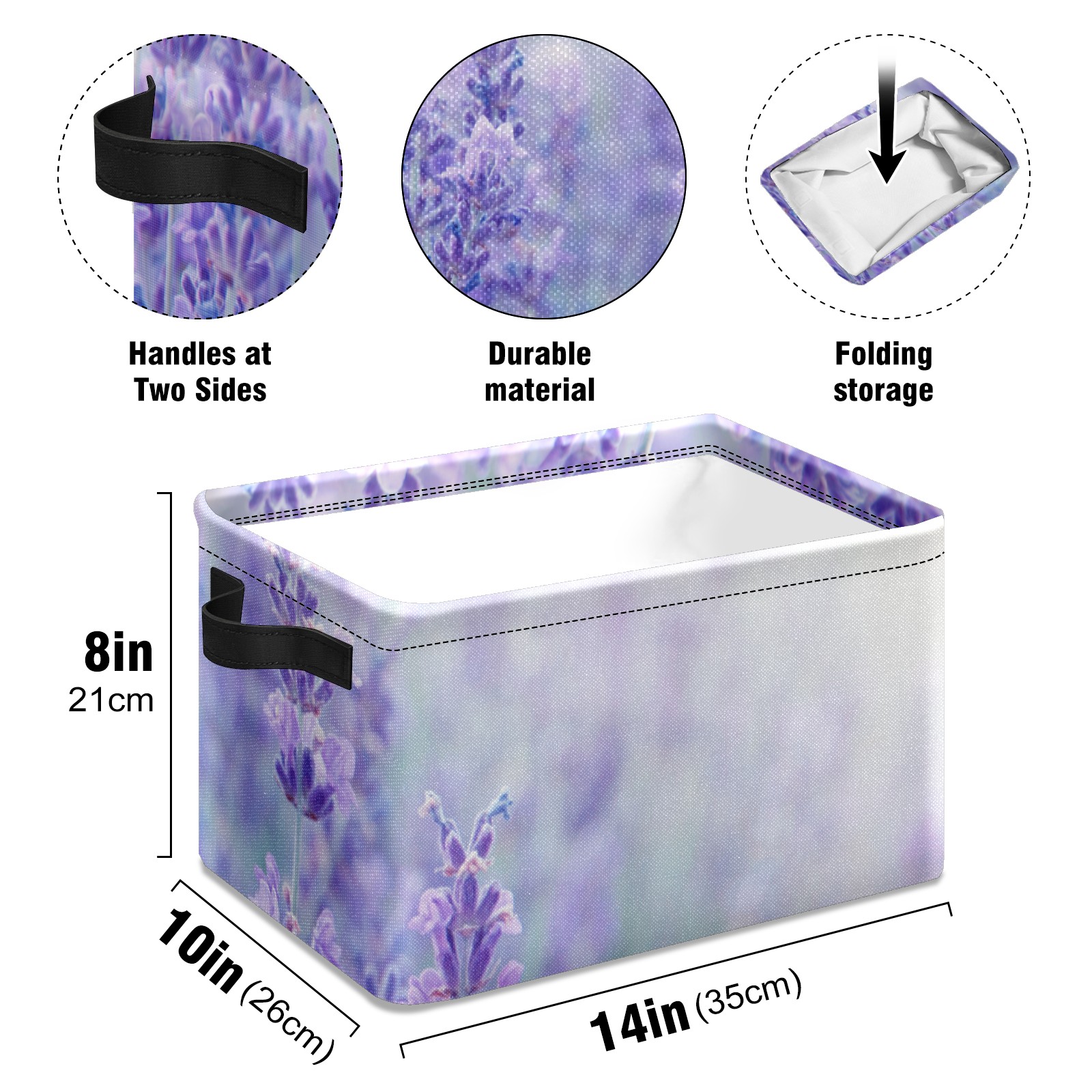 Collapsible 600D Oxford Storage Basket with Lavender Purple - Metal Frame 10"x14"x8" Reinforced Handles, Multi-Purpose Organizer
