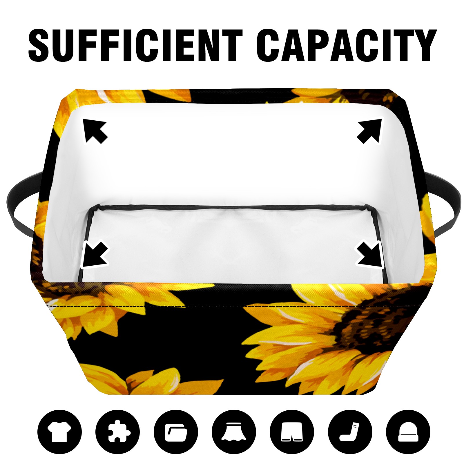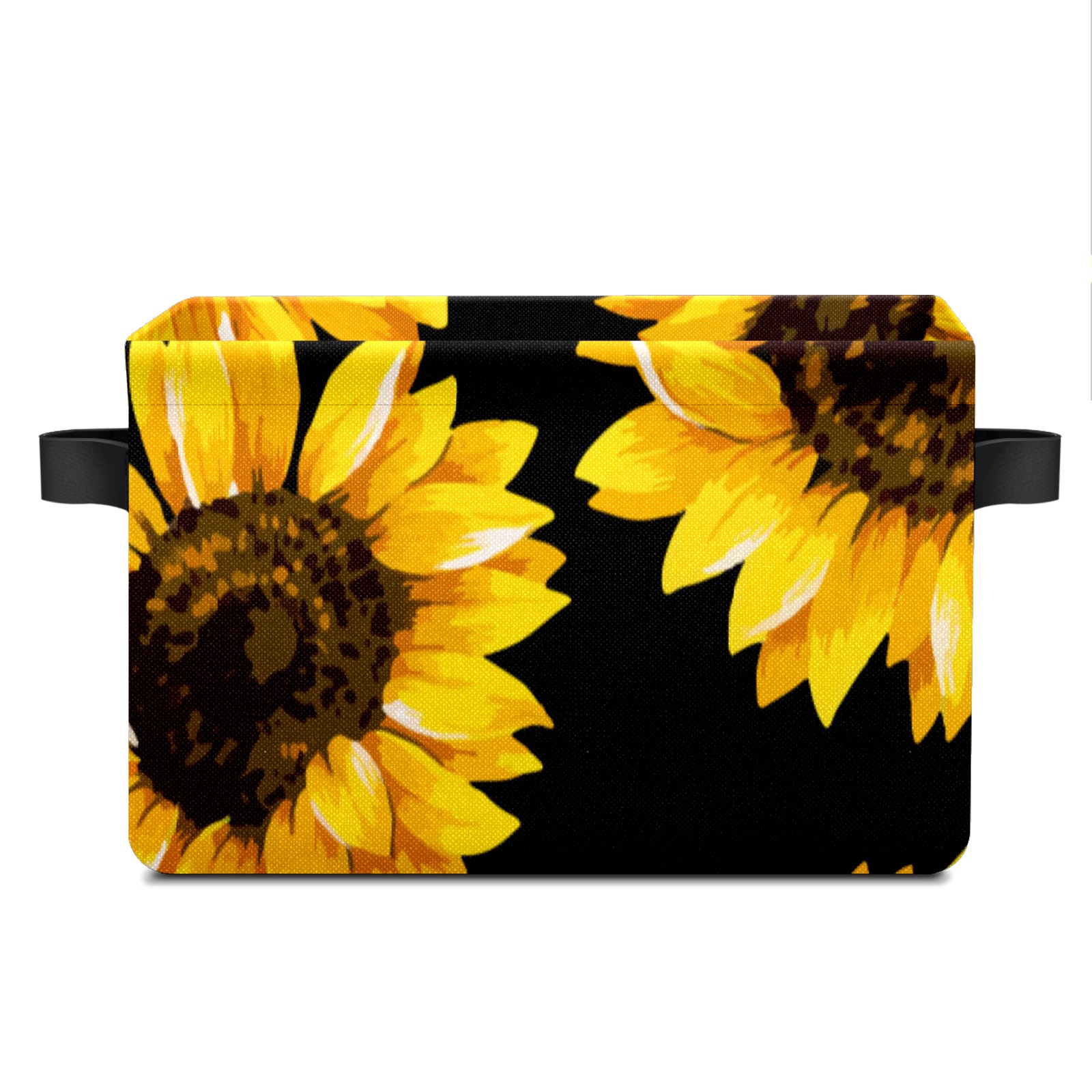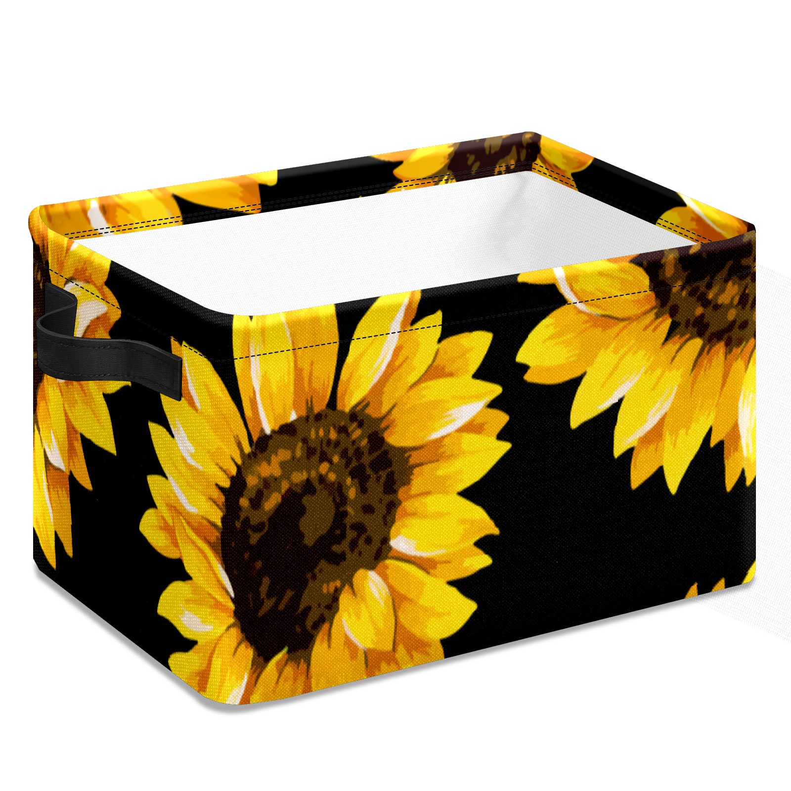 Collapsible 600D Oxford Storage Basket with Yellow Blooming Sunflowers Black - Metal Frame 10"x14"x8" Reinforced Handles, Multi-Purpose Organizer