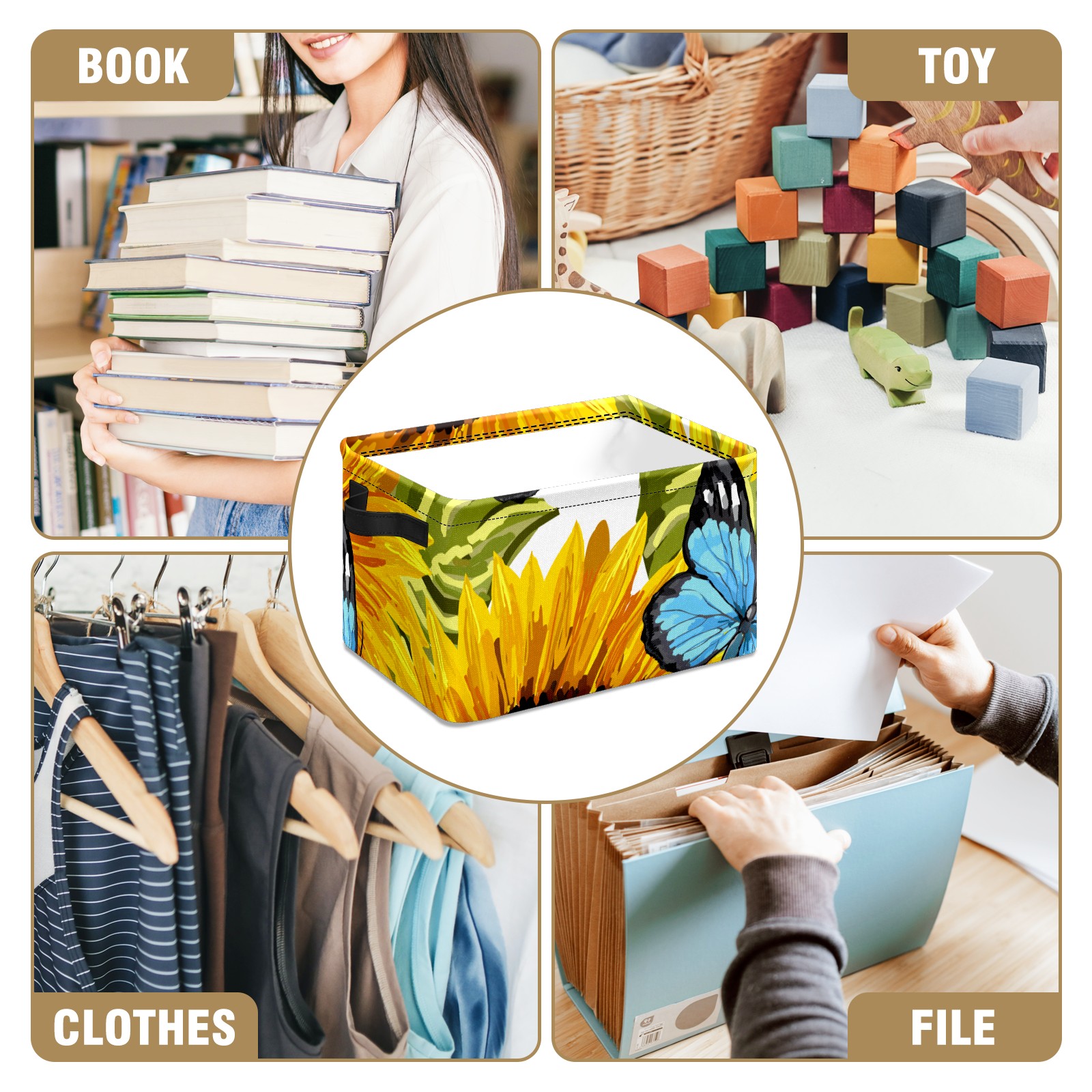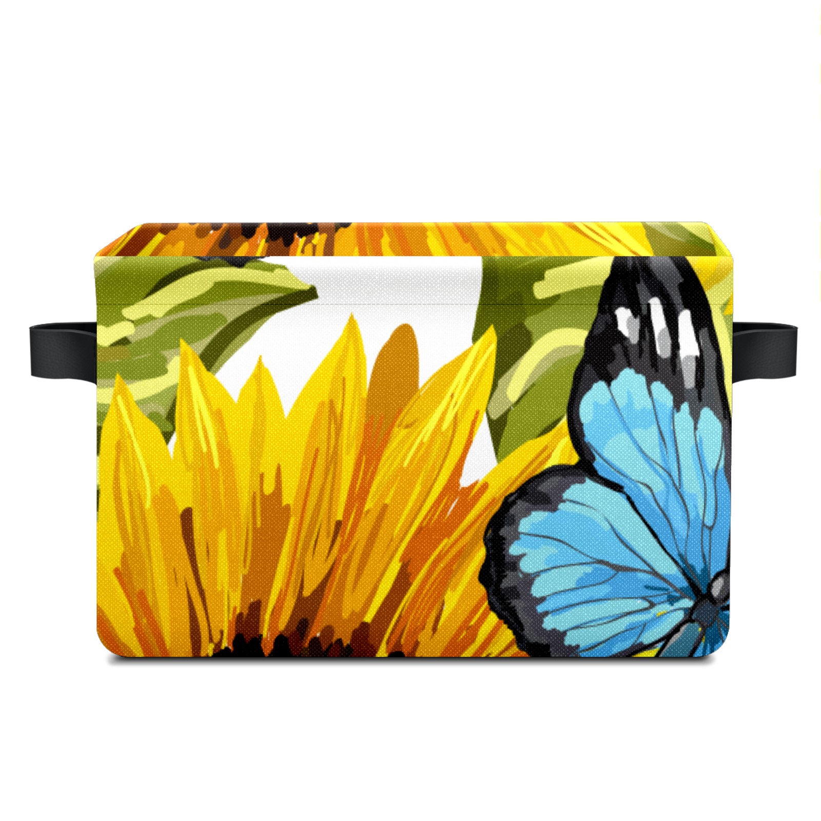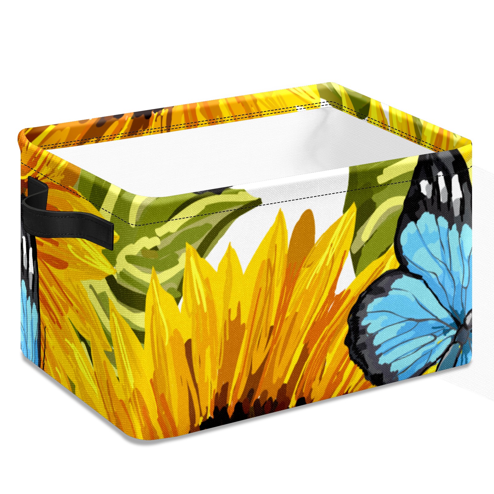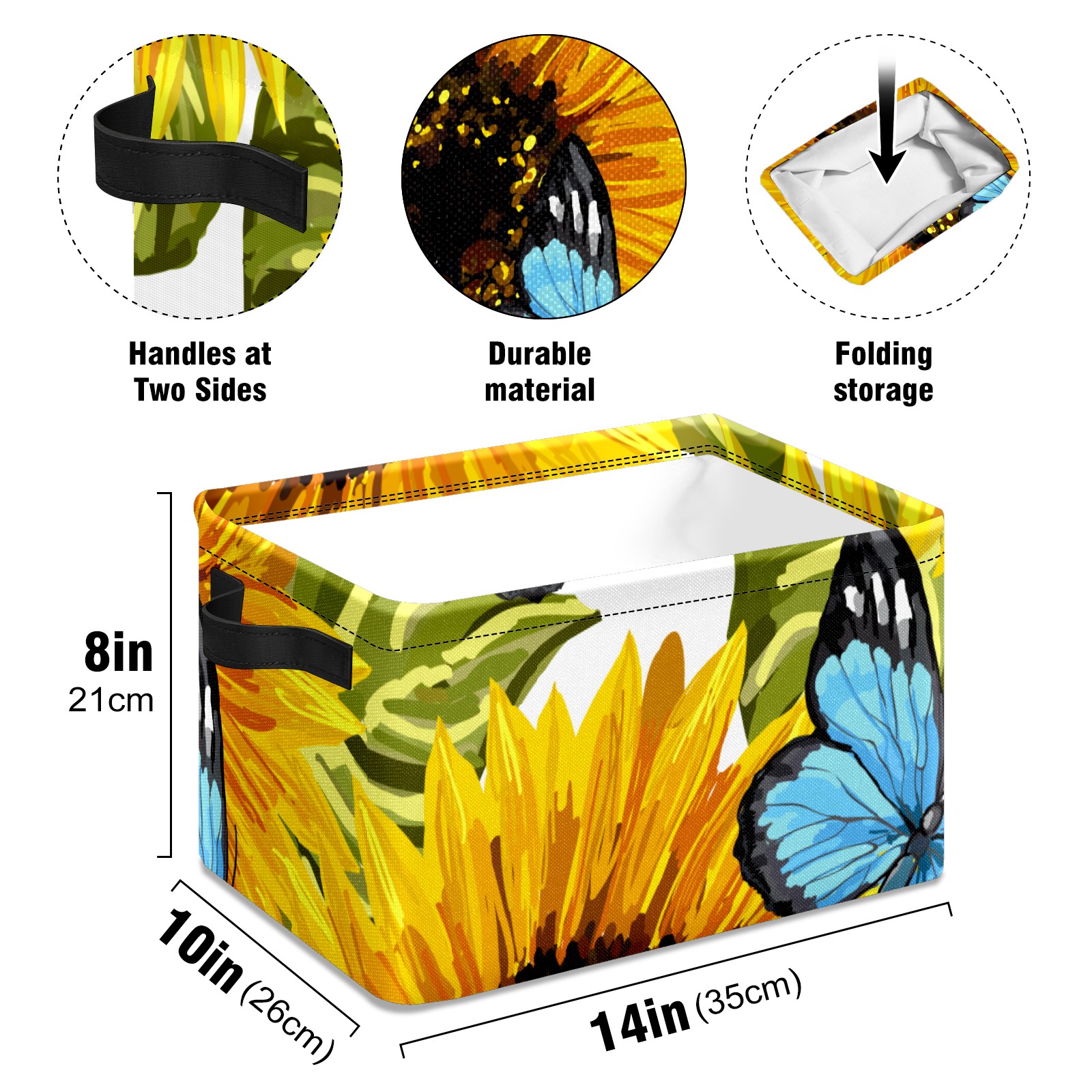 Collapsible 600D Oxford Storage Basket with Sunflower Butterfly Oil Painting - Metal Frame 10"x14"x8" Reinforced Handles, Multi-Purpose Organizer