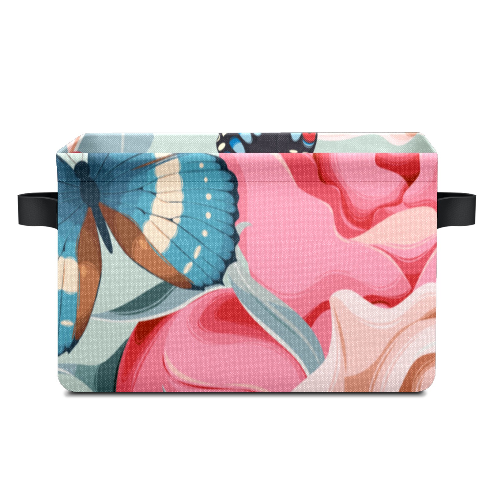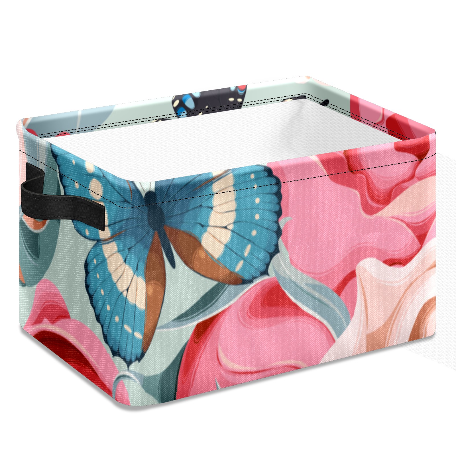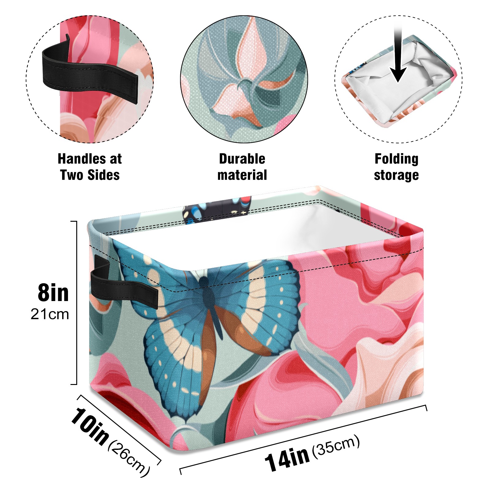 Collapsible 600D Oxford Storage Basket with Rose Butterfly Print - Metal Frame 10"x14"x8" Reinforced Handles, Multi-Purpose Organizer