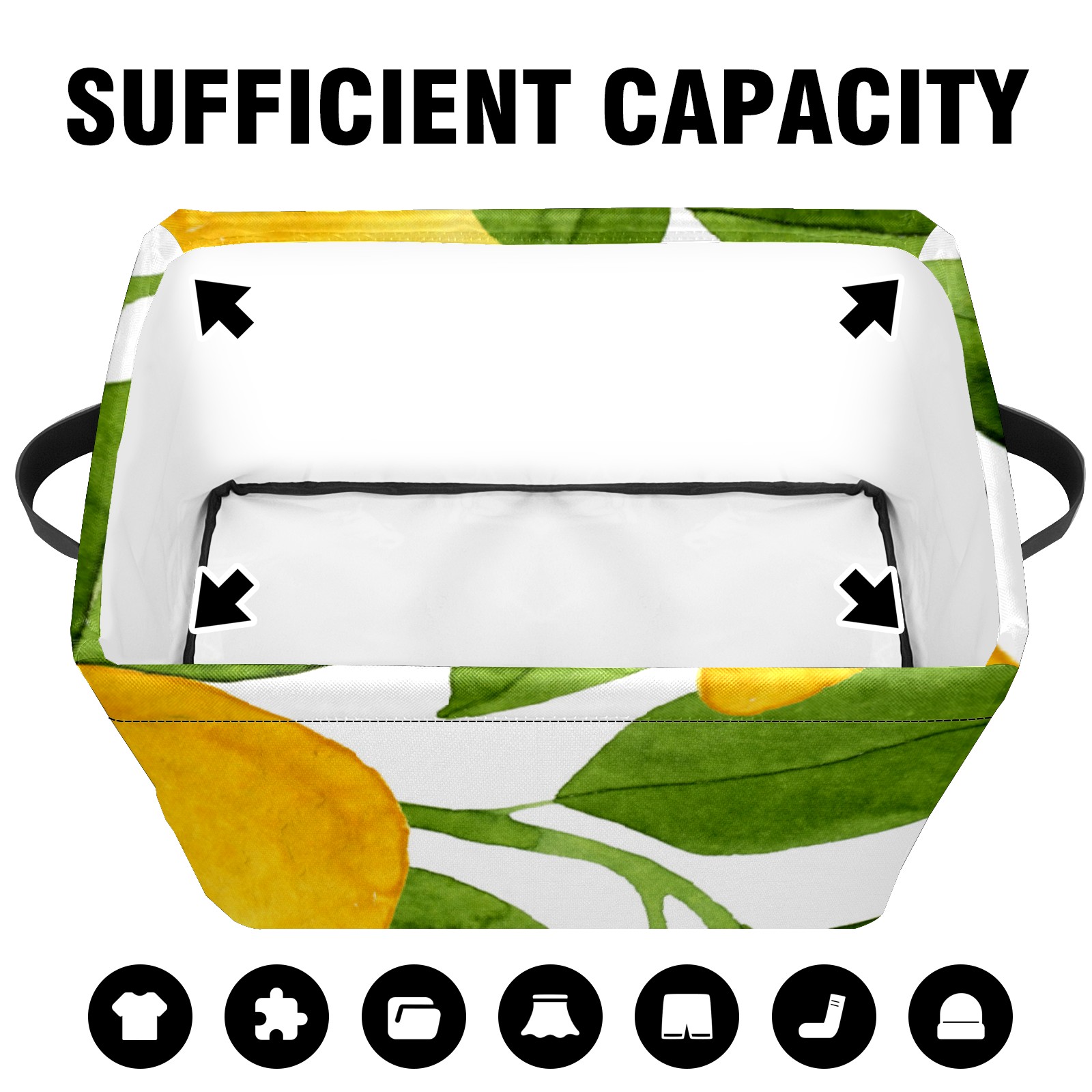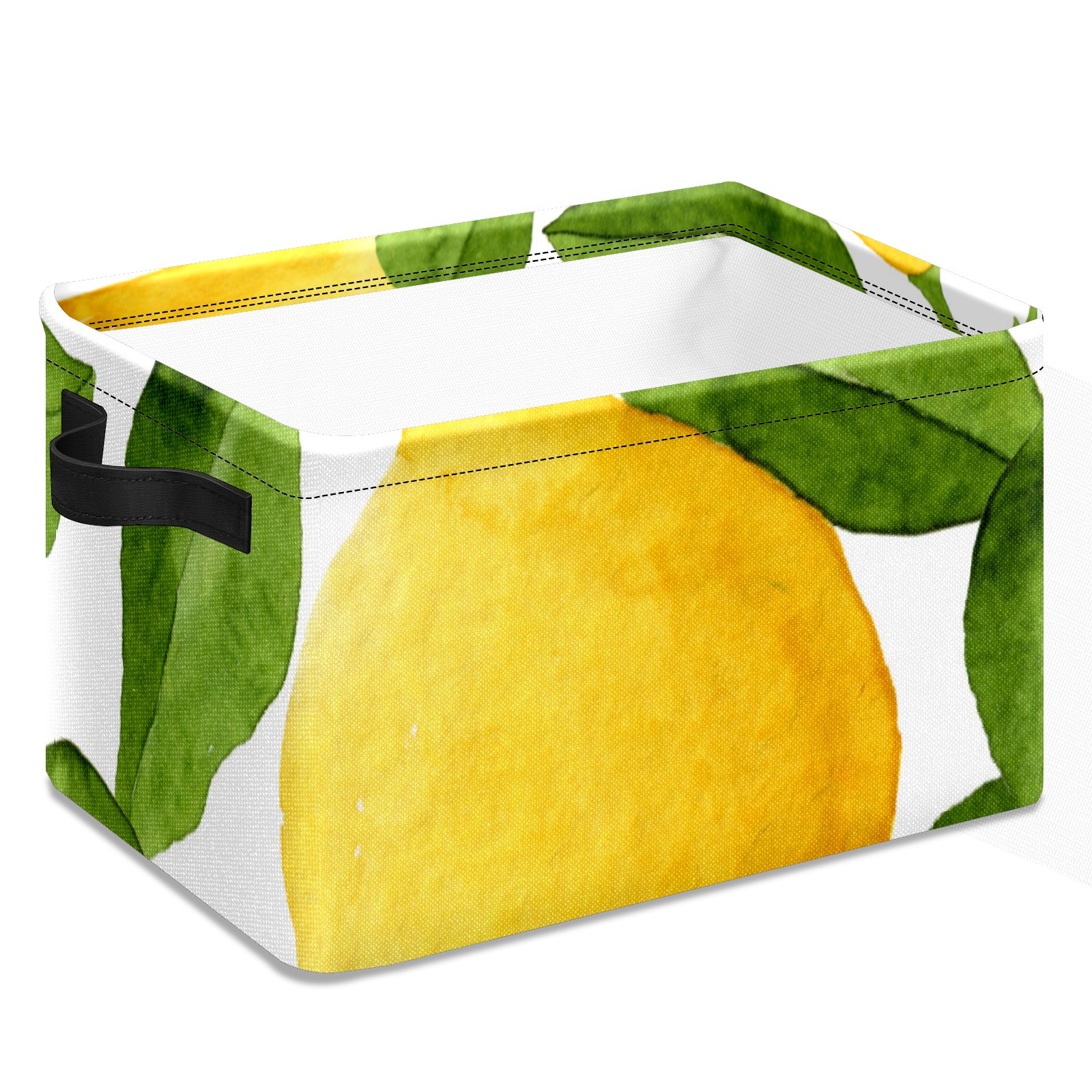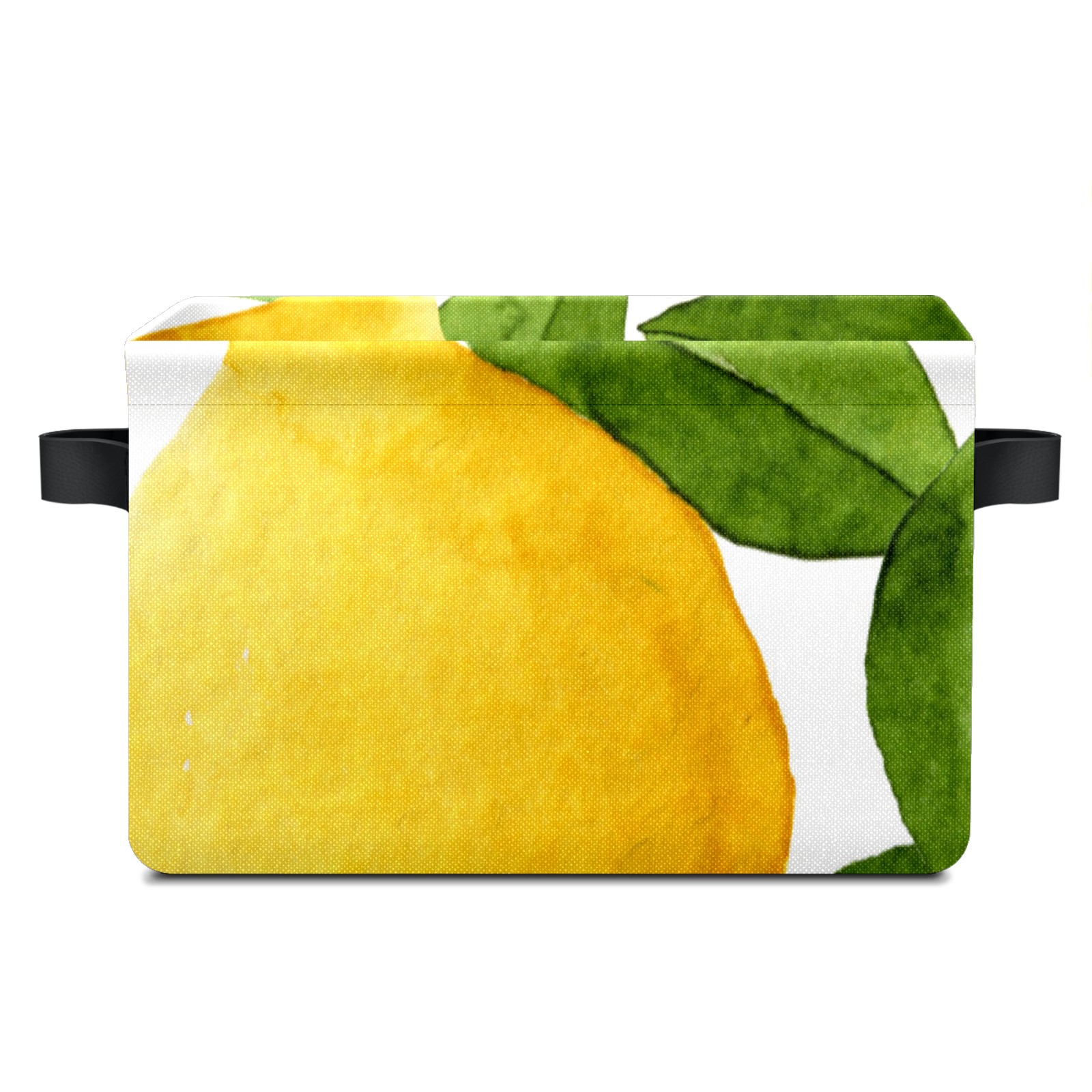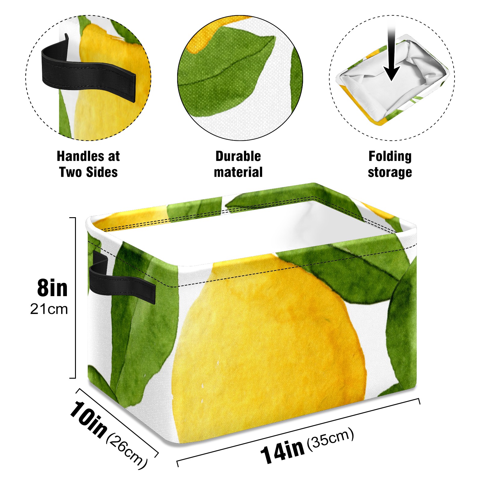 Collapsible 600D Oxford Storage Basket with Watercolor Lemon Fruit - Metal Frame 10"x14"x8" Reinforced Handles, Multi-Purpose Organizer