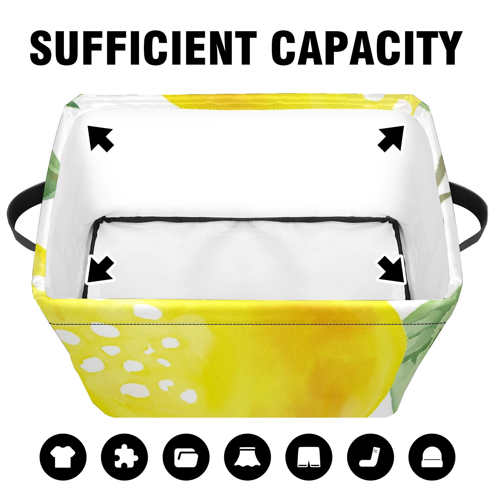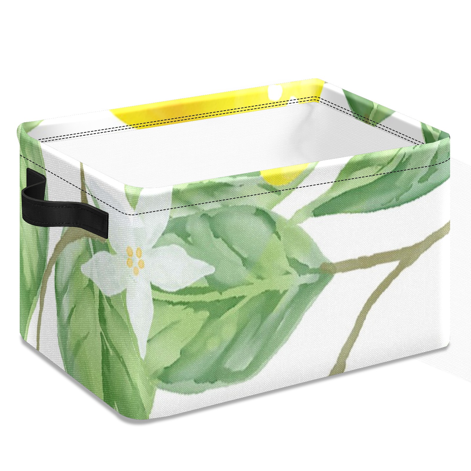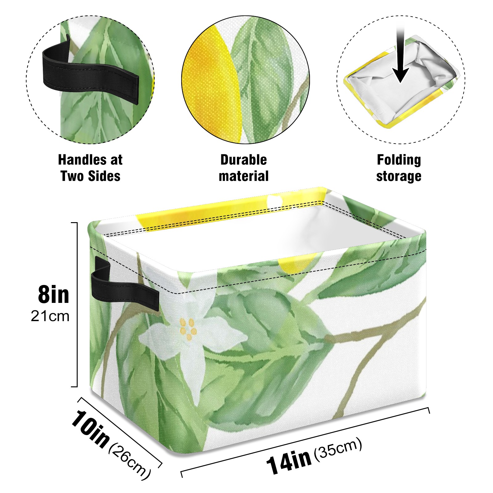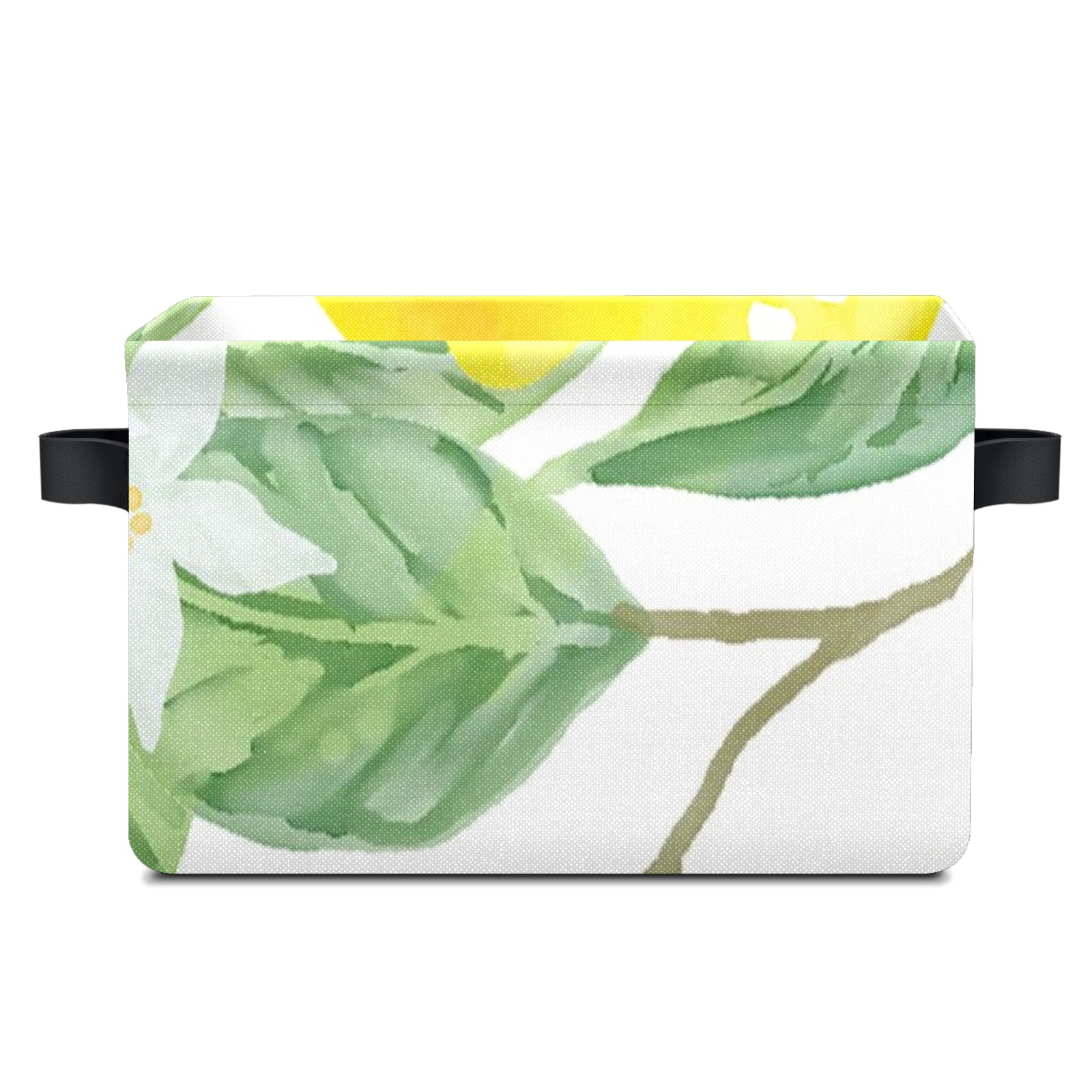 Collapsible 600D Oxford Storage Basket with Yellow Lemon - Metal Frame 10"x14"x8" Reinforced Handles, Multi-Purpose Organizer