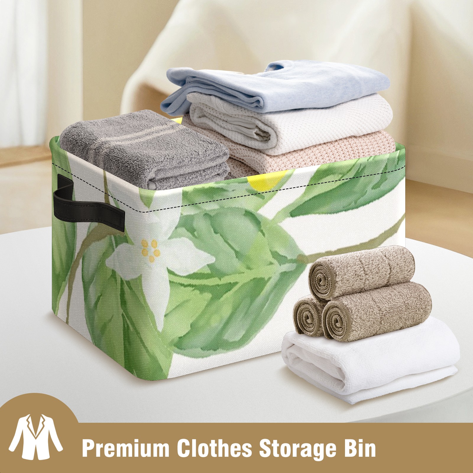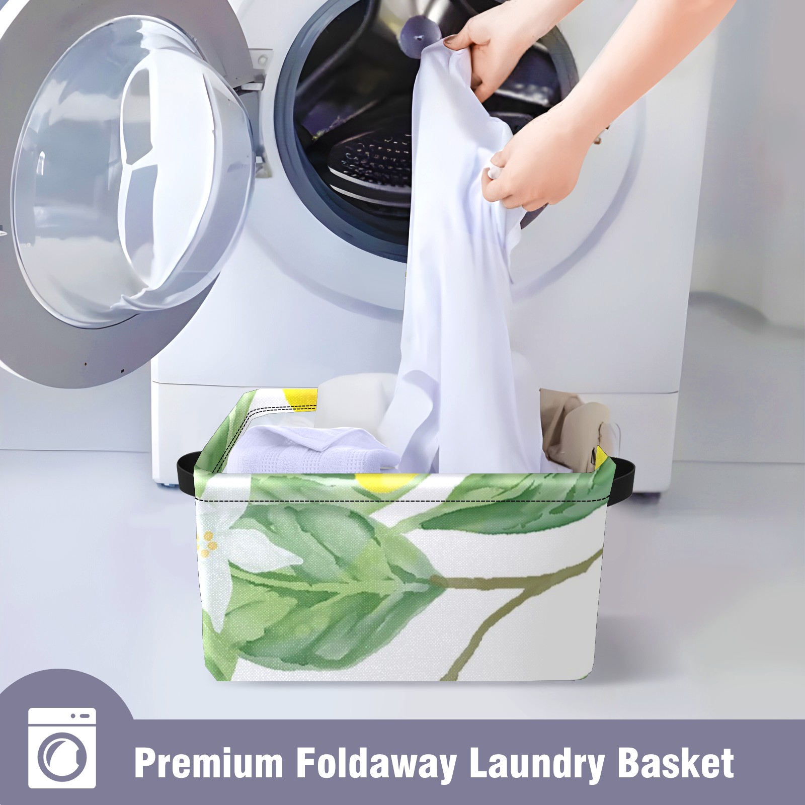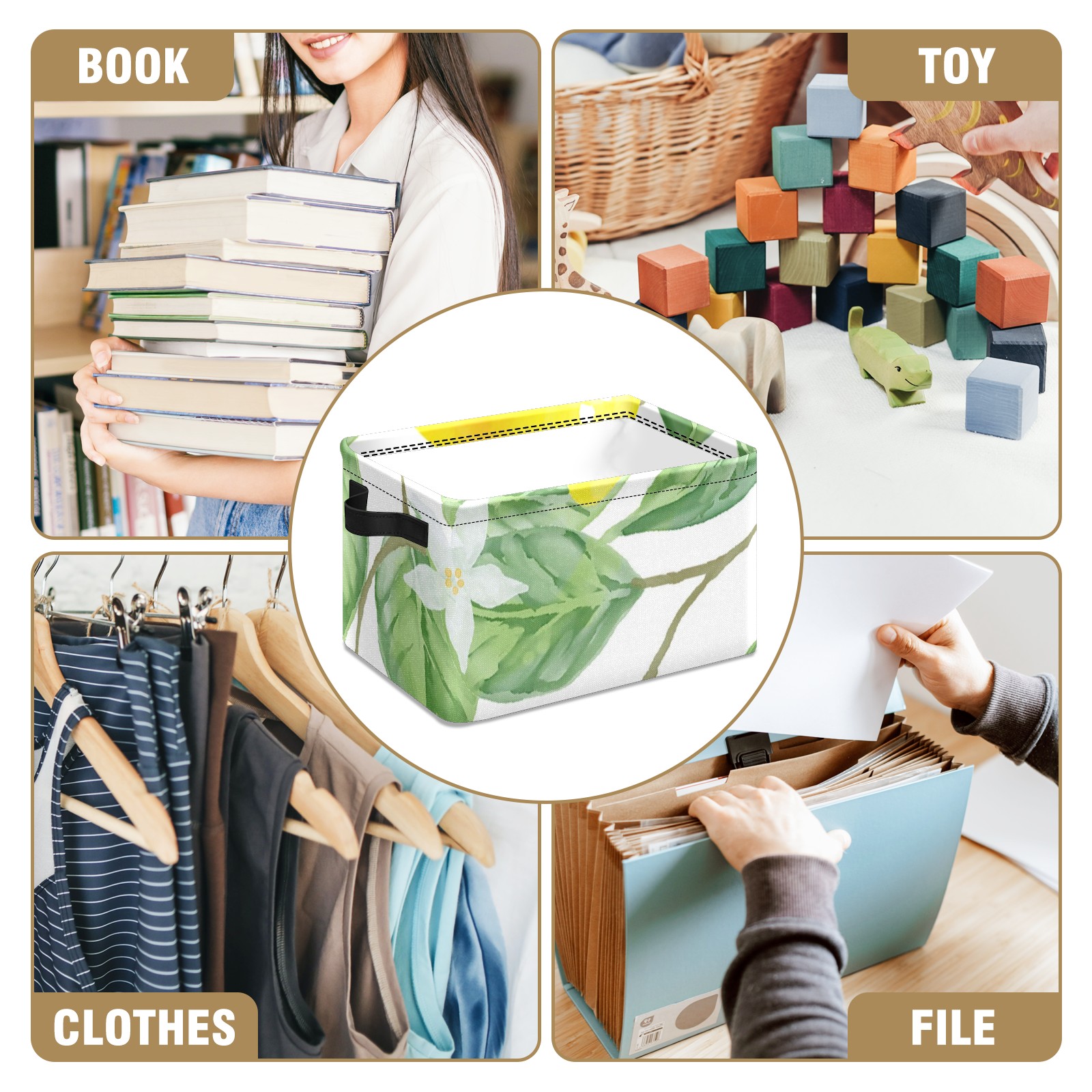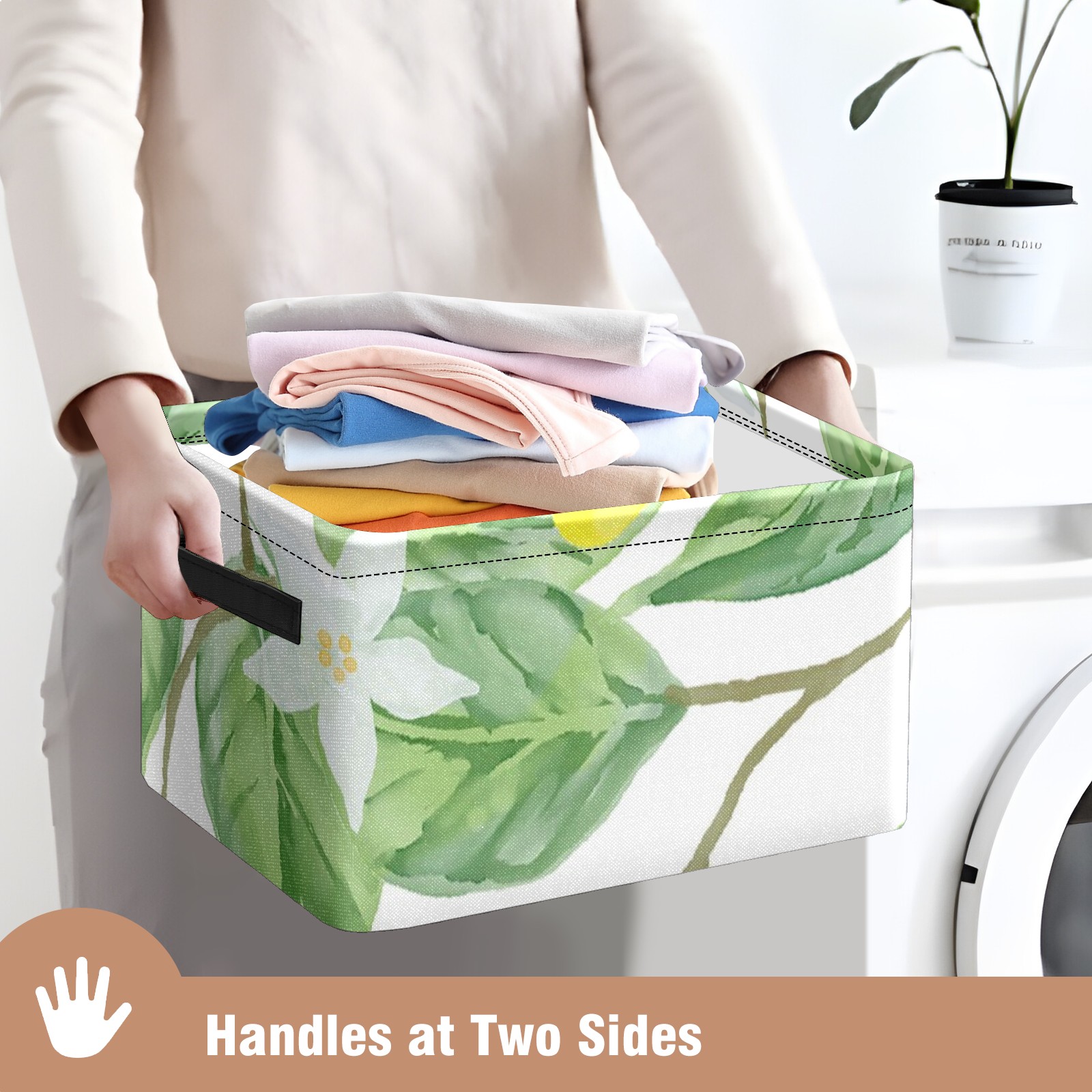 Collapsible 600D Oxford Storage Basket with Yellow Lemon - Metal Frame 10"x14"x8" Reinforced Handles, Multi-Purpose Organizer