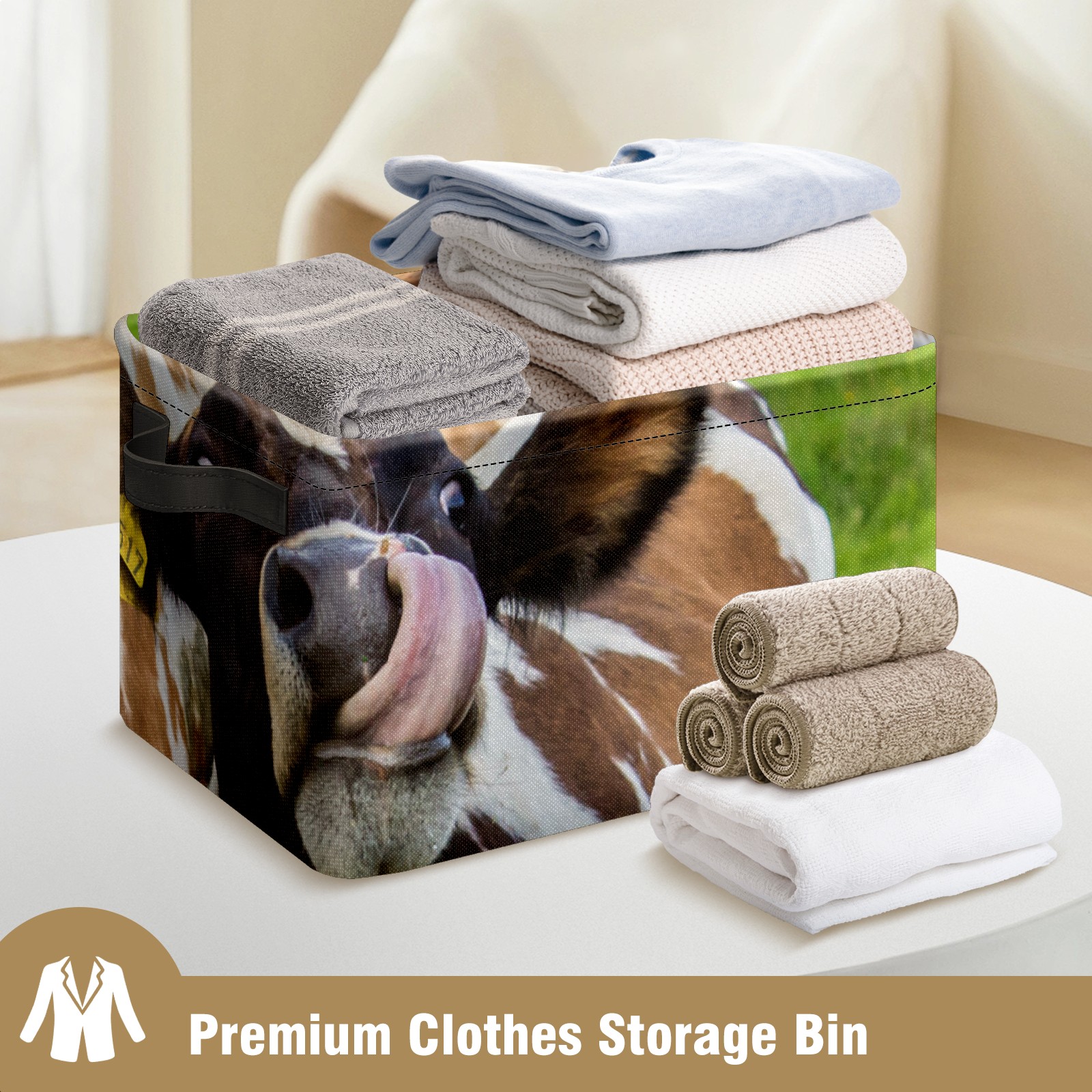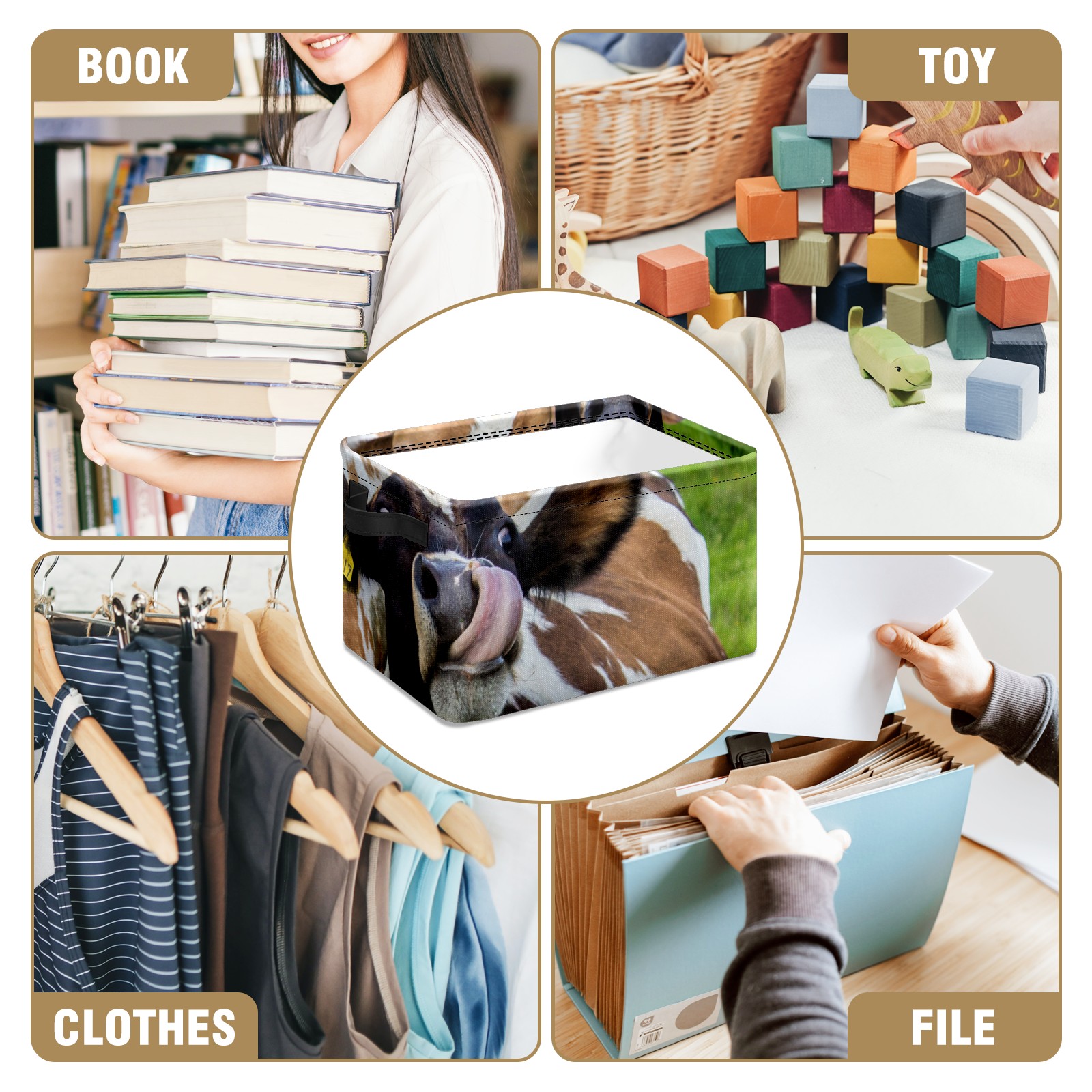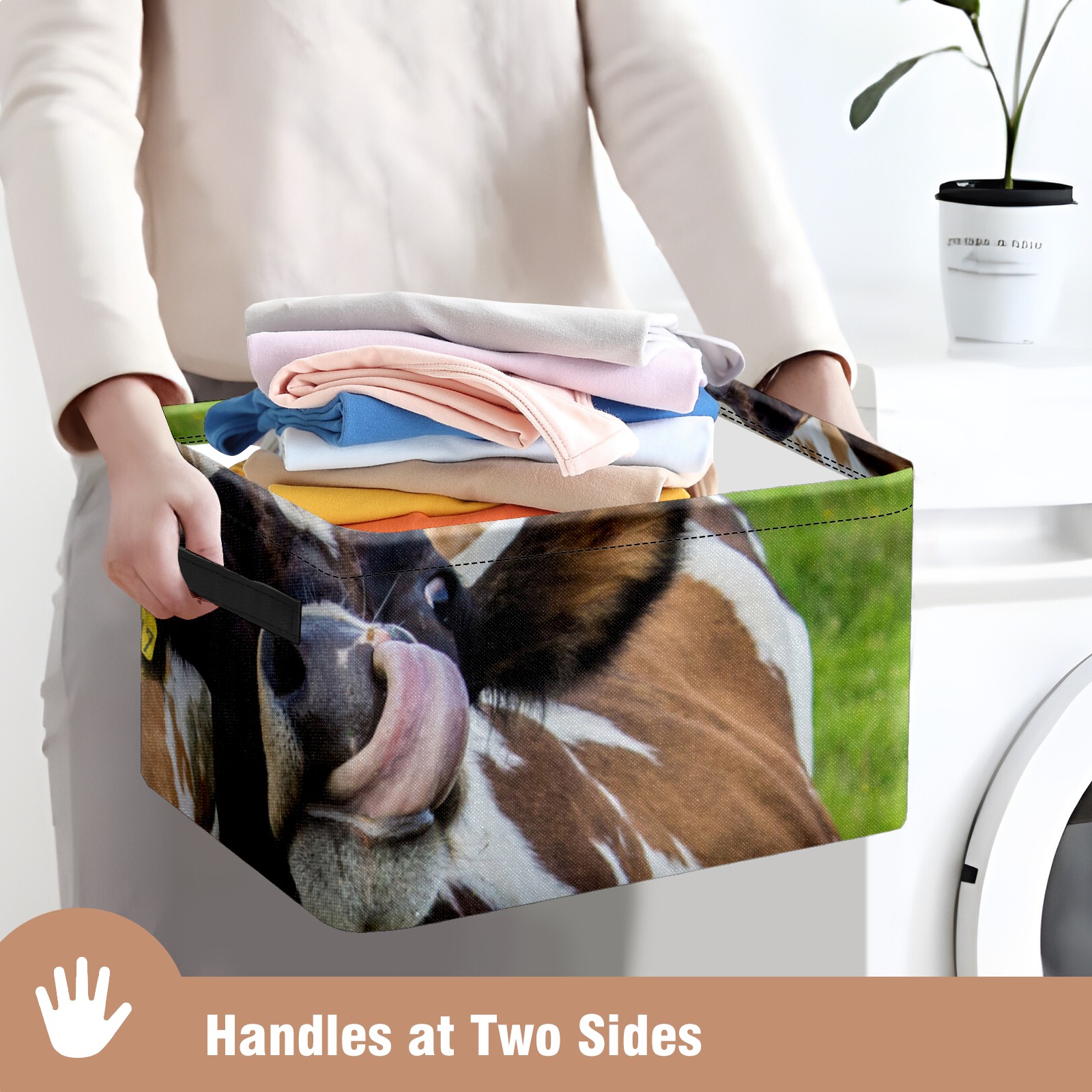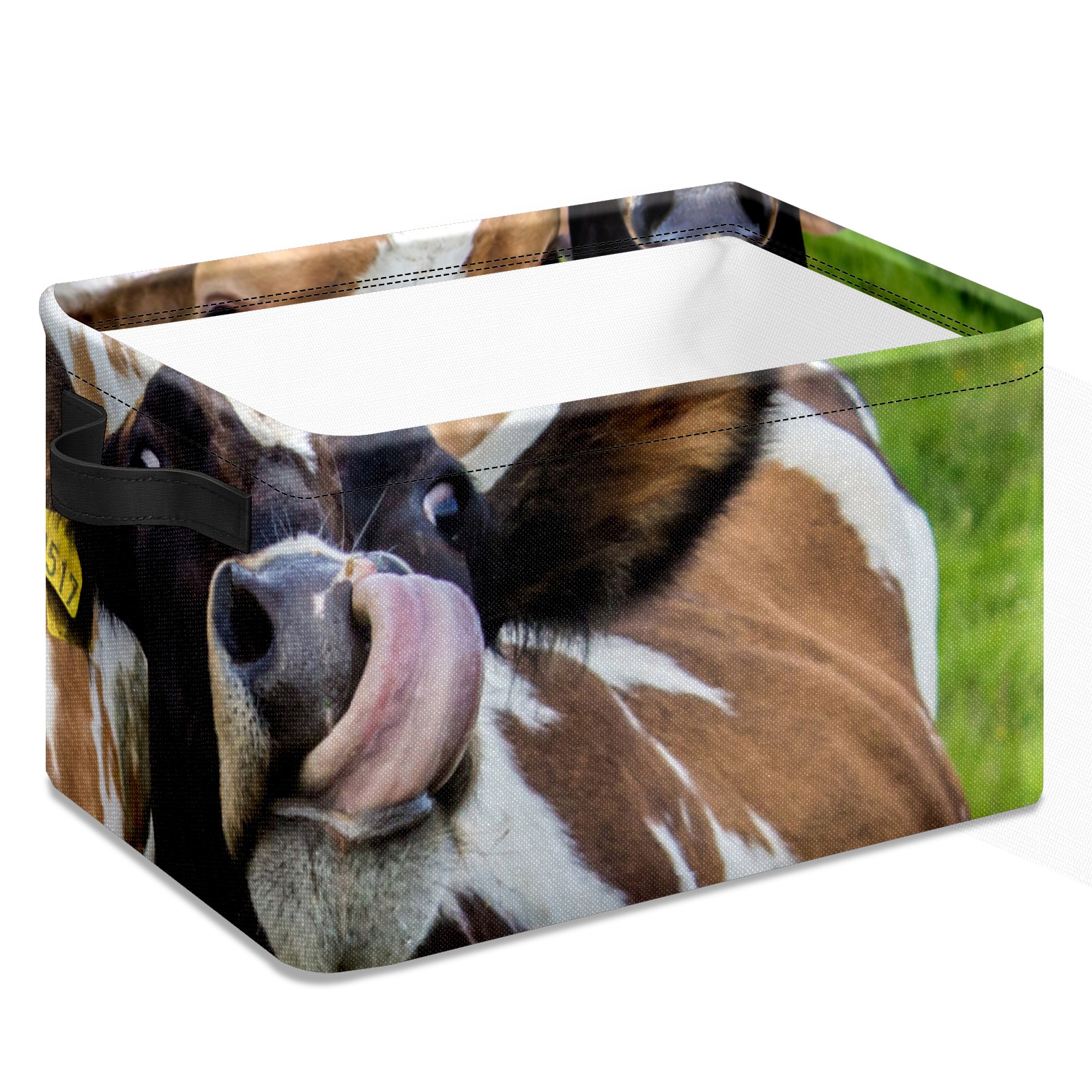 Collapsible 600D Oxford Storage Basket with Cow Grassland - Metal Frame 10"x14"x8" Reinforced Handles, Multi-Purpose Organizer