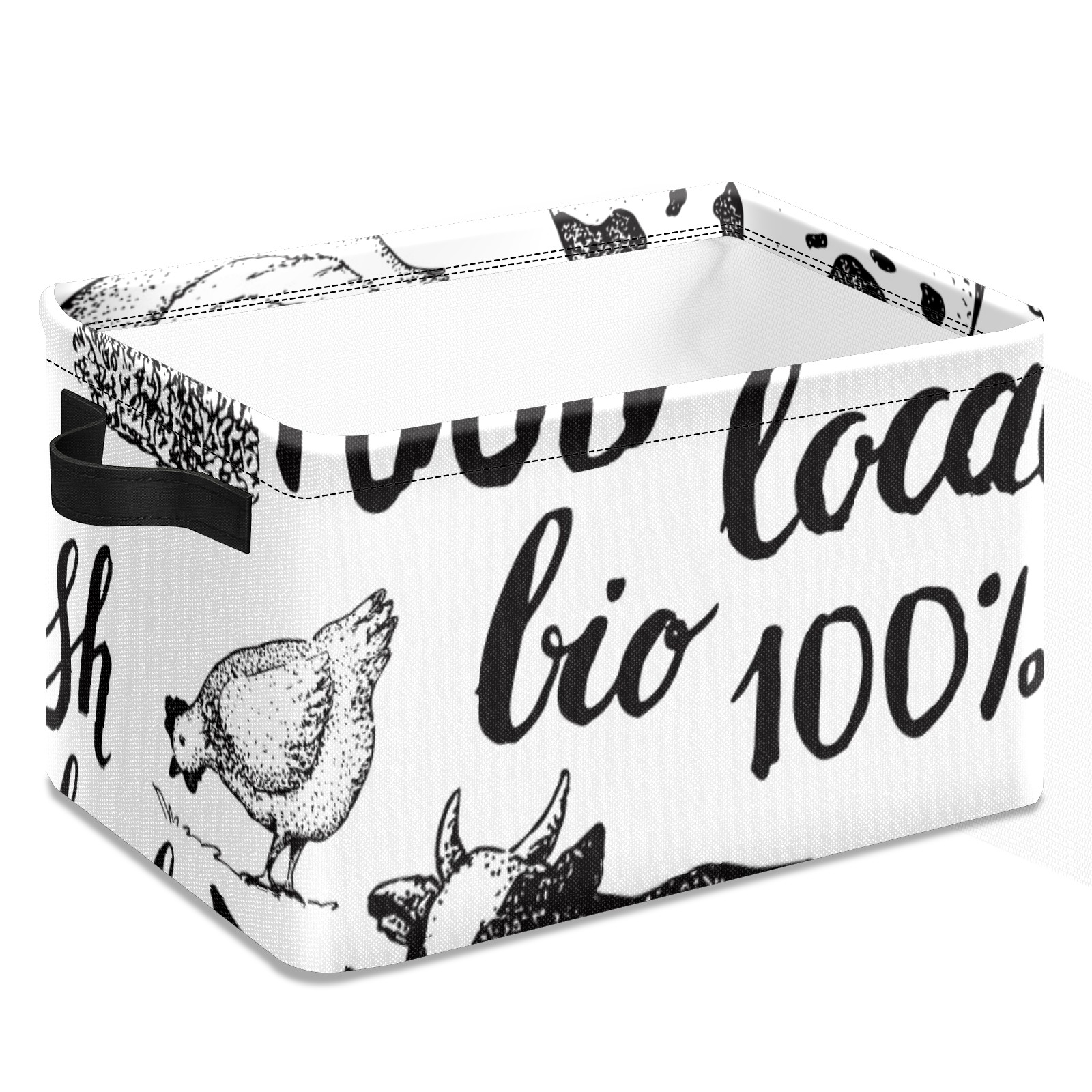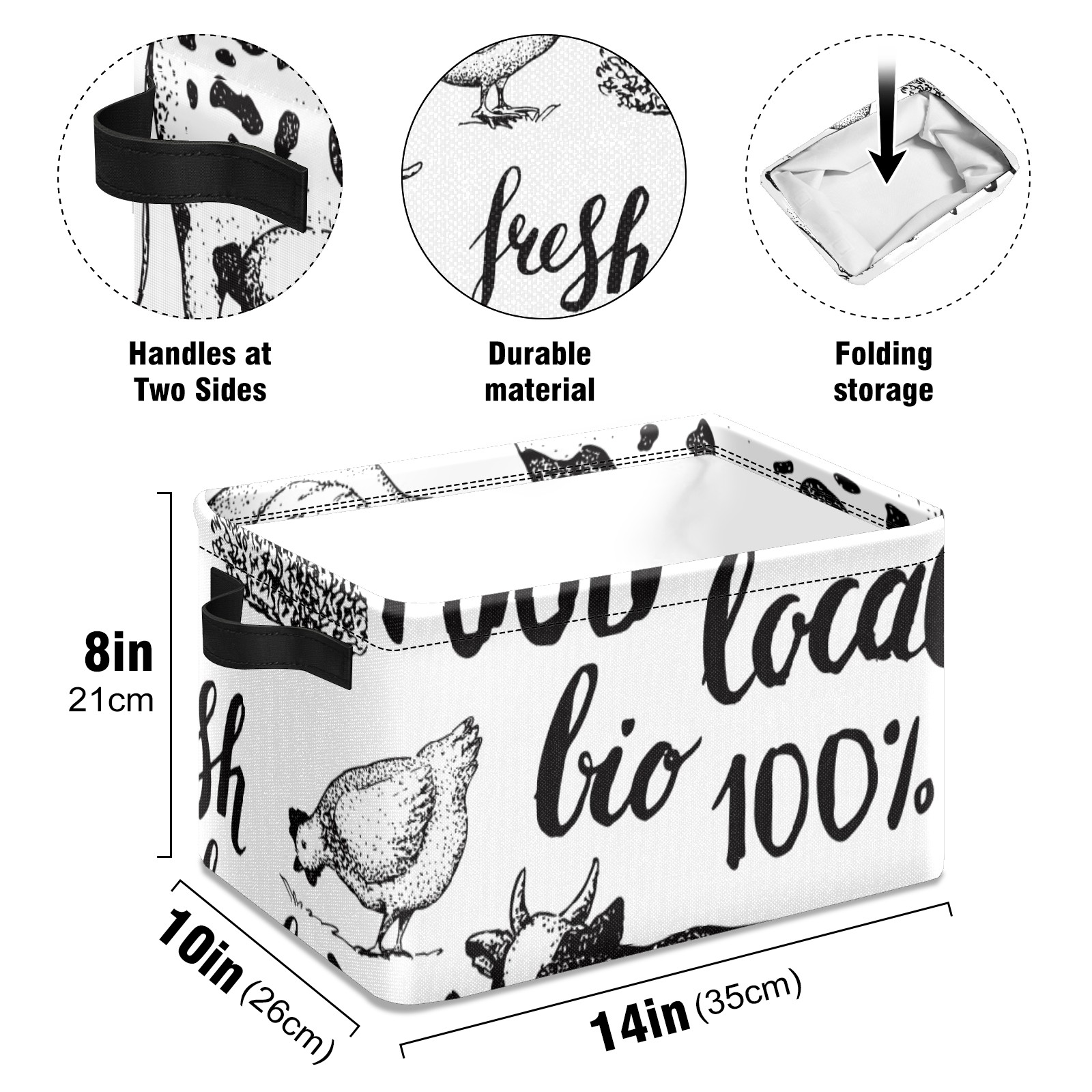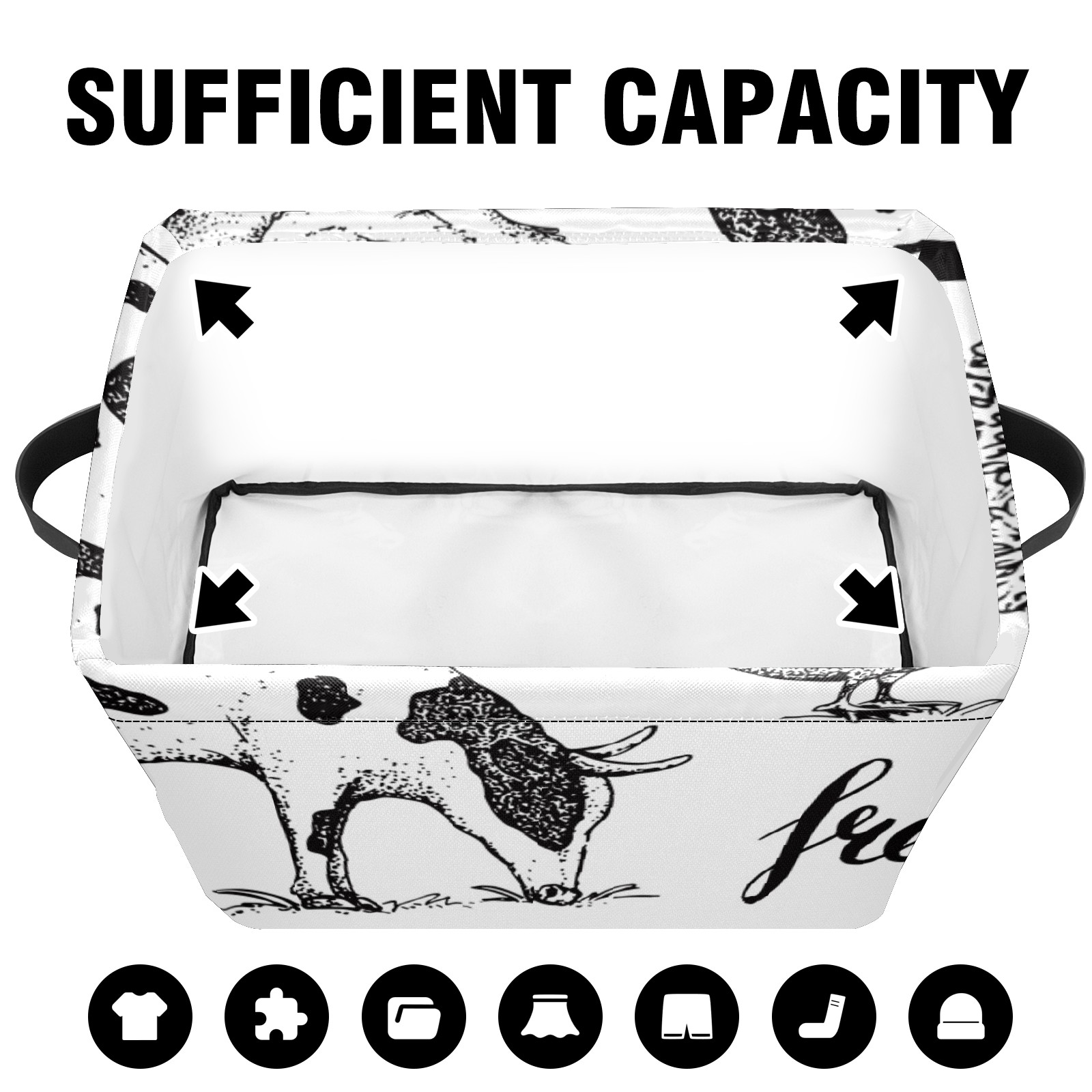 Collapsible 600D Oxford Storage Basket with Farm Animals Pig Cow Rooster Duck - Metal Frame 10"x14"x8" Reinforced Handles, Multi-Purpose Organizer