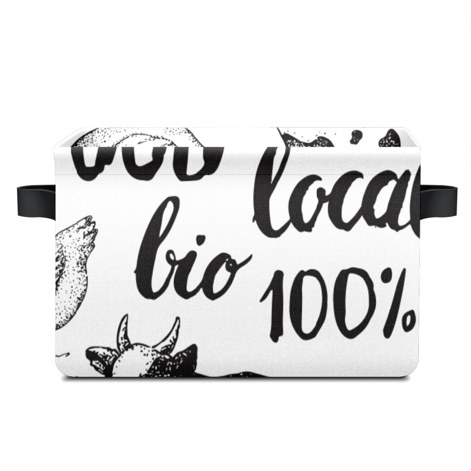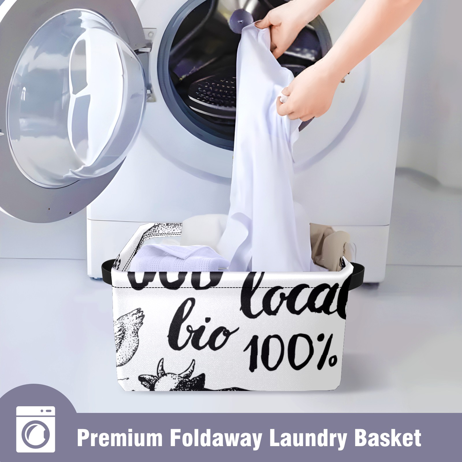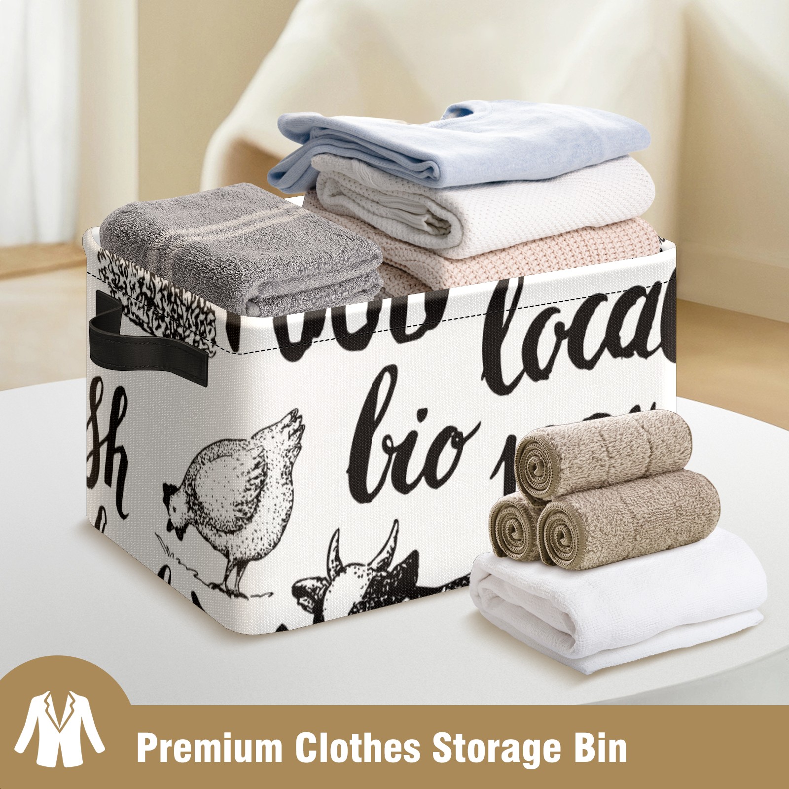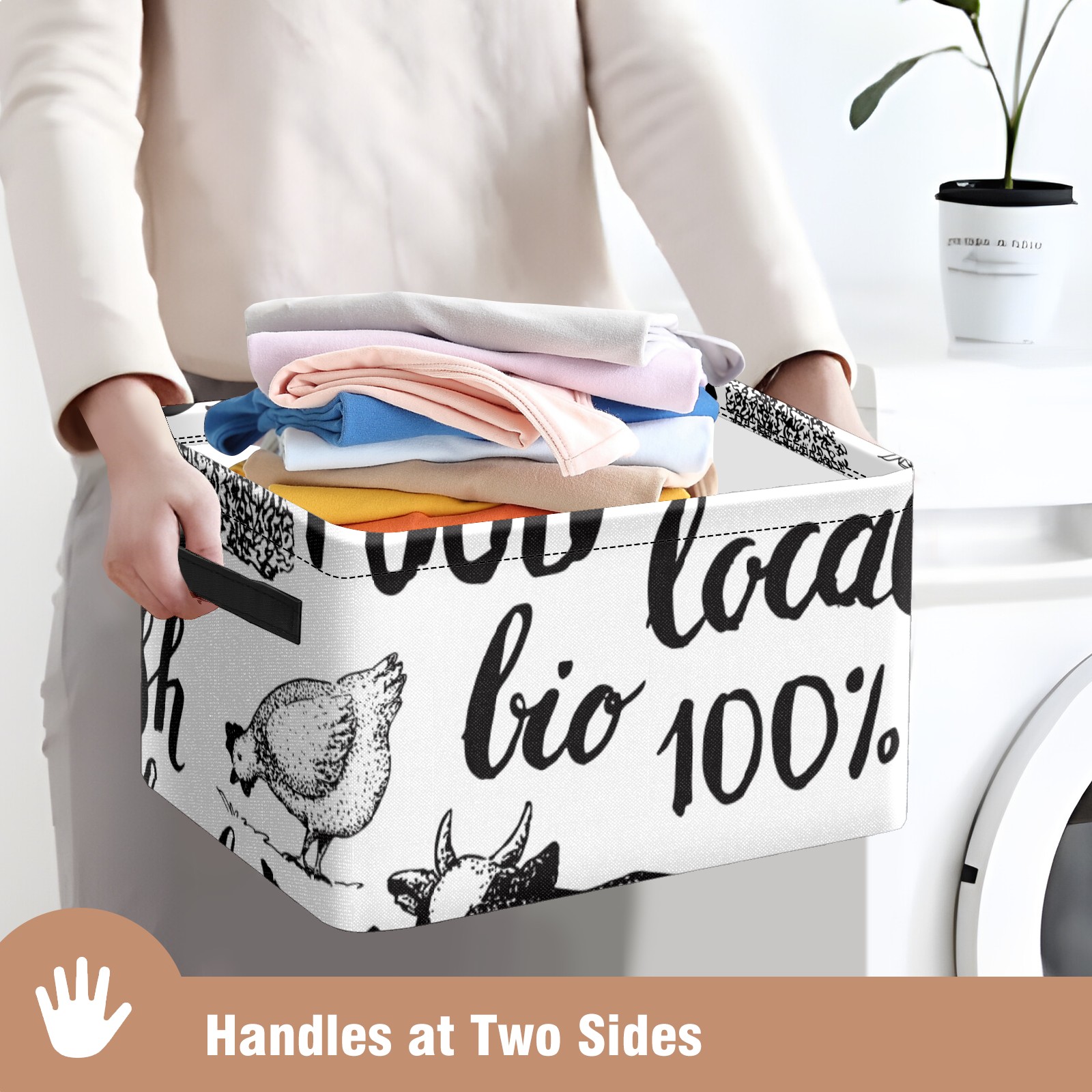 Collapsible 600D Oxford Storage Basket with Farm Animals Pig Cow Rooster Duck - Metal Frame 10"x14"x8" Reinforced Handles, Multi-Purpose Organizer