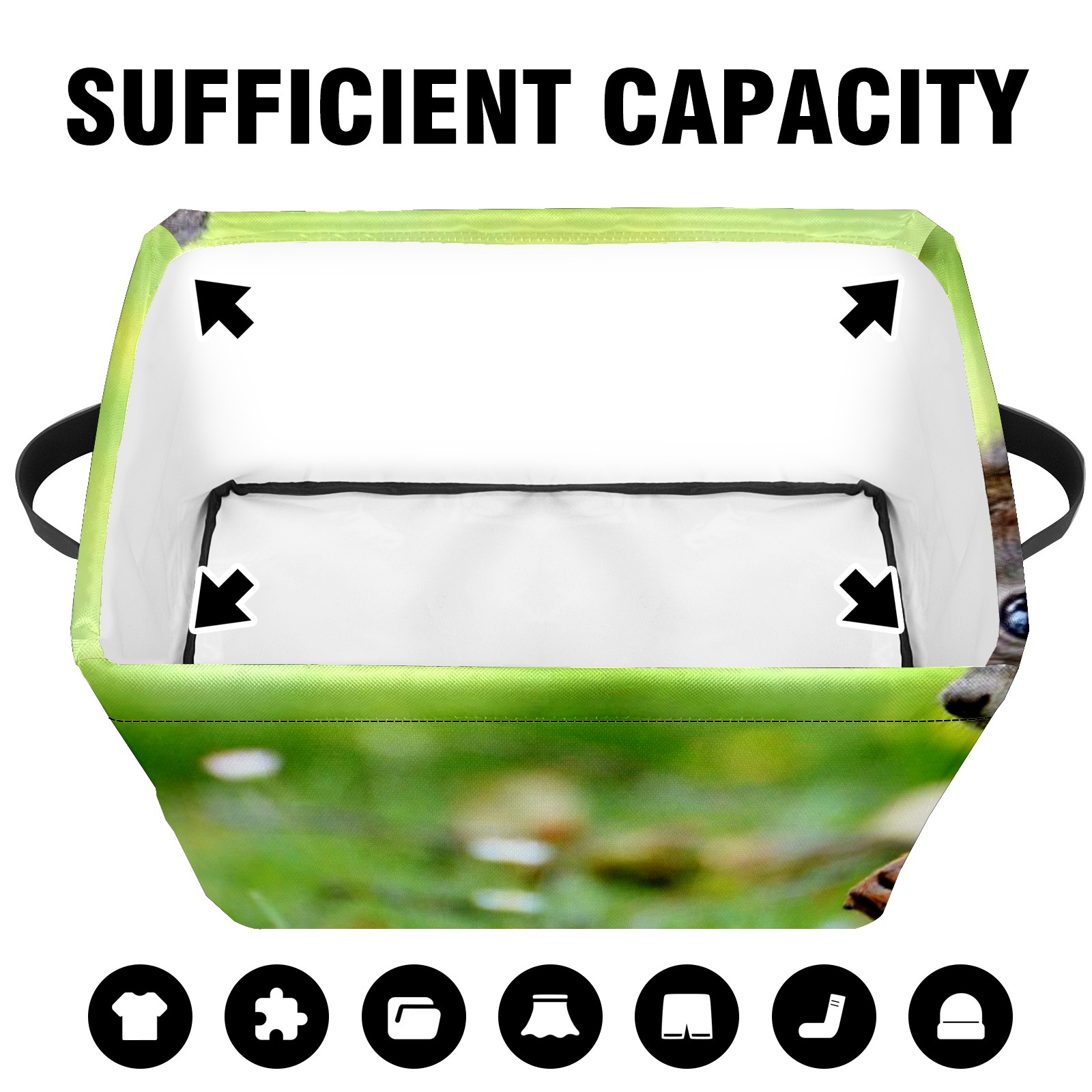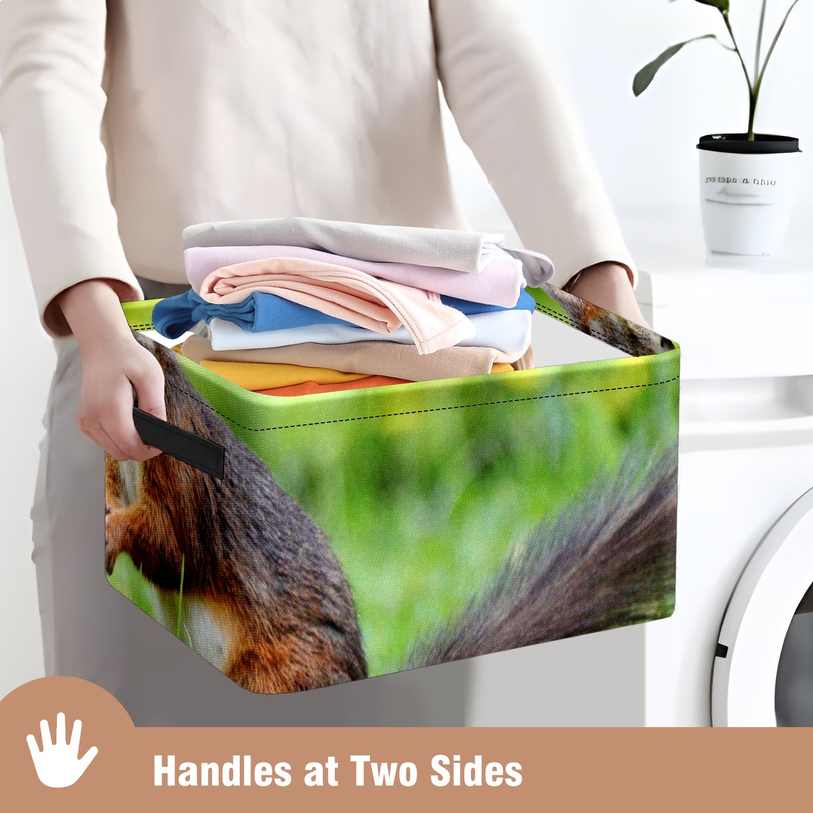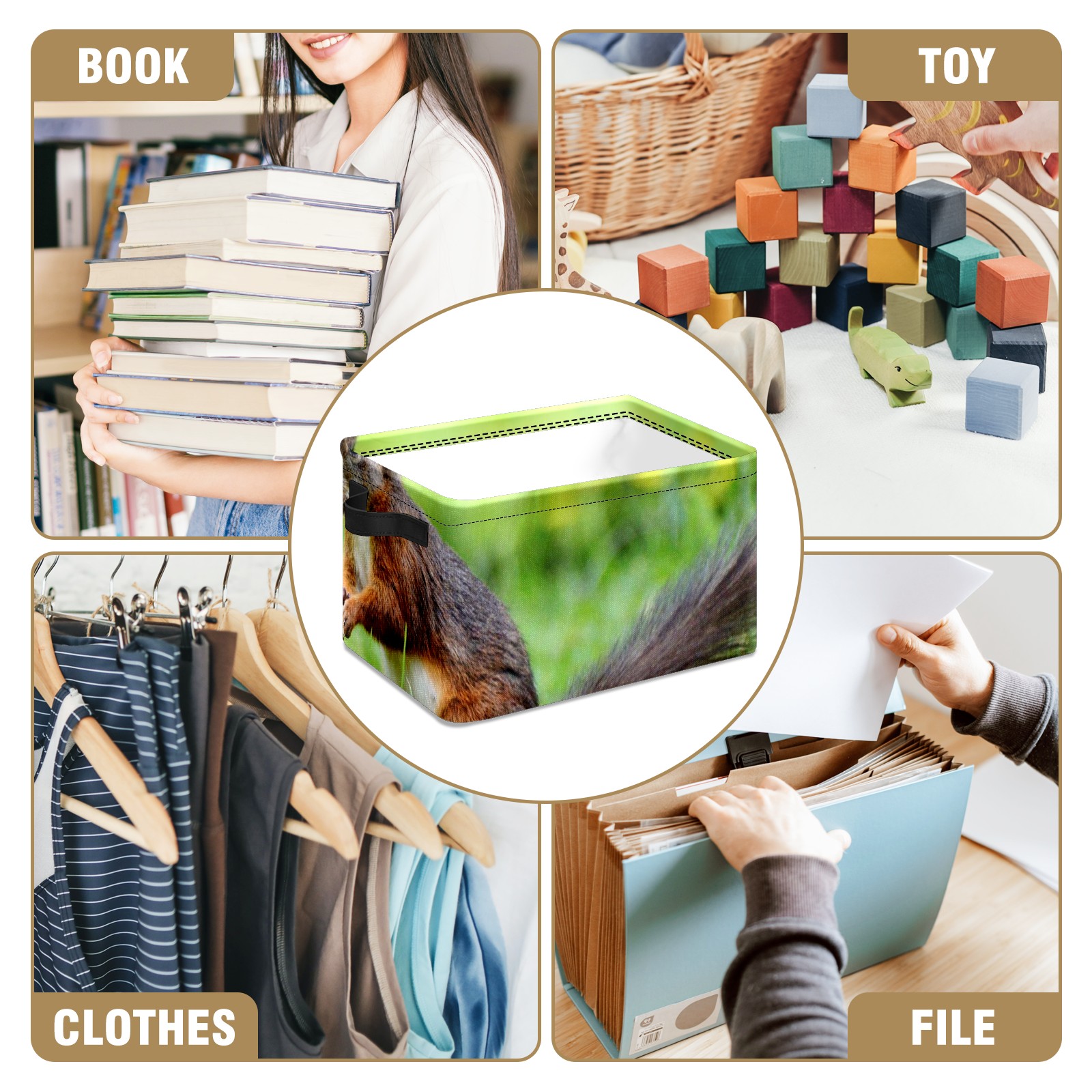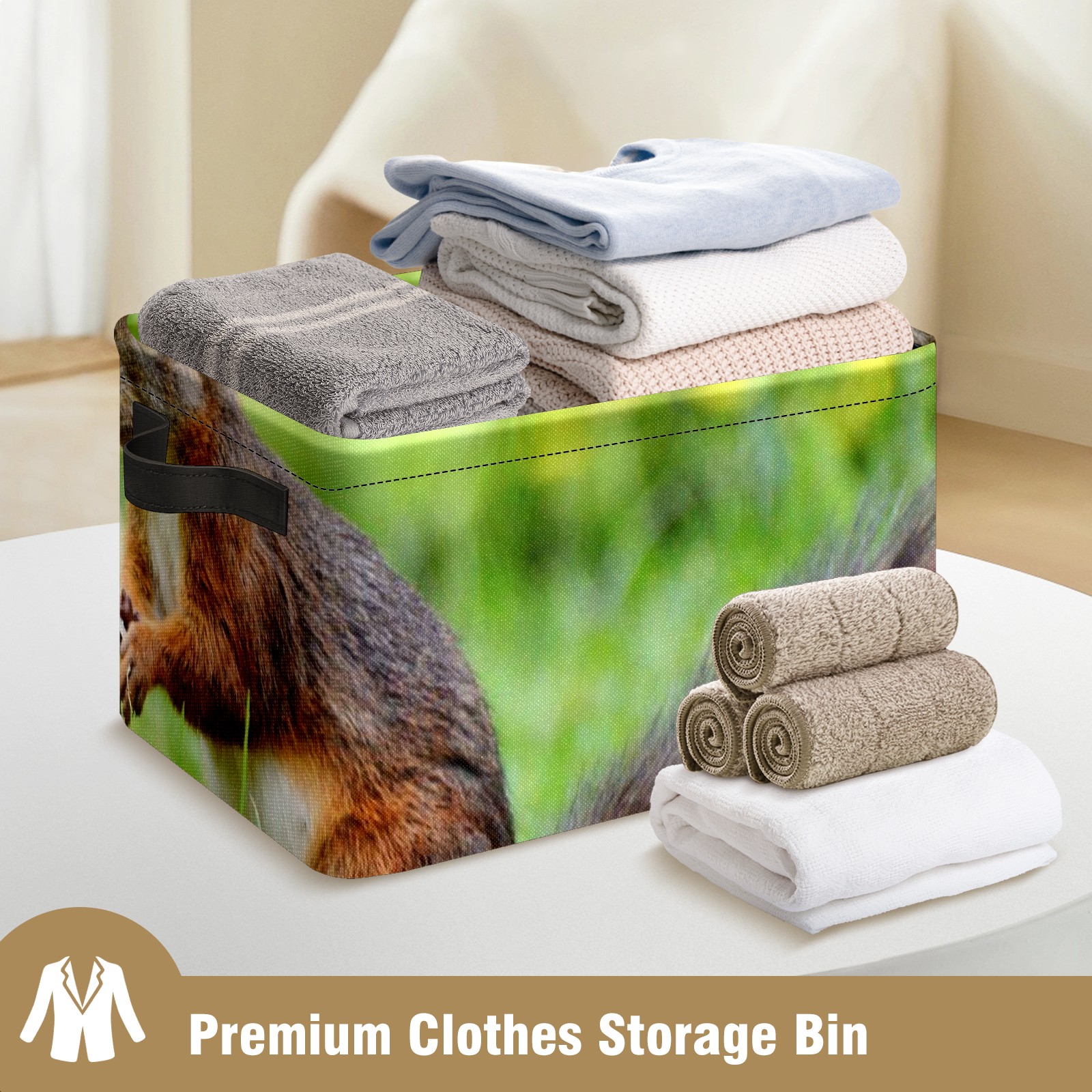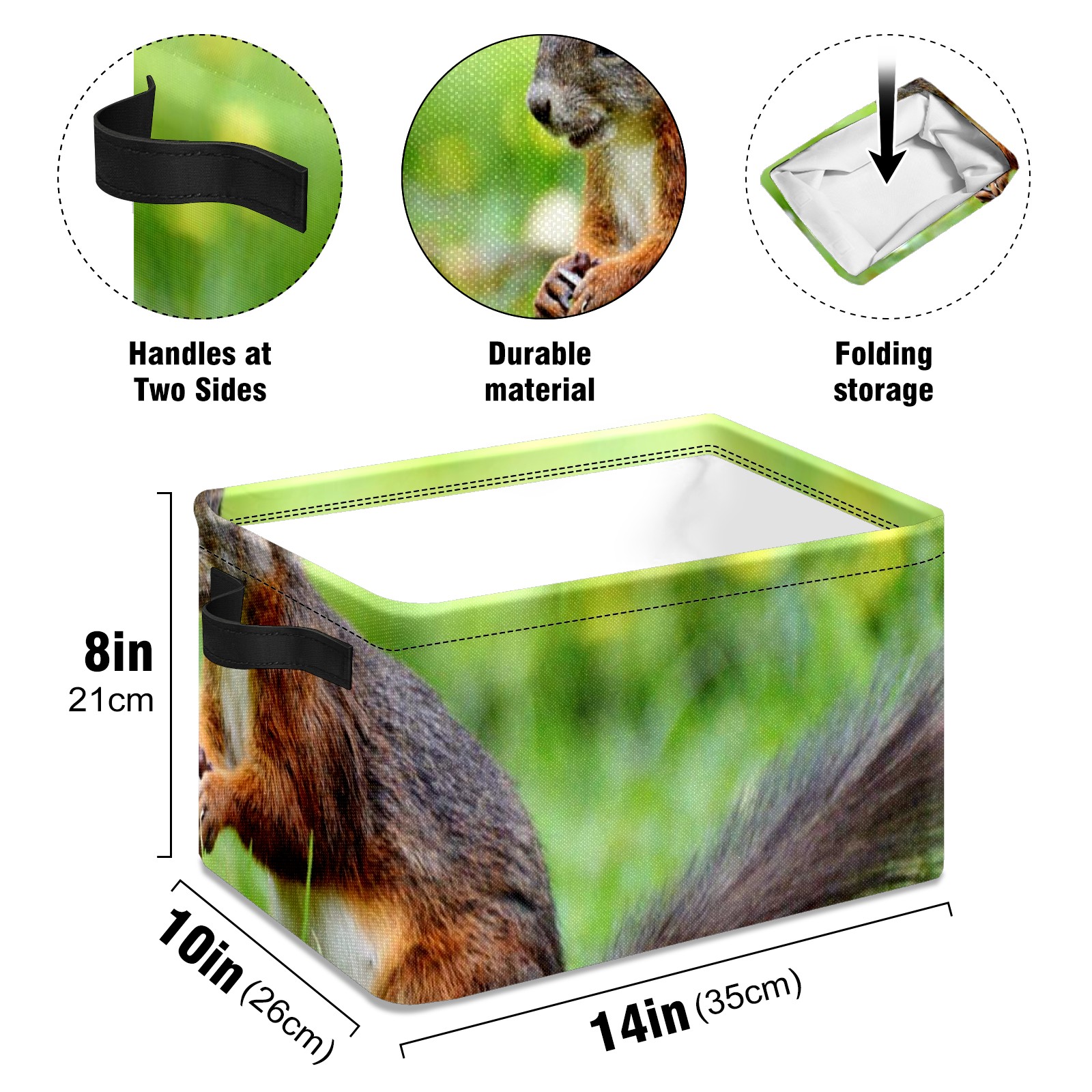 Collapsible 600D Oxford Storage Basket with Cute Squirrel - Metal Frame 10"x14"x8" Reinforced Handles, Multi-Purpose Organizer