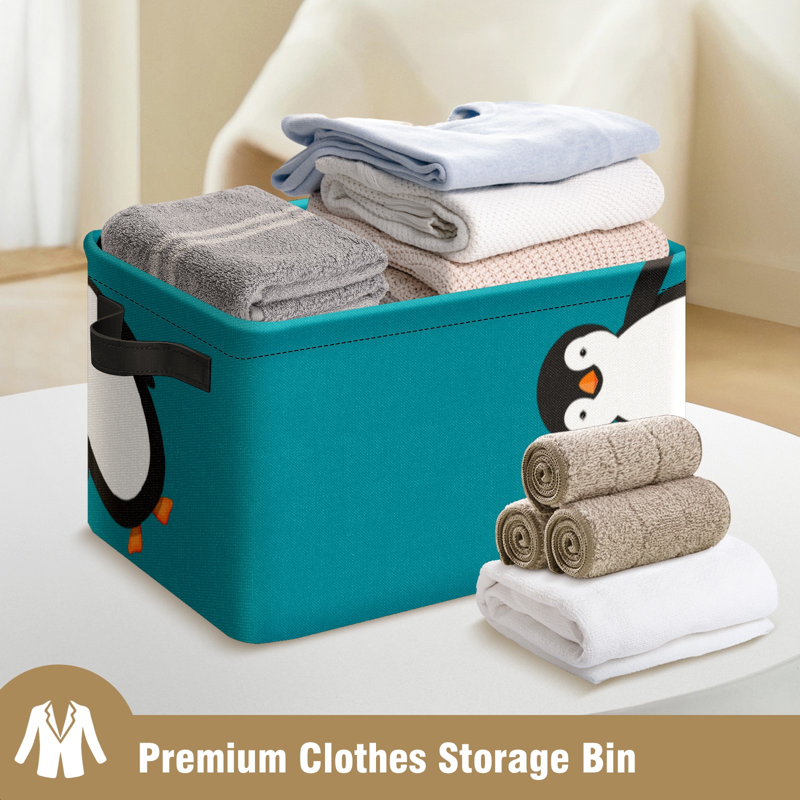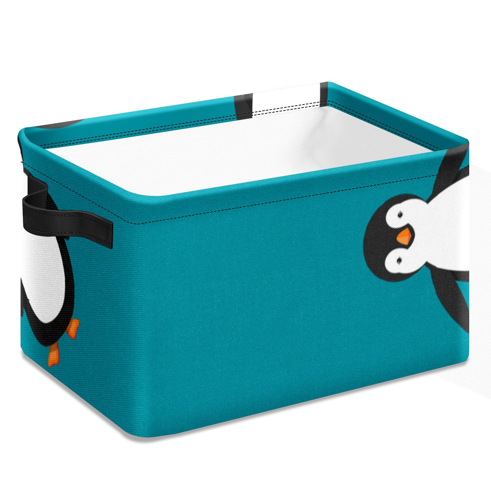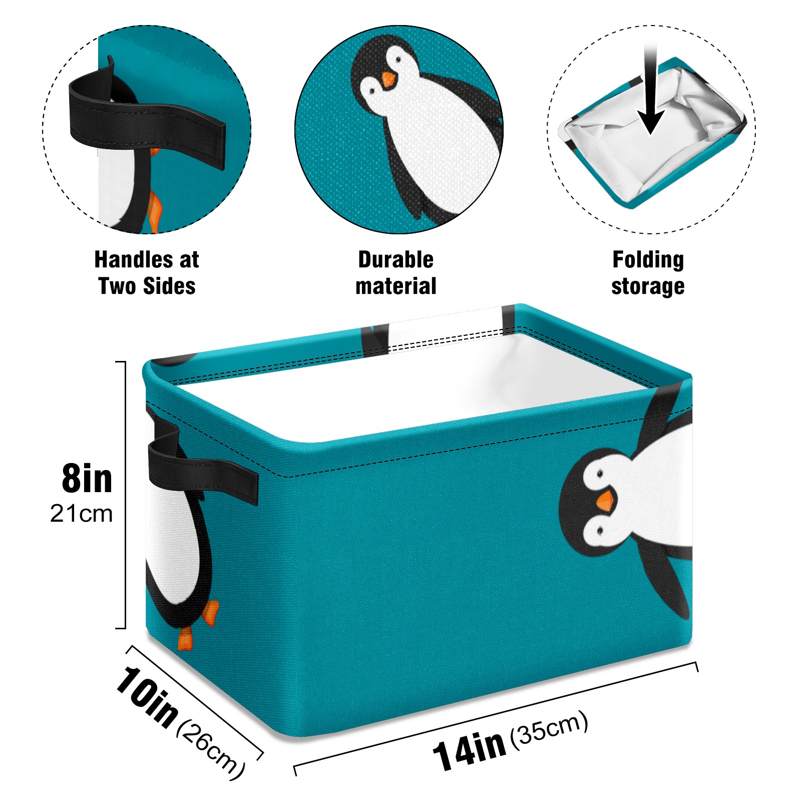Collapsible 600D Oxford Storage Basket with Penguin Blue - Metal Frame 10"x14"x8" Reinforced Handles, Multi-Purpose Organizer