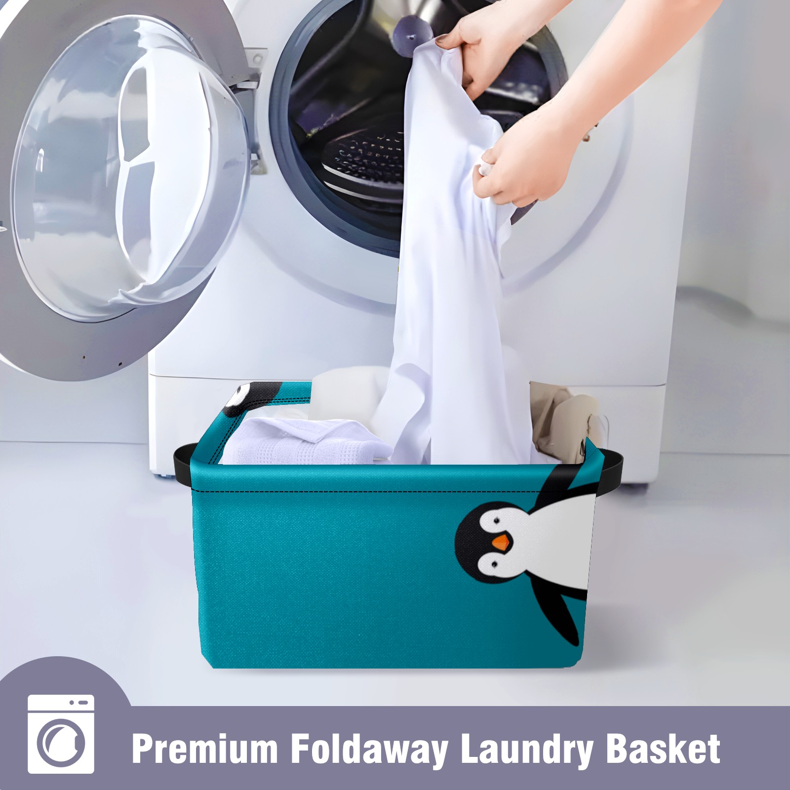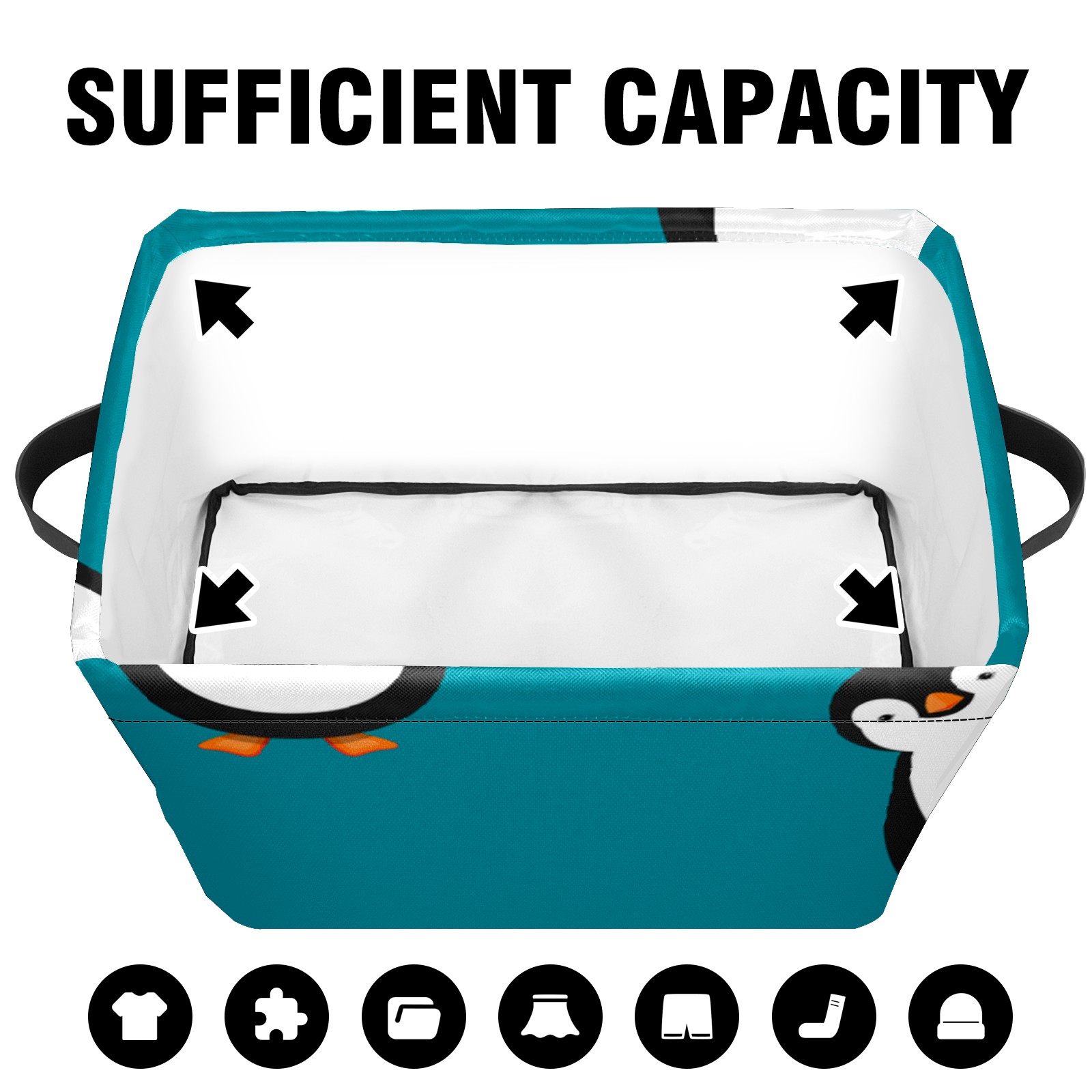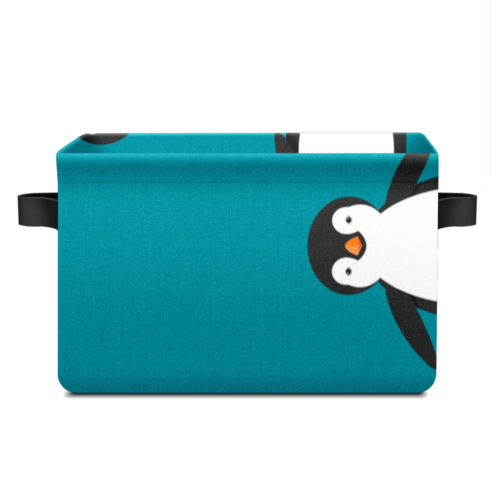 Collapsible 600D Oxford Storage Basket with Penguin Blue - Metal Frame 10"x14"x8" Reinforced Handles, Multi-Purpose Organizer