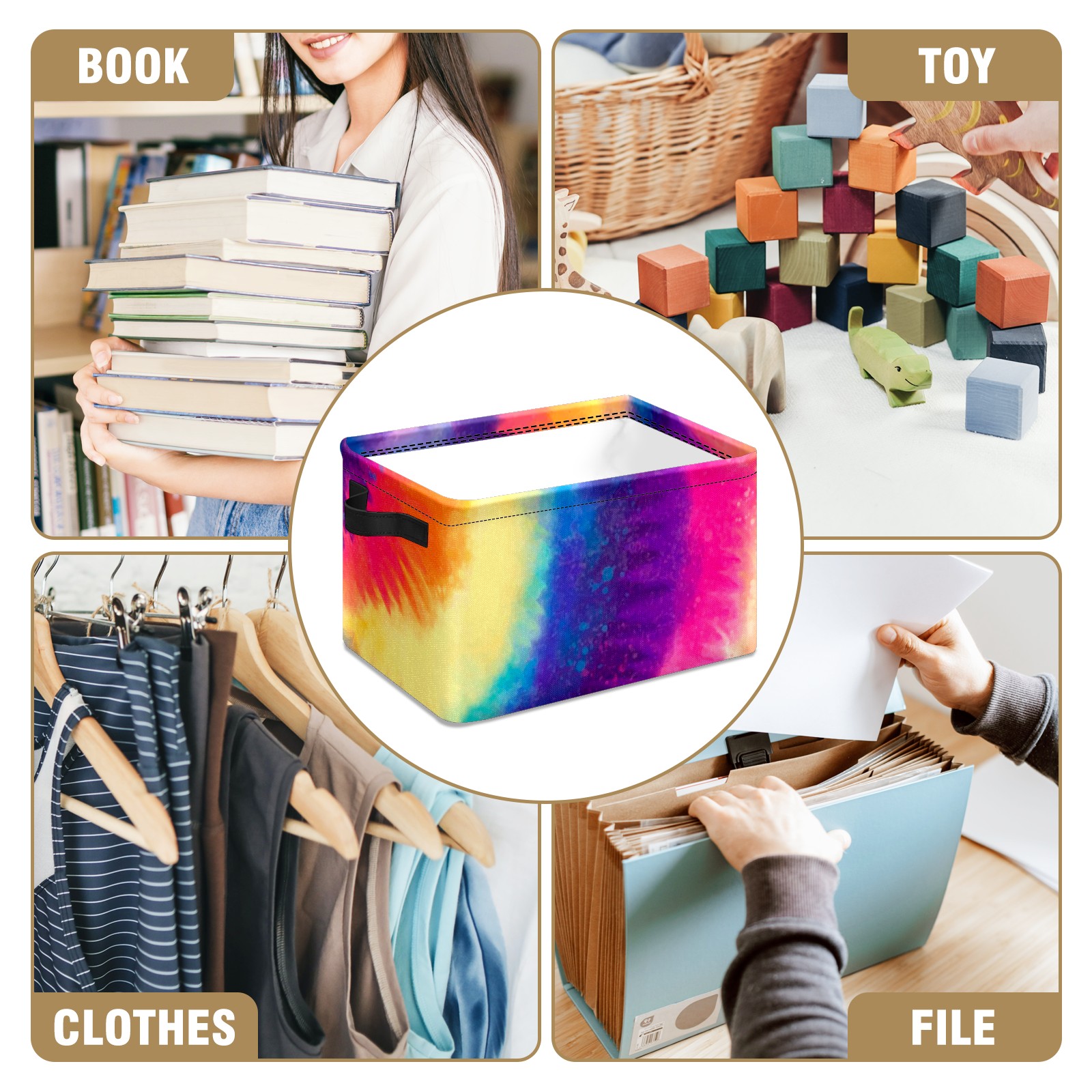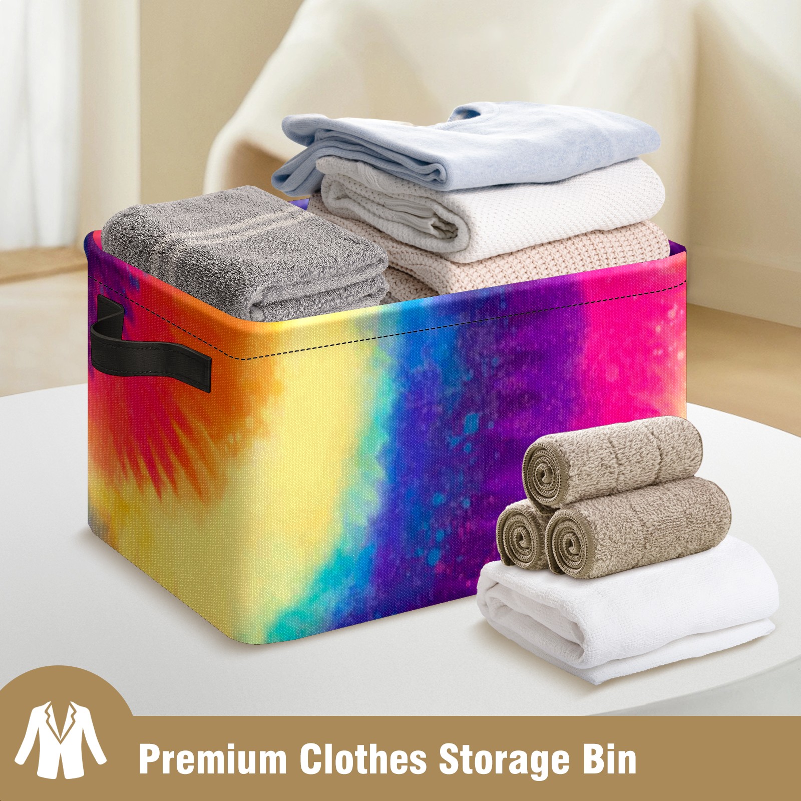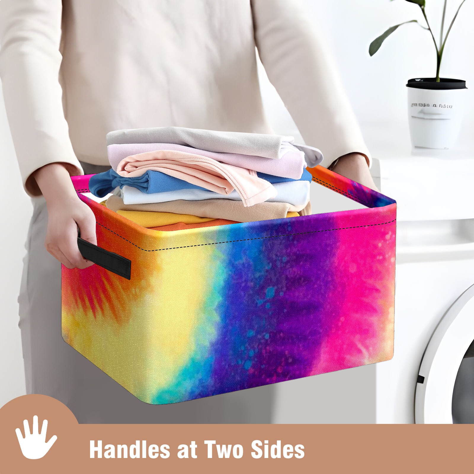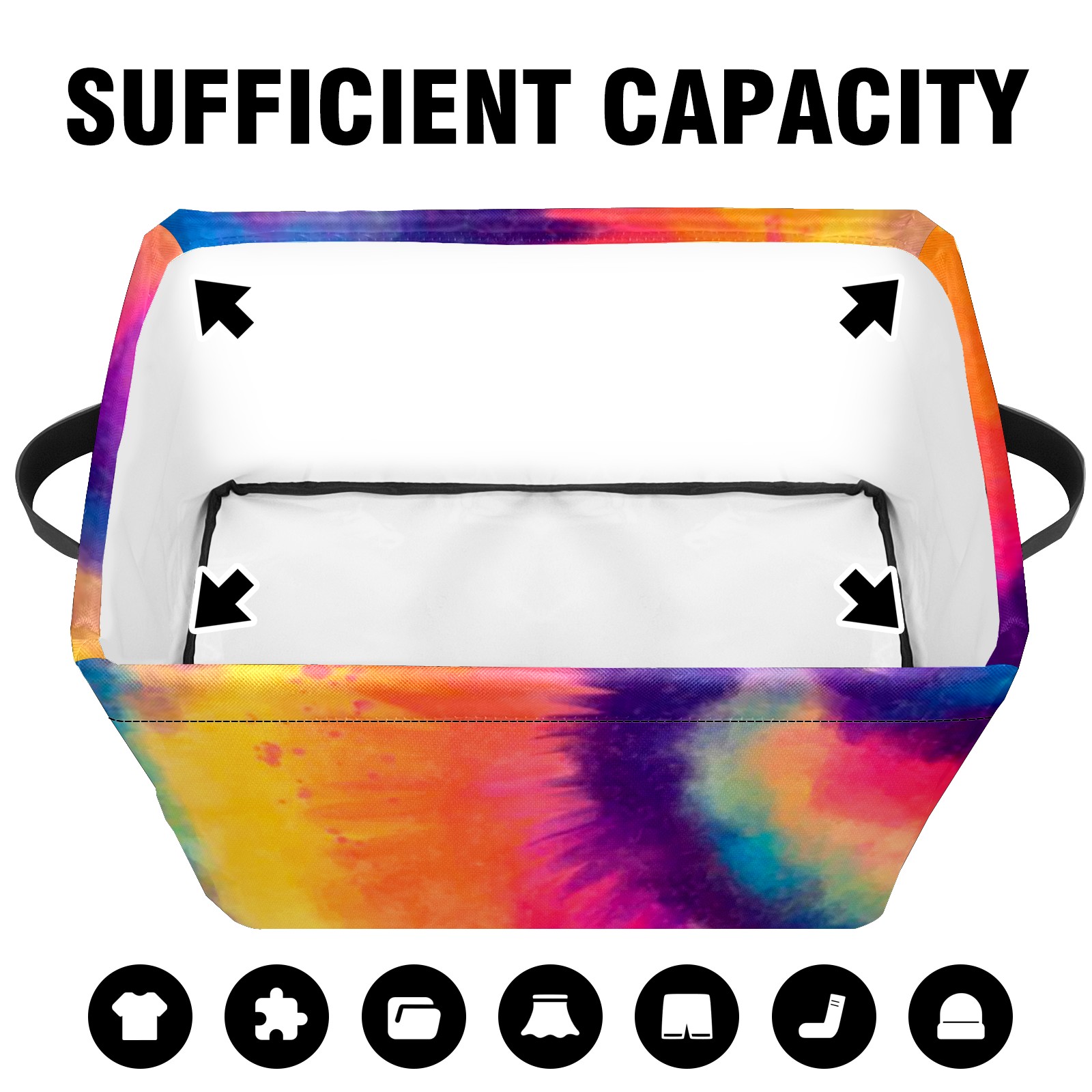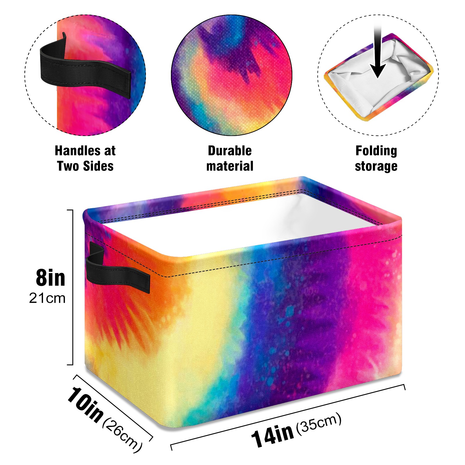 Collapsible 600D Oxford Storage Basket with Rainbow Tie Dye Style - Metal Frame 10"x14"x8" Reinforced Handles, Multi-Purpose Organizer