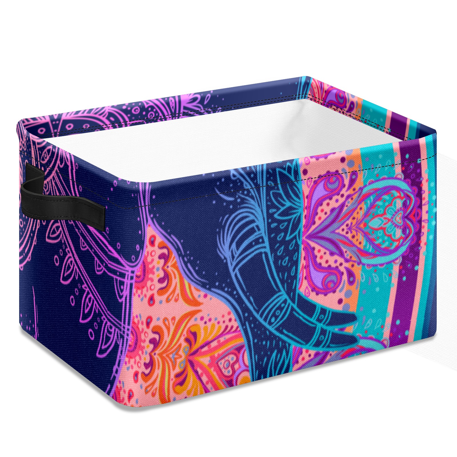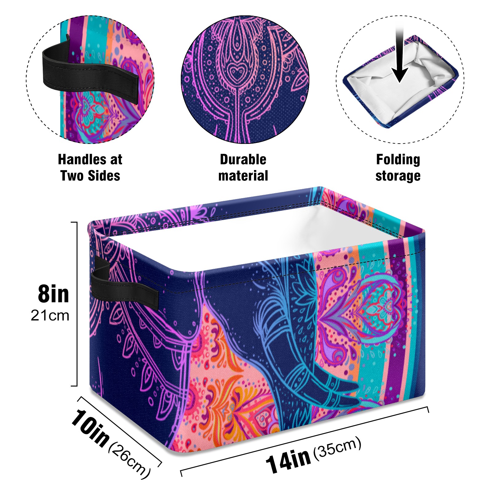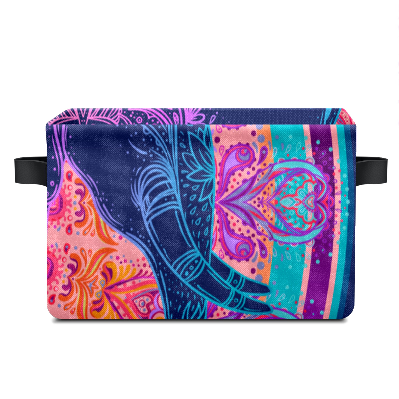 Collapsible 600D Oxford Storage Basket with Elephant Pattern - Metal Frame 10"x14"x8" Reinforced Handles, Multi-Purpose Organizer
