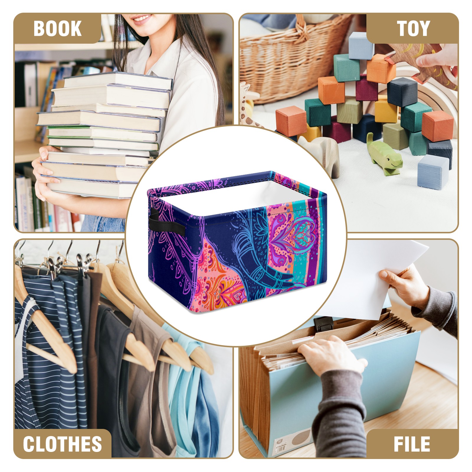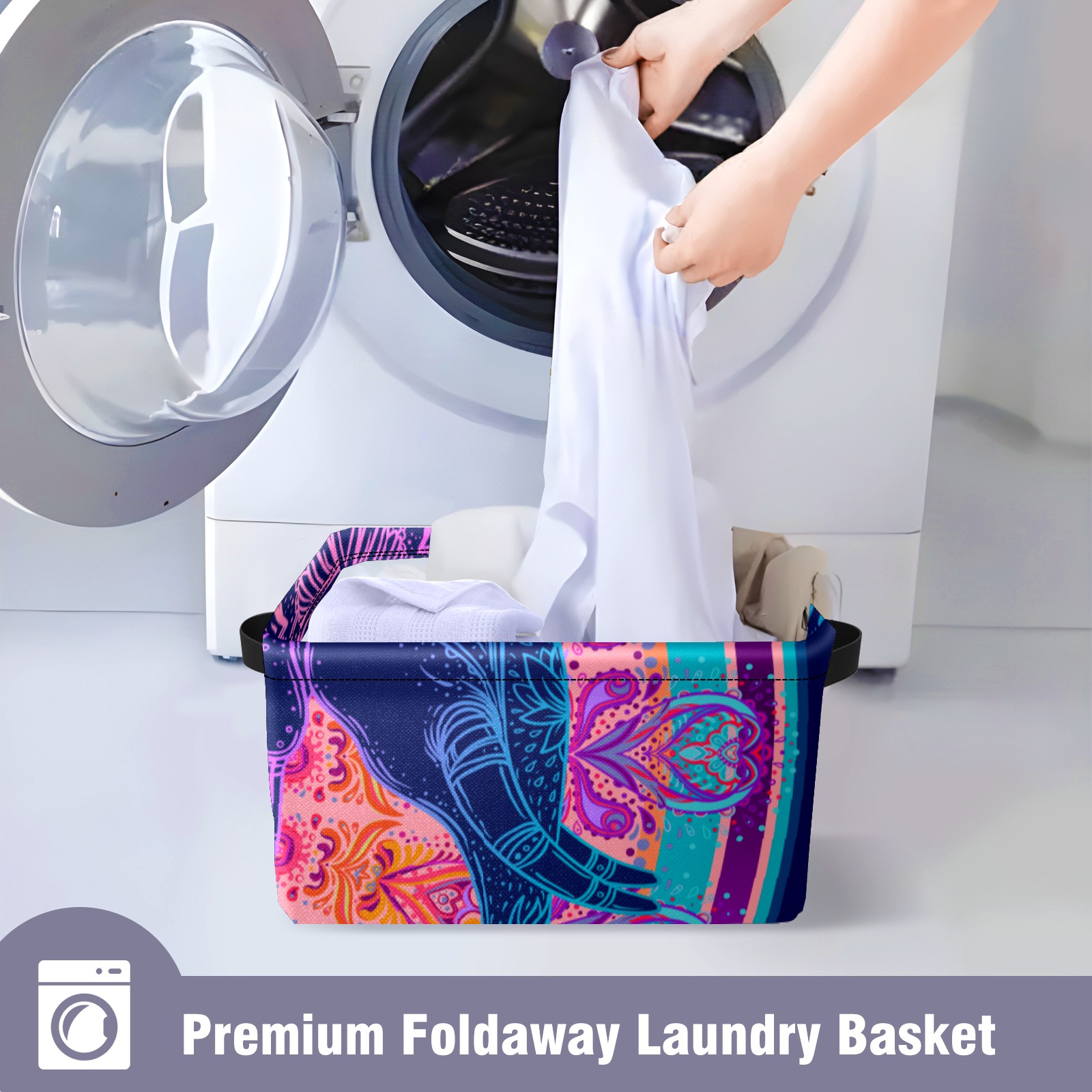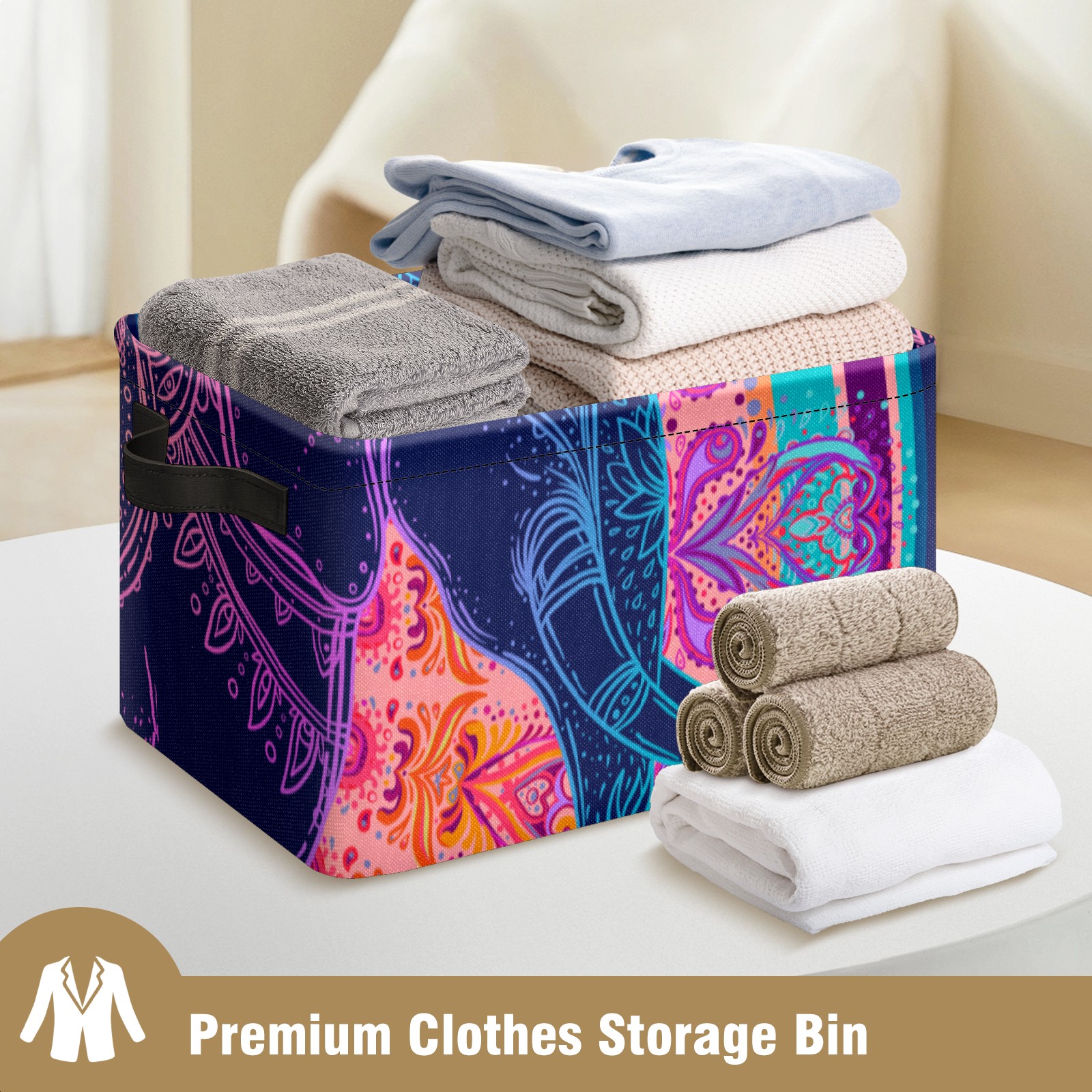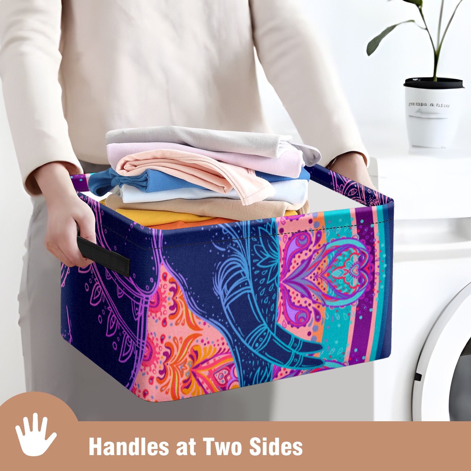 Collapsible 600D Oxford Storage Basket with Elephant Pattern - Metal Frame 10"x14"x8" Reinforced Handles, Multi-Purpose Organizer