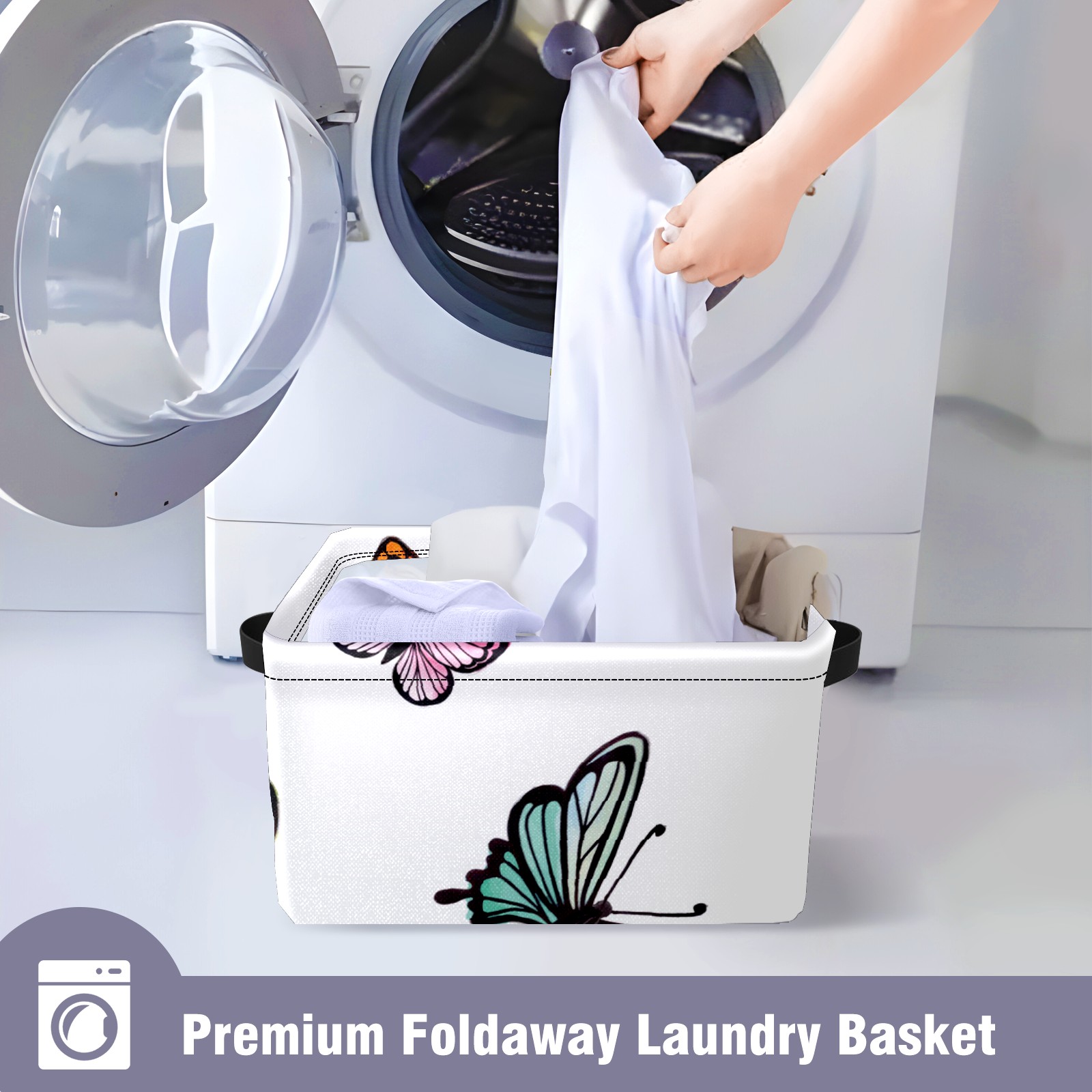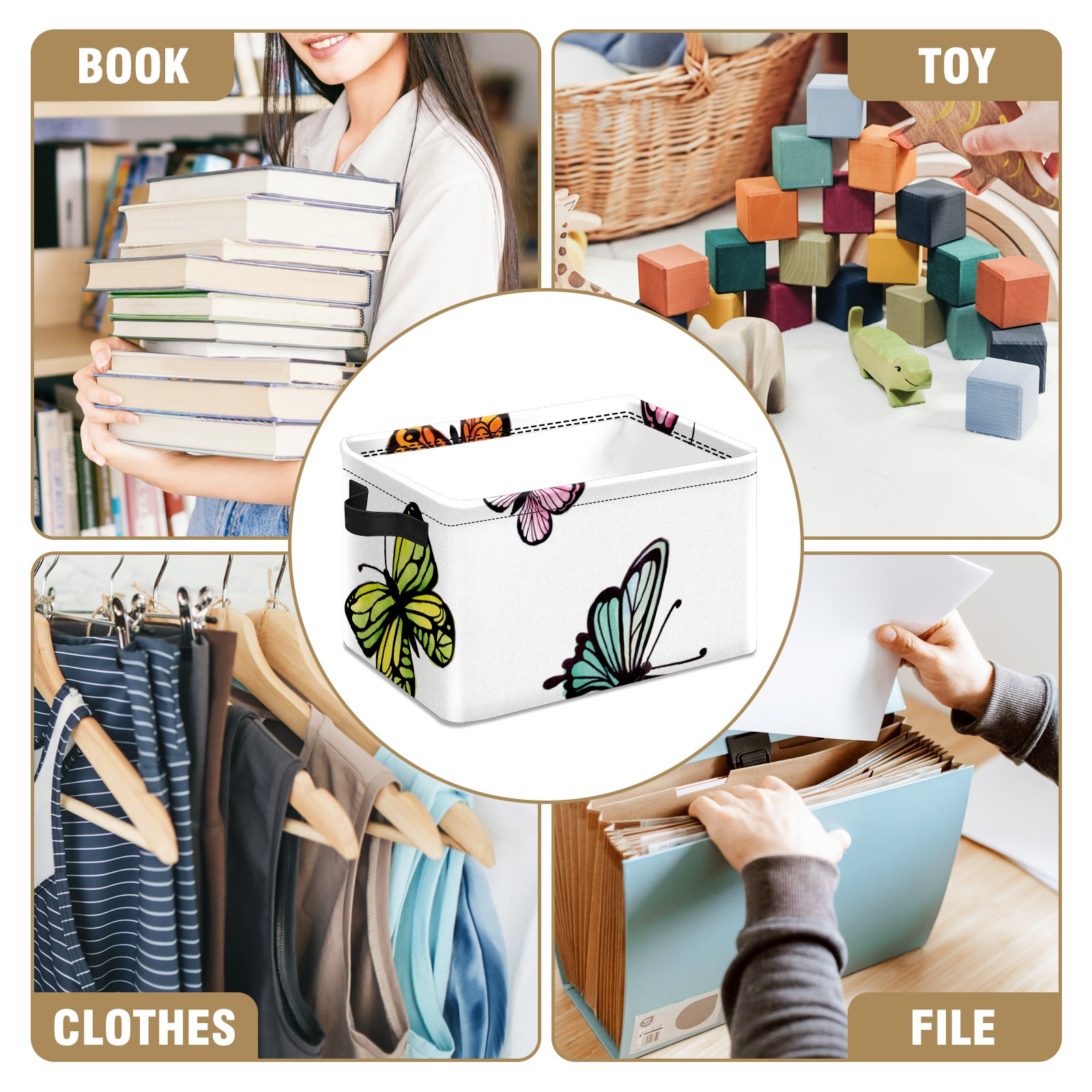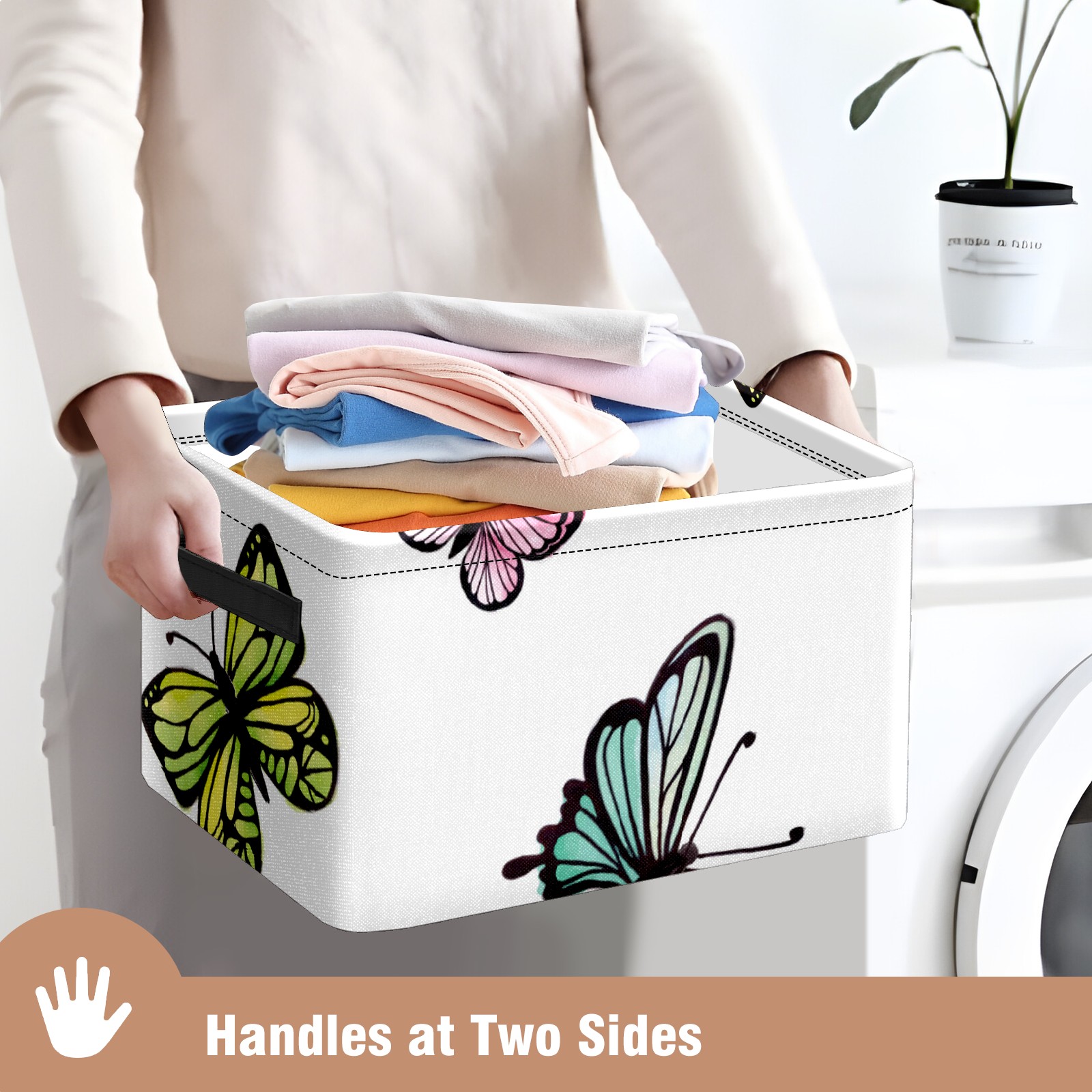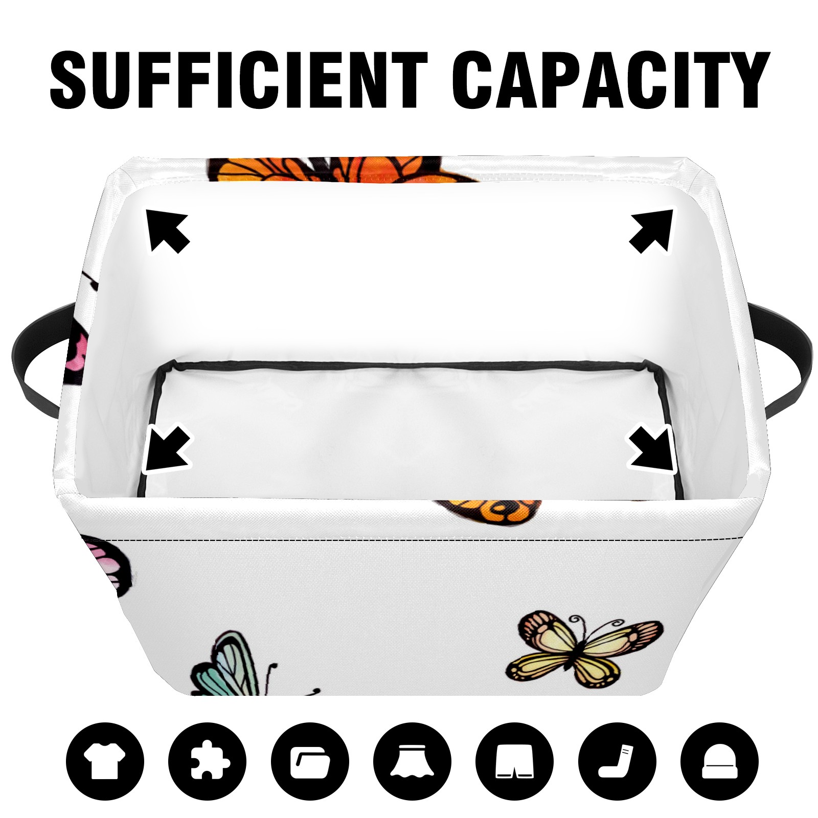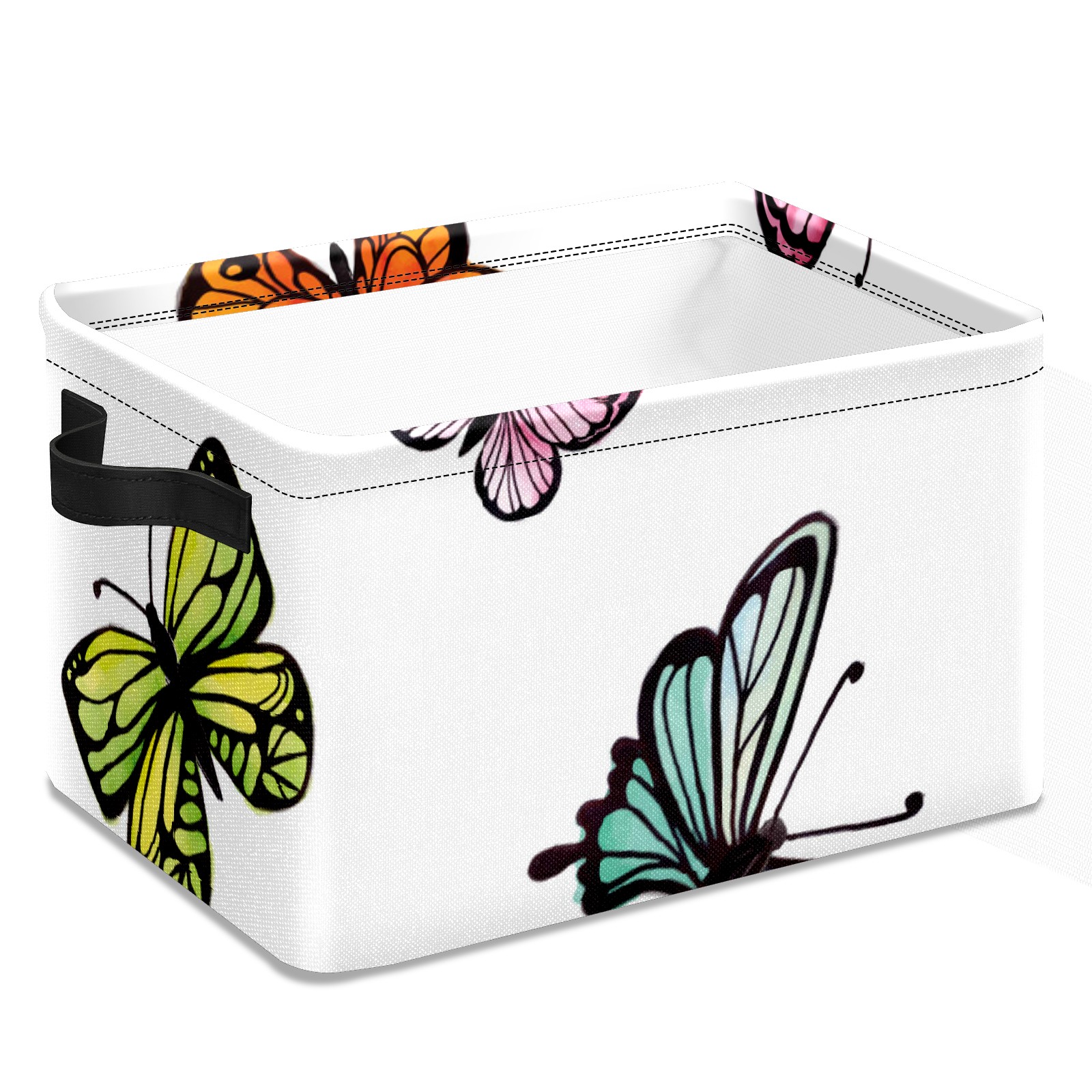 Collapsible 600D Oxford Storage Basket with Colorful Butterflies Print - Metal Frame 10"x14"x8" Reinforced Handles, Multi-Purpose Organizer