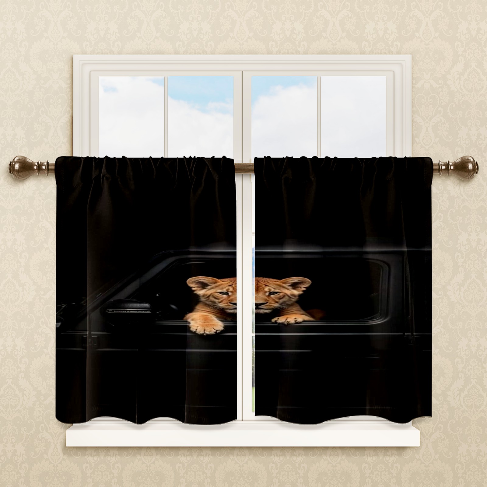 Шторы-панно для дома, декоративные драпировки для гостиной и спальни, легкие и прочные, Cub Peeking