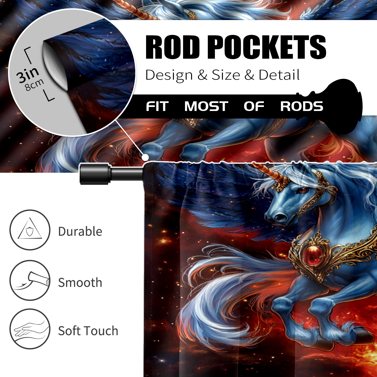 Шторы-панно для дома, декоративные драпировки для гостиной и спальни, легкие и прочные, Majestic Unicorn Blue