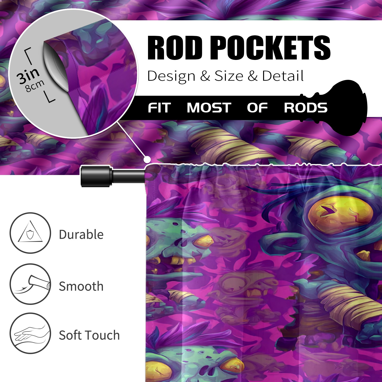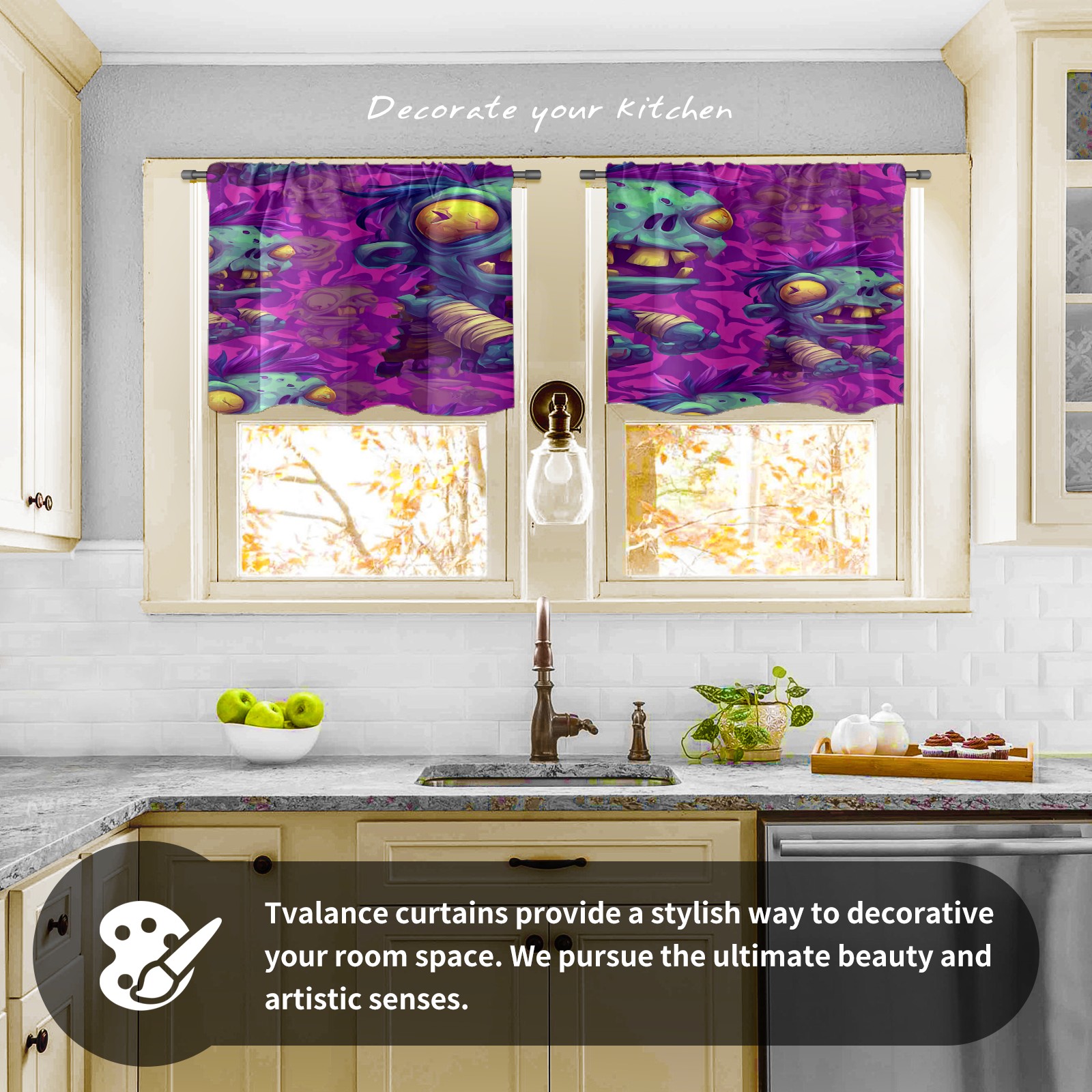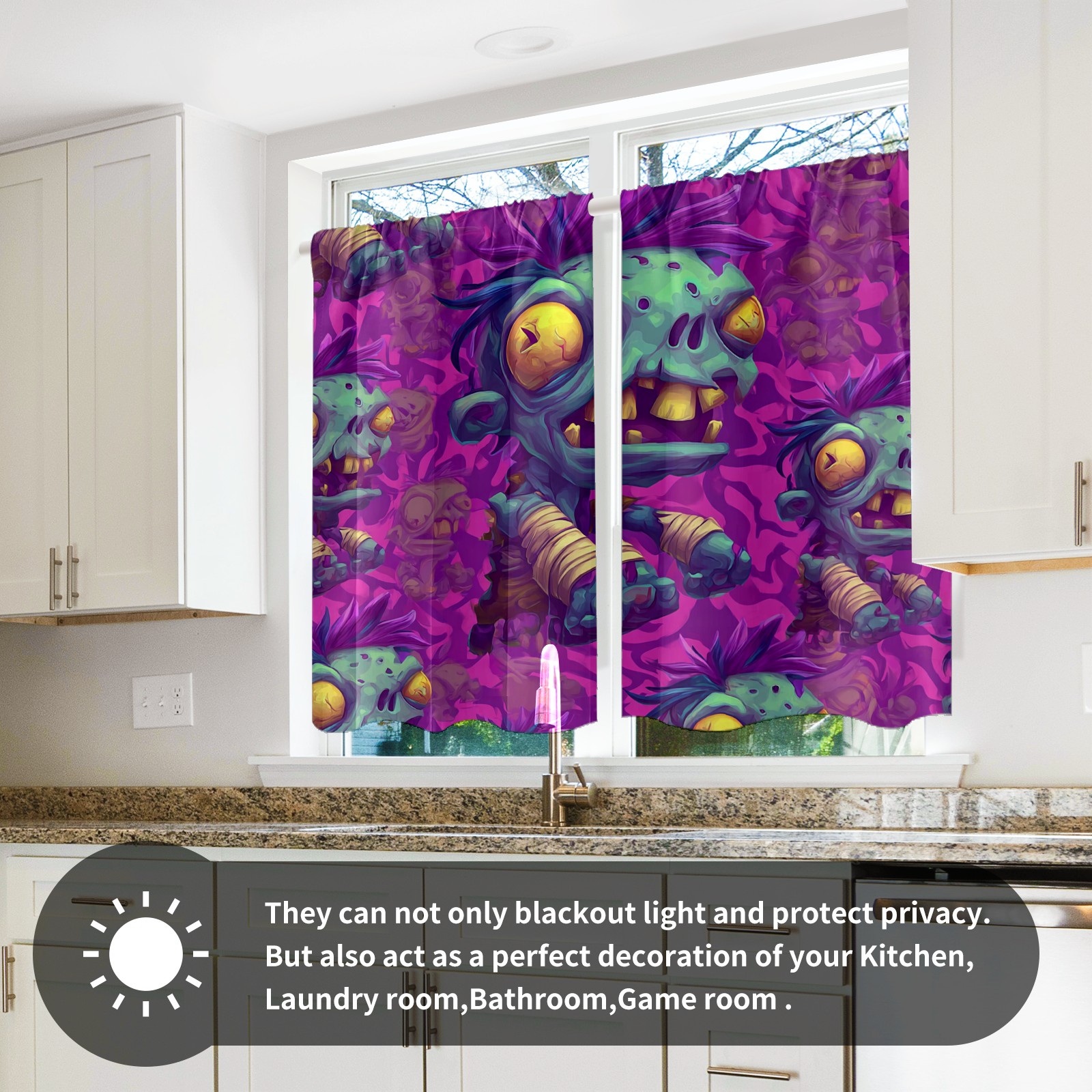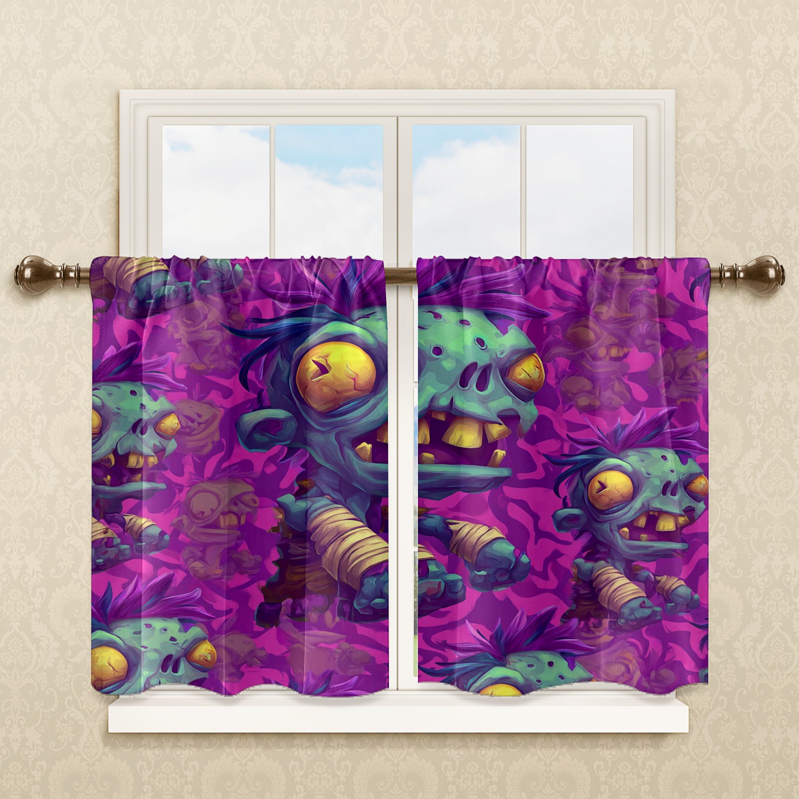 Шторы-панно для дома, декоративные драпировки для гостиной и спальни, легкие и прочные, Funny Zombie Purple