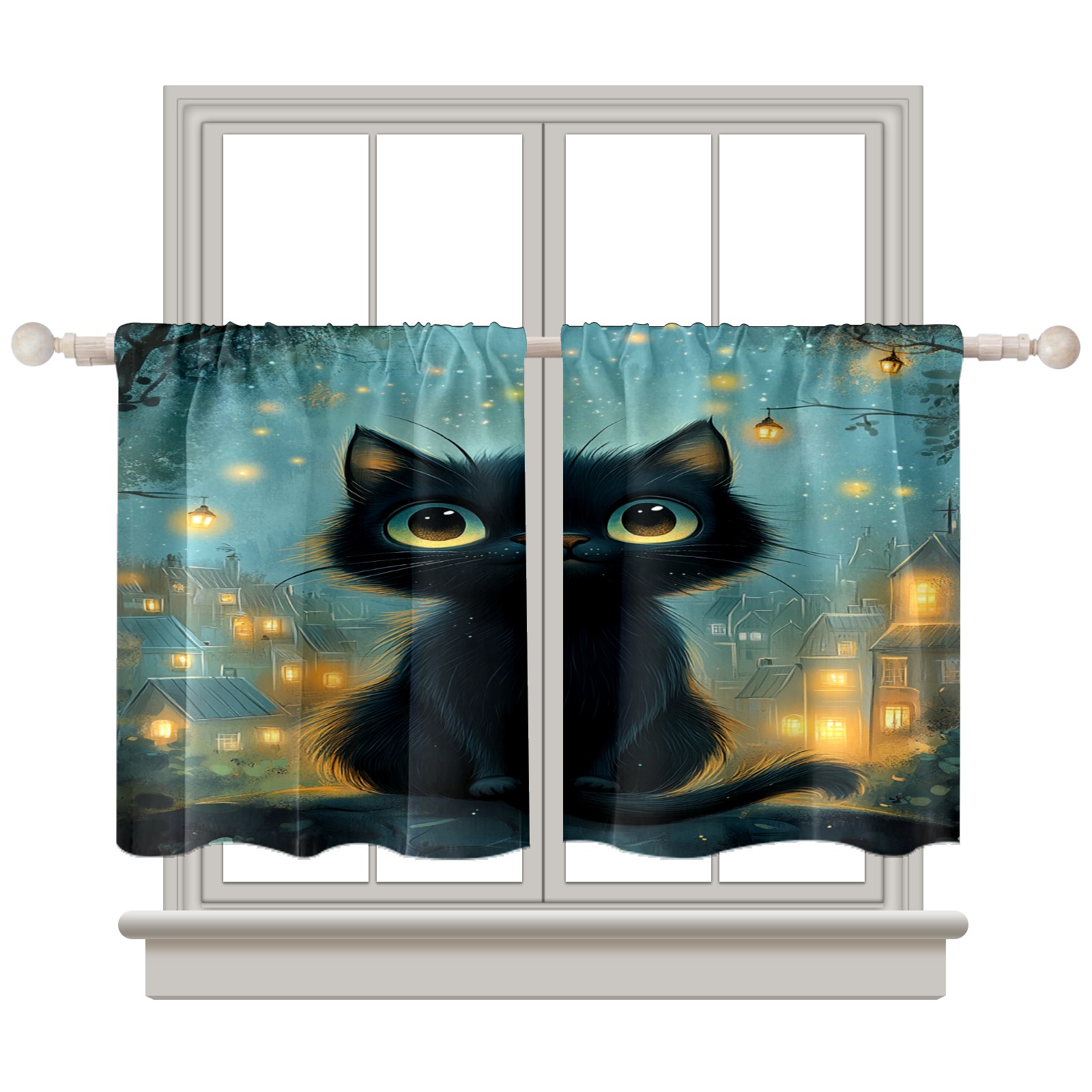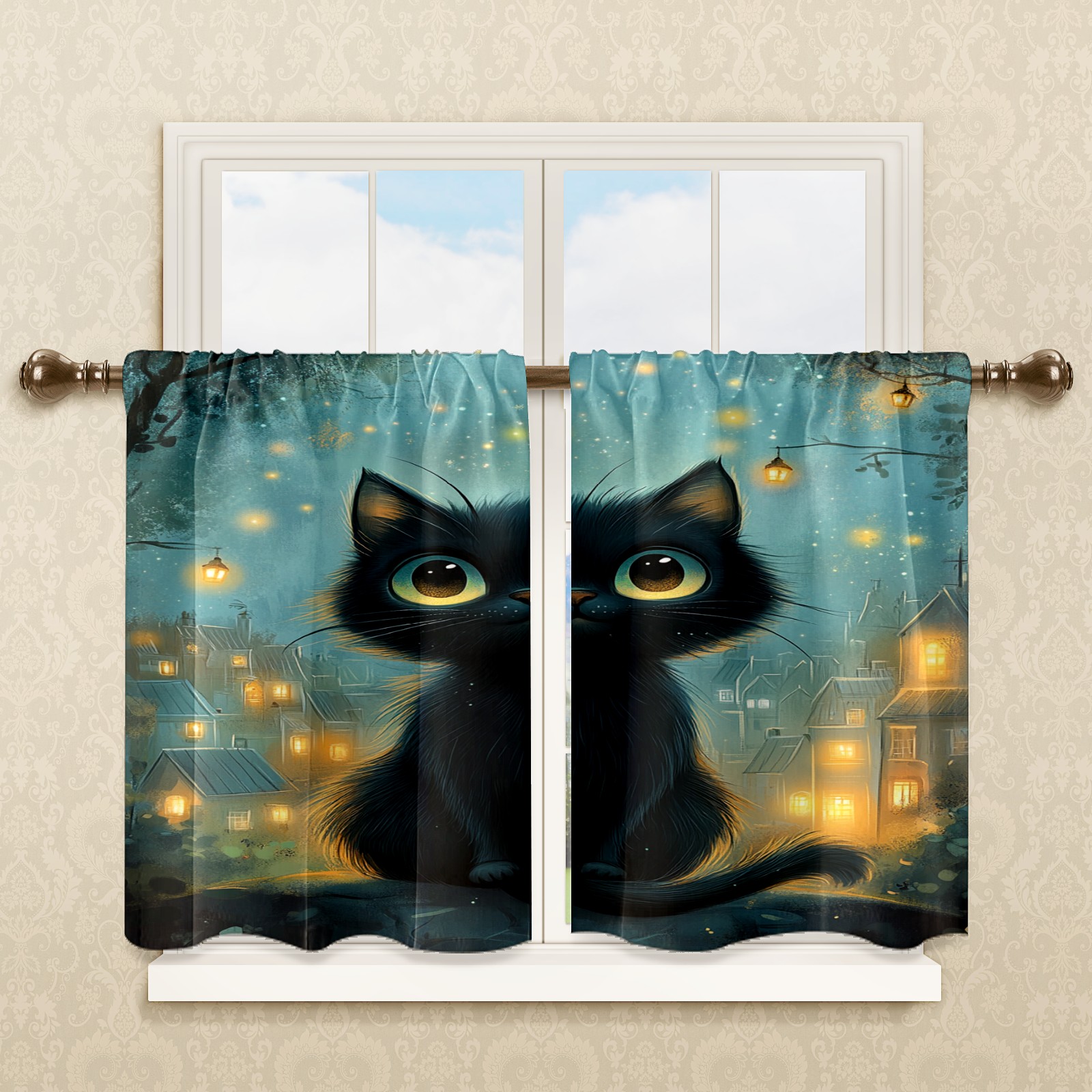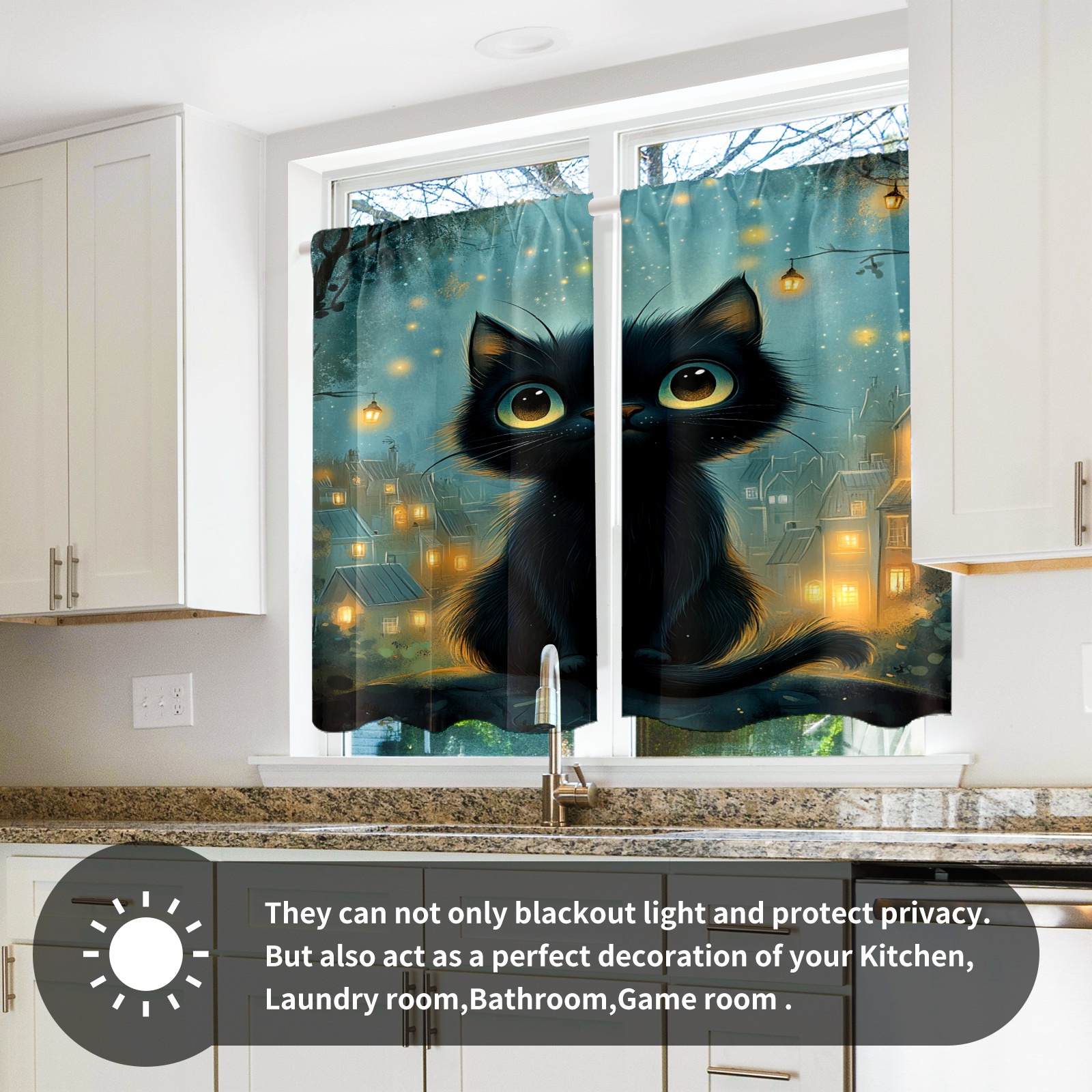 Шторы-панно для дома, декоративные драпировки для гостиной и спальни, легкие и прочные, Gentle Black Cat Blue