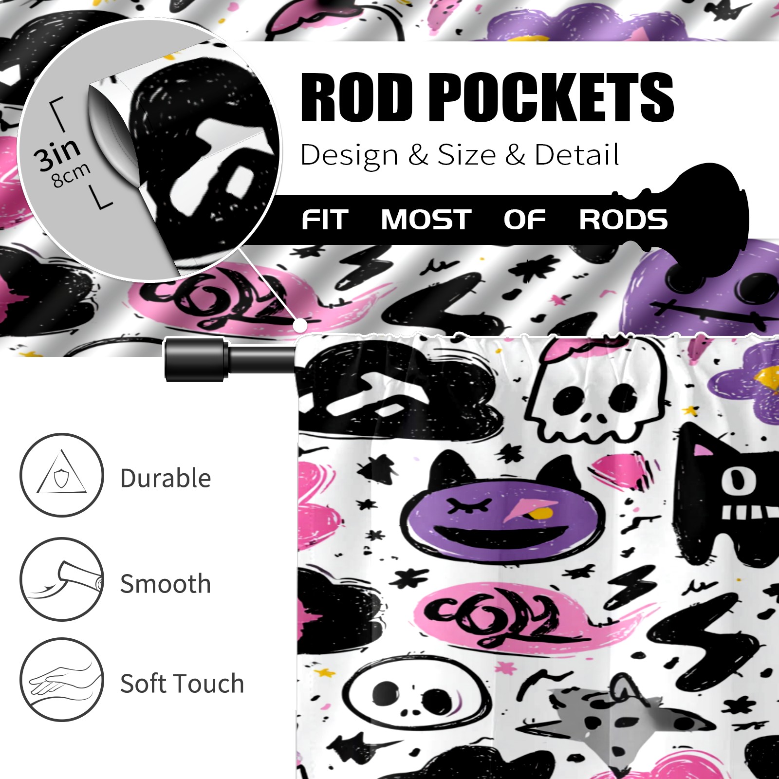 Шторы-панно для дома, декоративные драпировки для гостиной и спальни, легкие и прочные, Trendy Weird Black