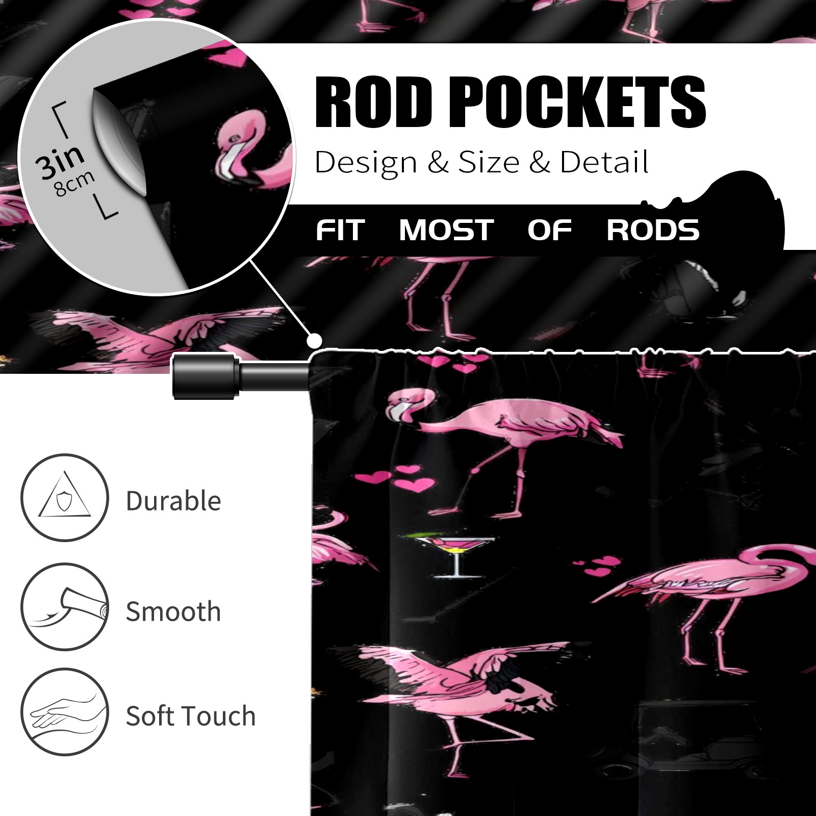 Шторы-панно для дома, декоративные драпировки для гостиной и спальни, легкие и прочные, Mysterious Flamingo Black