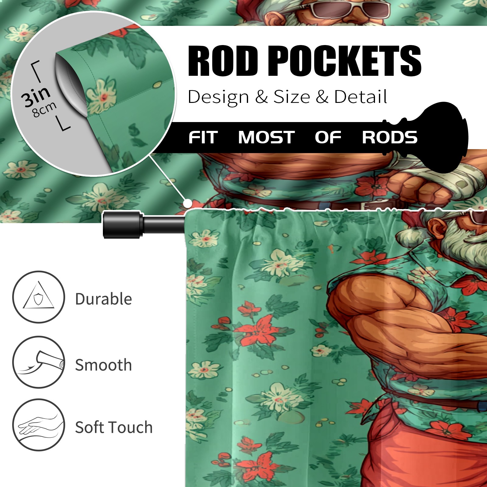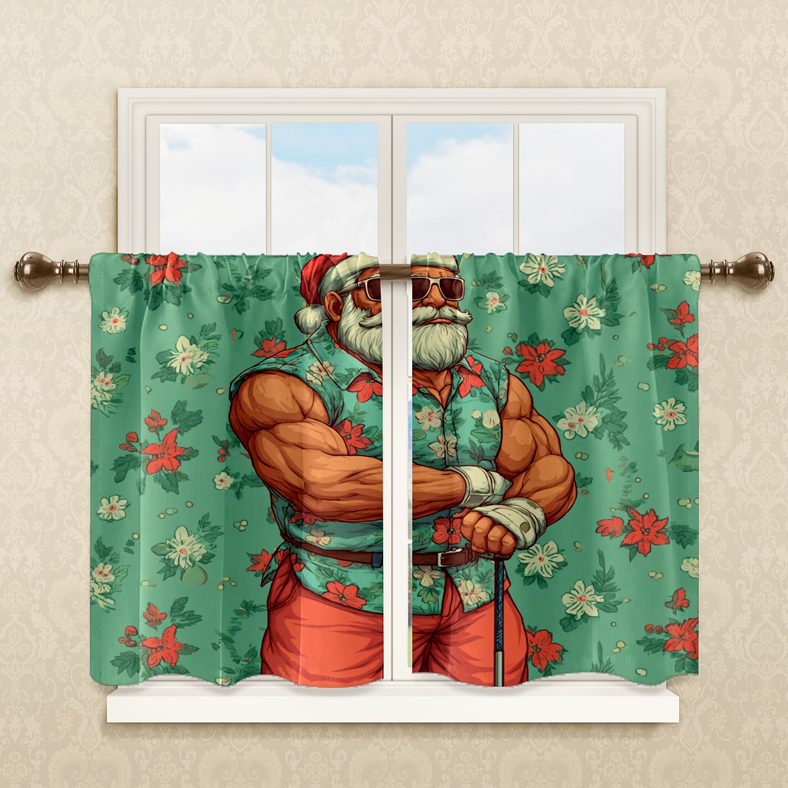 Шторы-панно для дома, декоративные драпировки для гостиной и спальни, легкие и прочные, Fun Santa Green