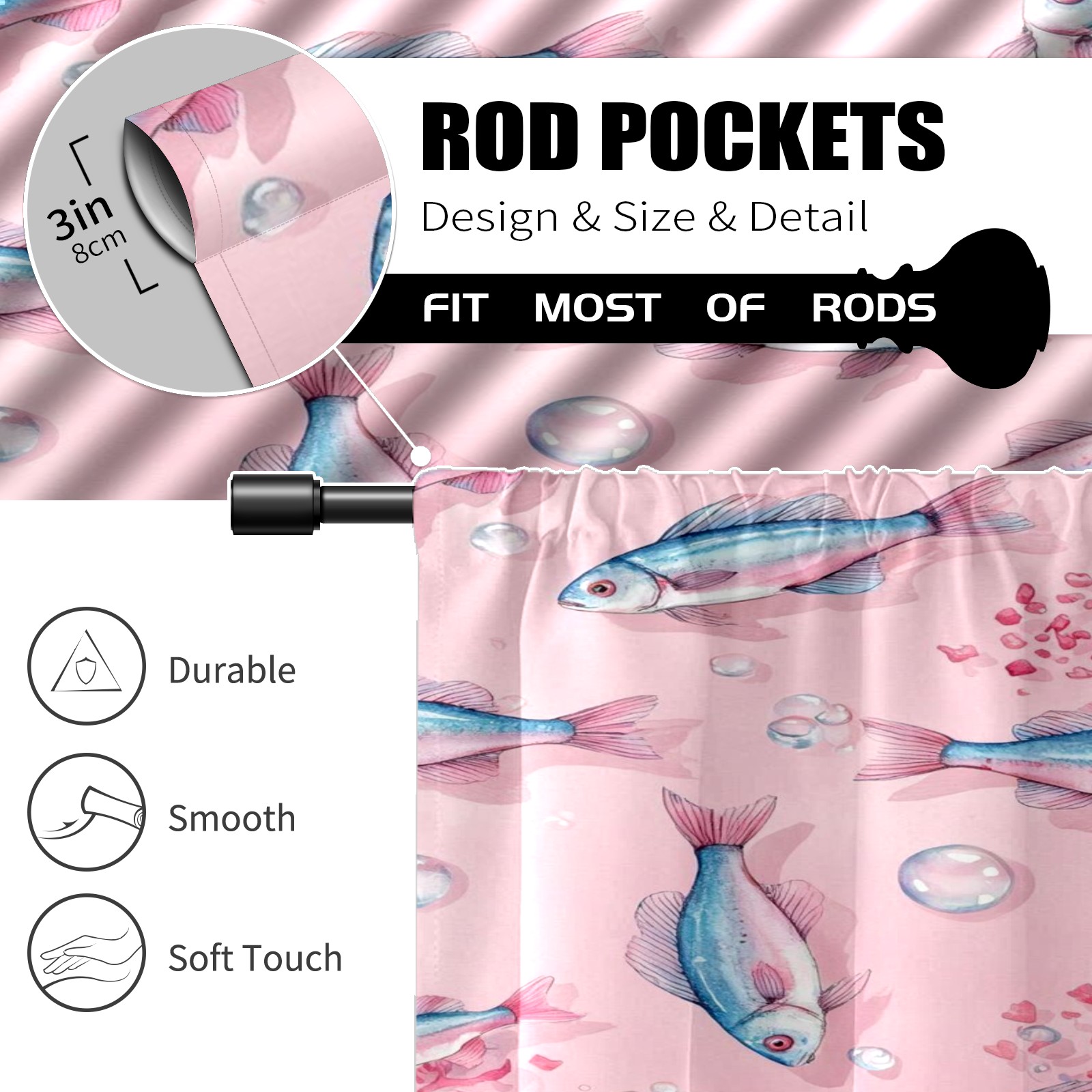 Шторы-панно для дома, декоративные драпировки для гостиной и спальни, легкие и прочные, Gentle Fish Pink