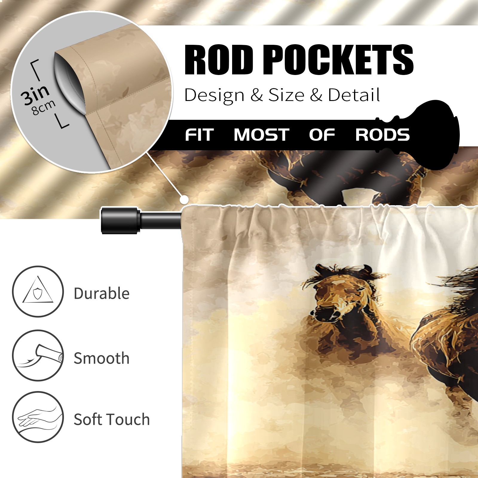 Шторы-панно для дома, декоративные драпировки для гостиной и спальни, легкие и прочные, Chic Horse Beige
