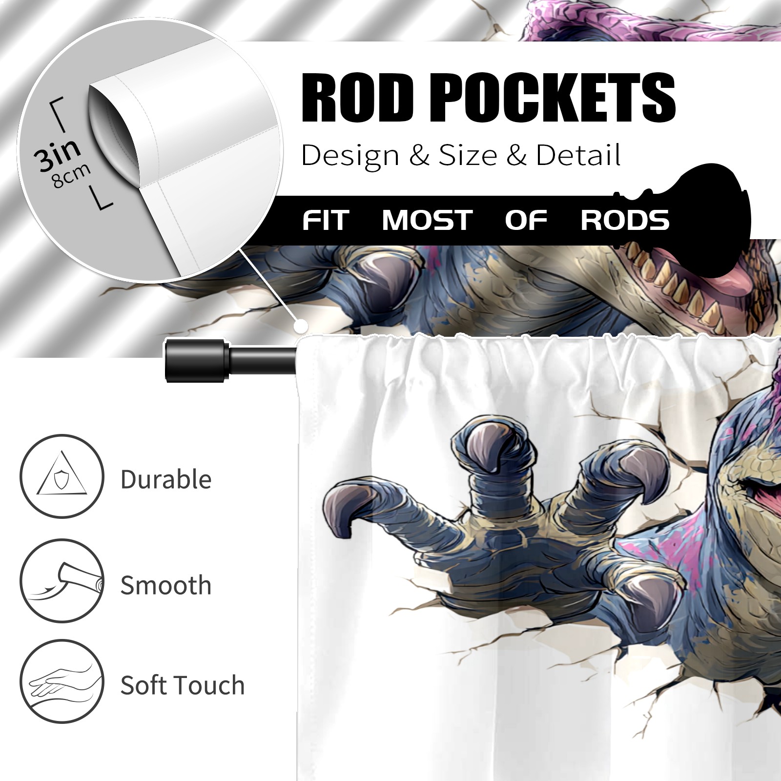 Шторы-панно для дома, декоративные драпировки для гостиной и спальни, легкие и прочные, Cool Dinosaur Purple