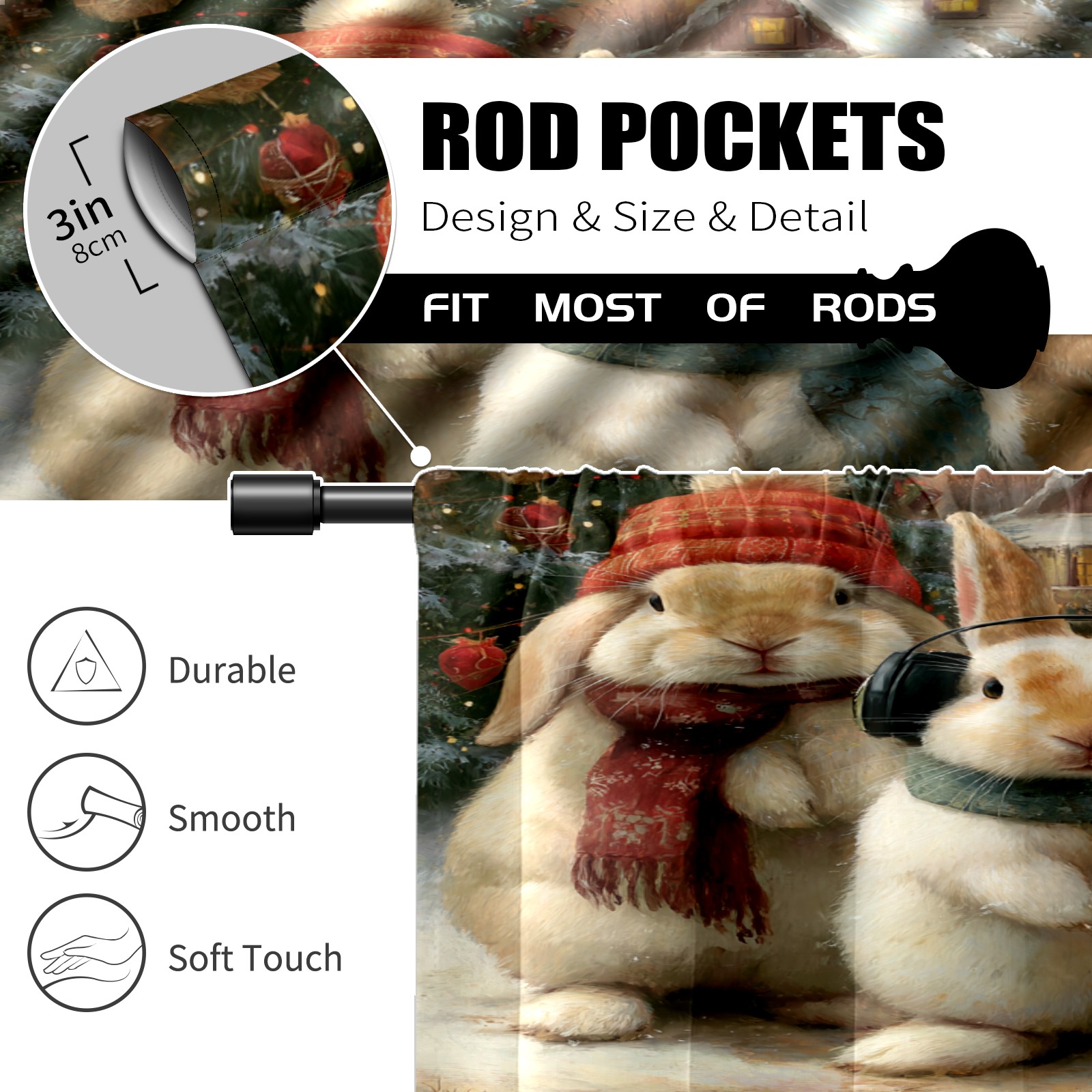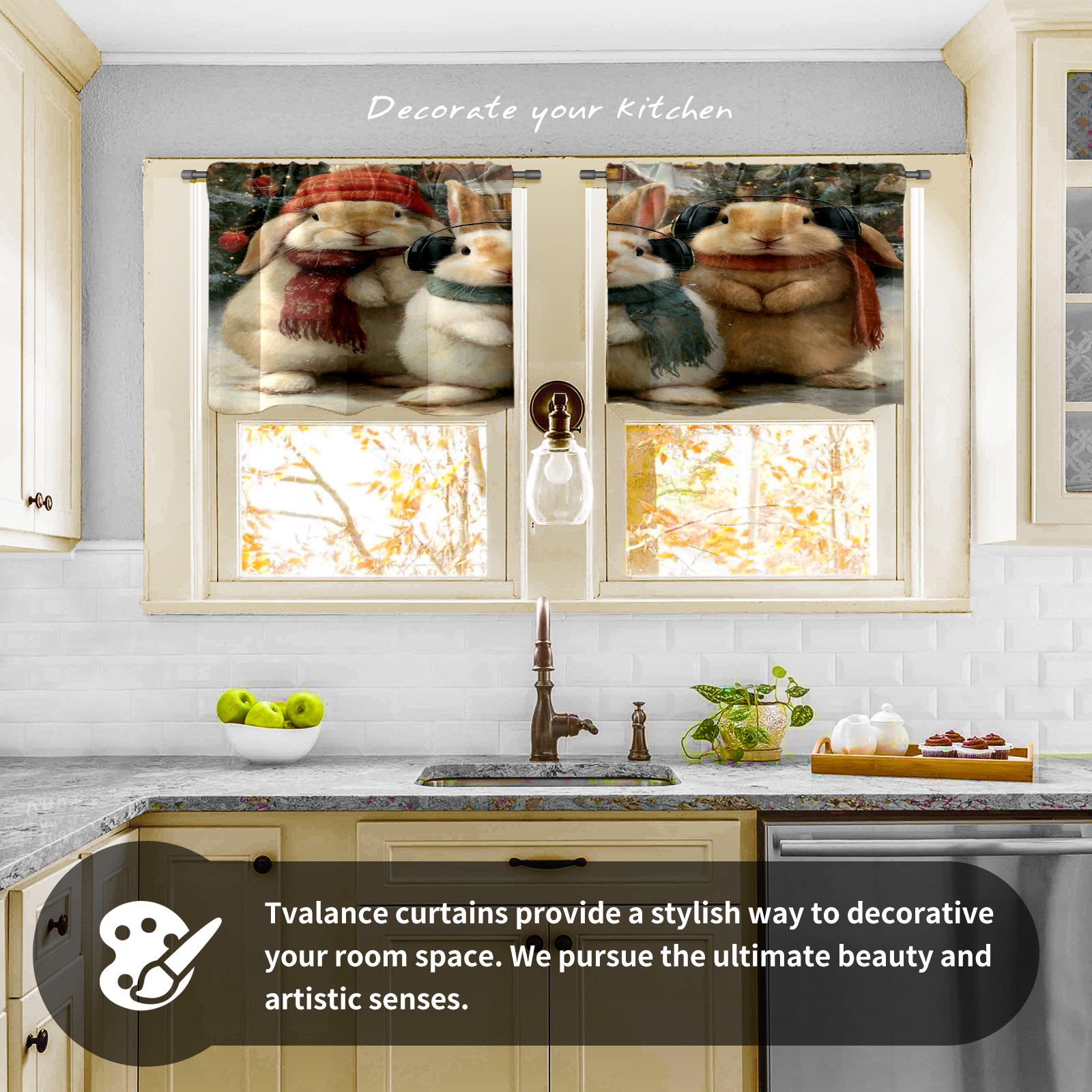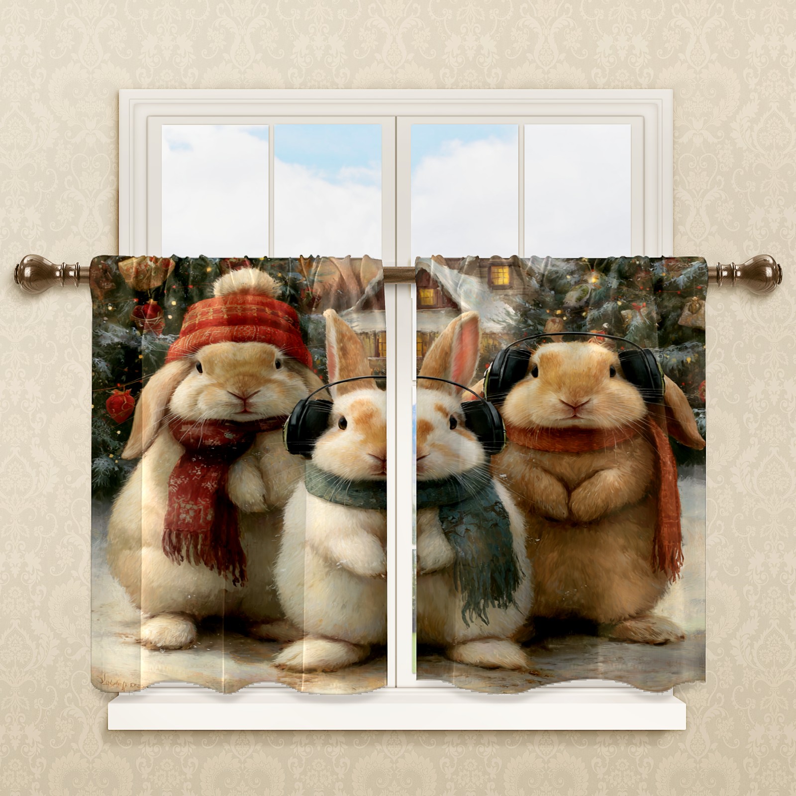 Шторы-панно для дома, декоративные драпировки для гостиной и спальни, легкие и прочные, _bjkj_Three_cute_bunnies_with_christmas_decorations_including_cc3fef81-4f2a-41f6-89ee-8fd889f36792_2