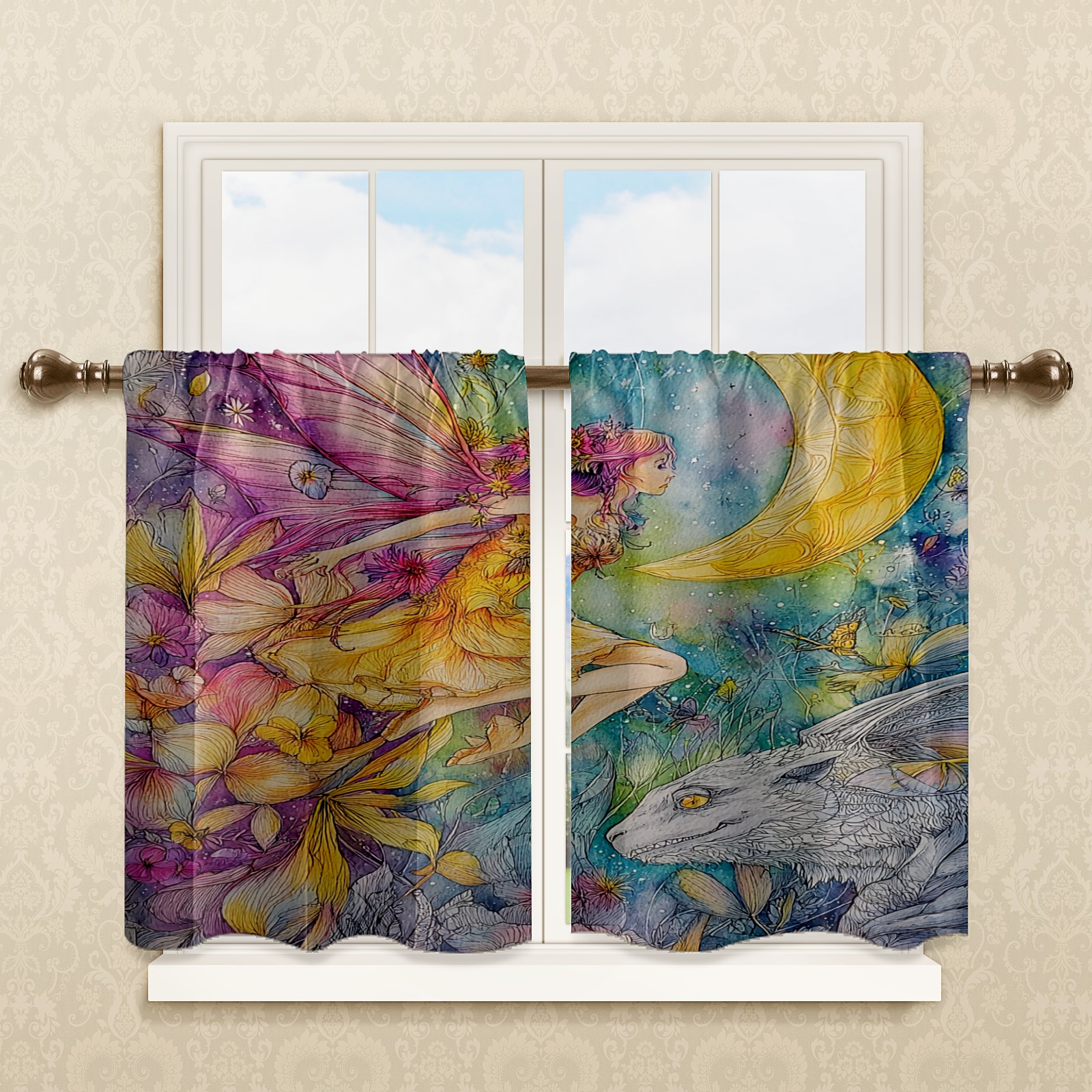 Шторы-панно для дома, декоративные драпировки для гостиной и спальни, легкие и прочные, Fantasy Fairy Yellow