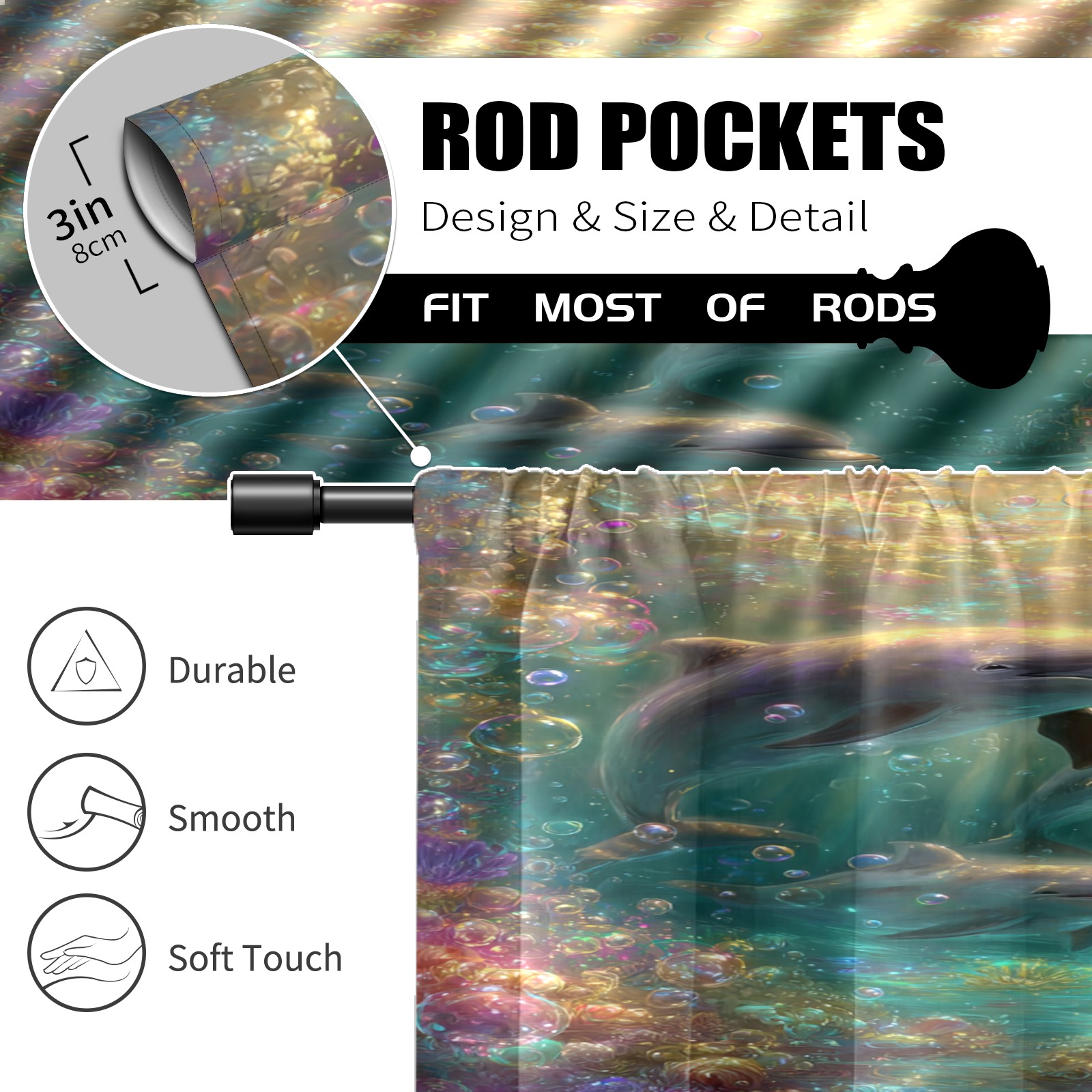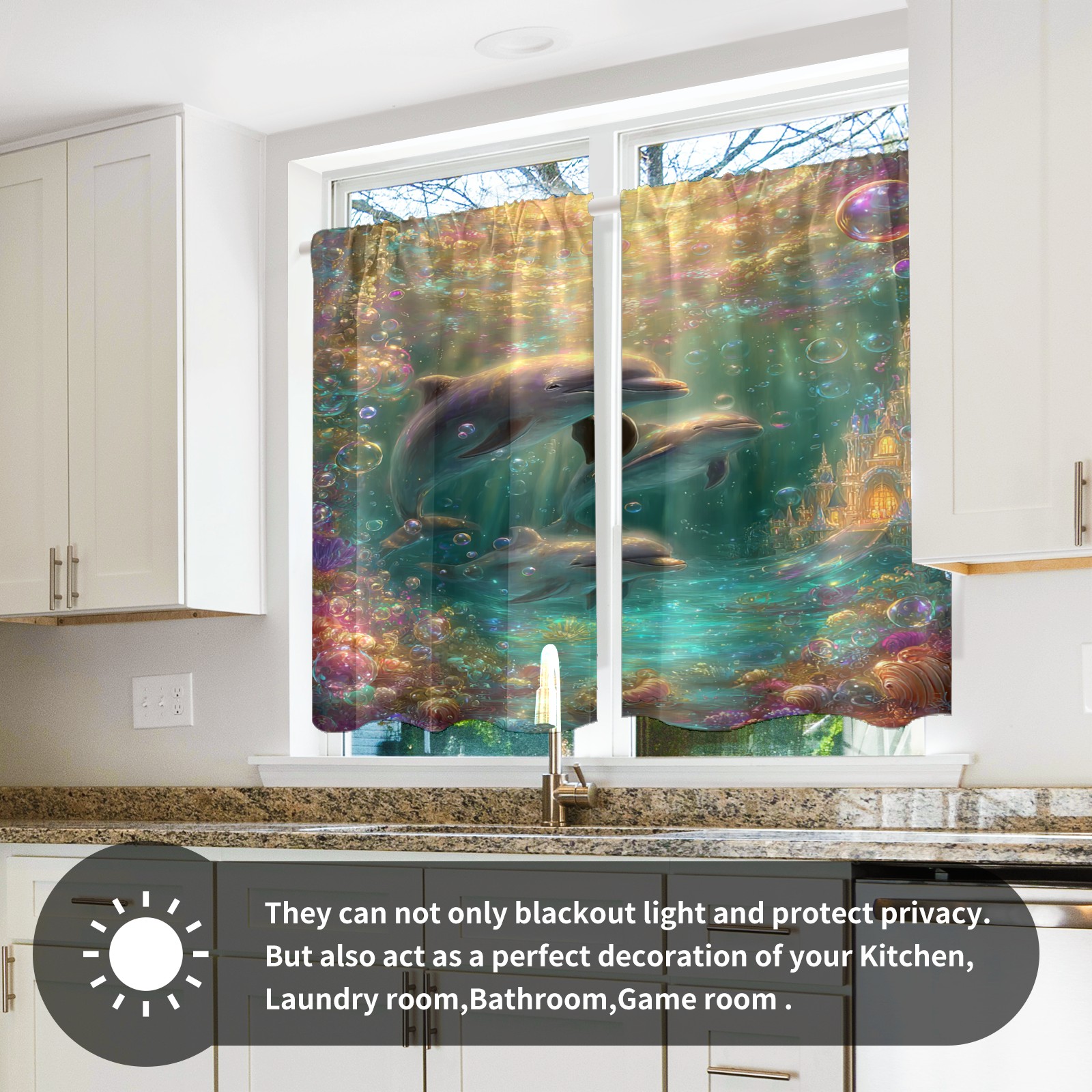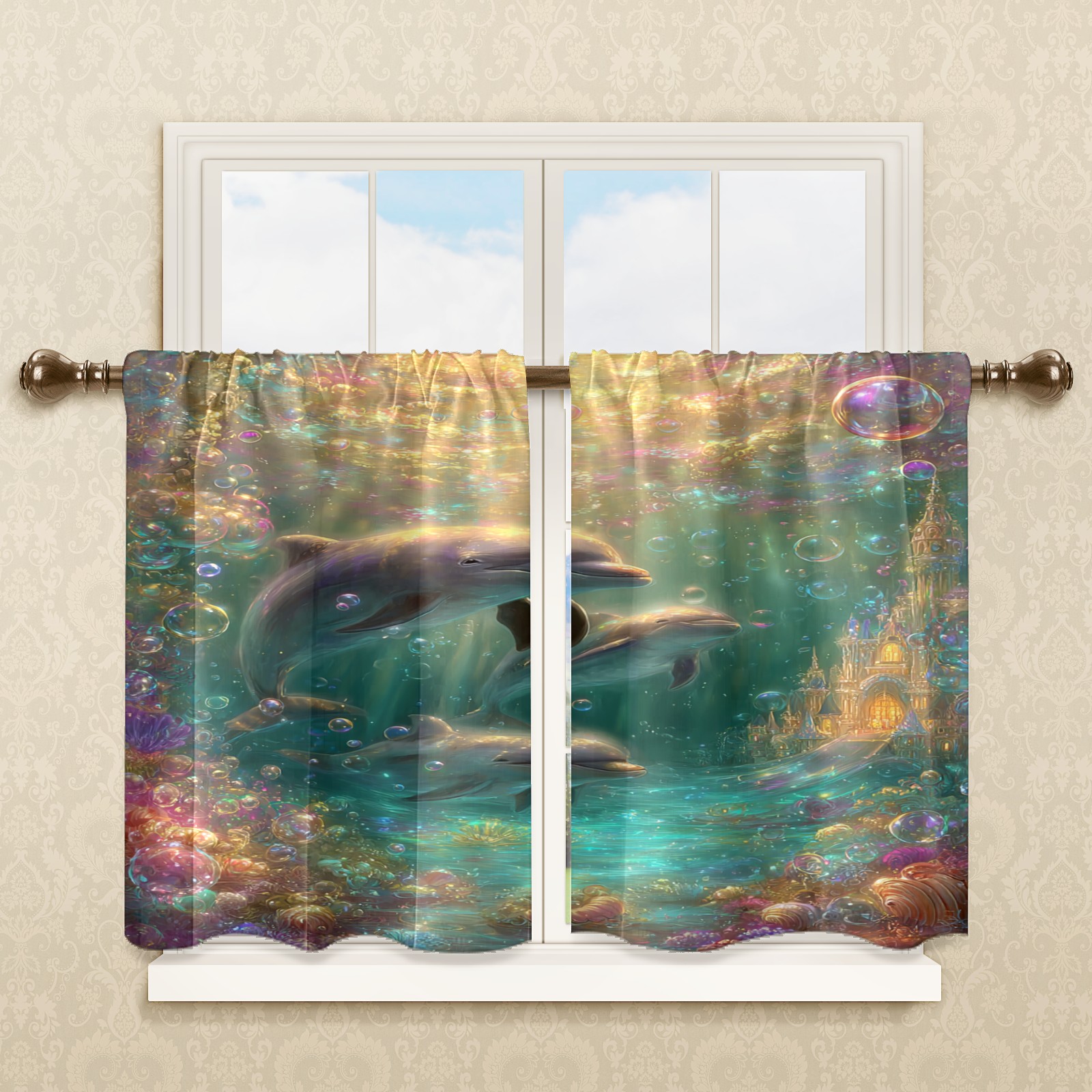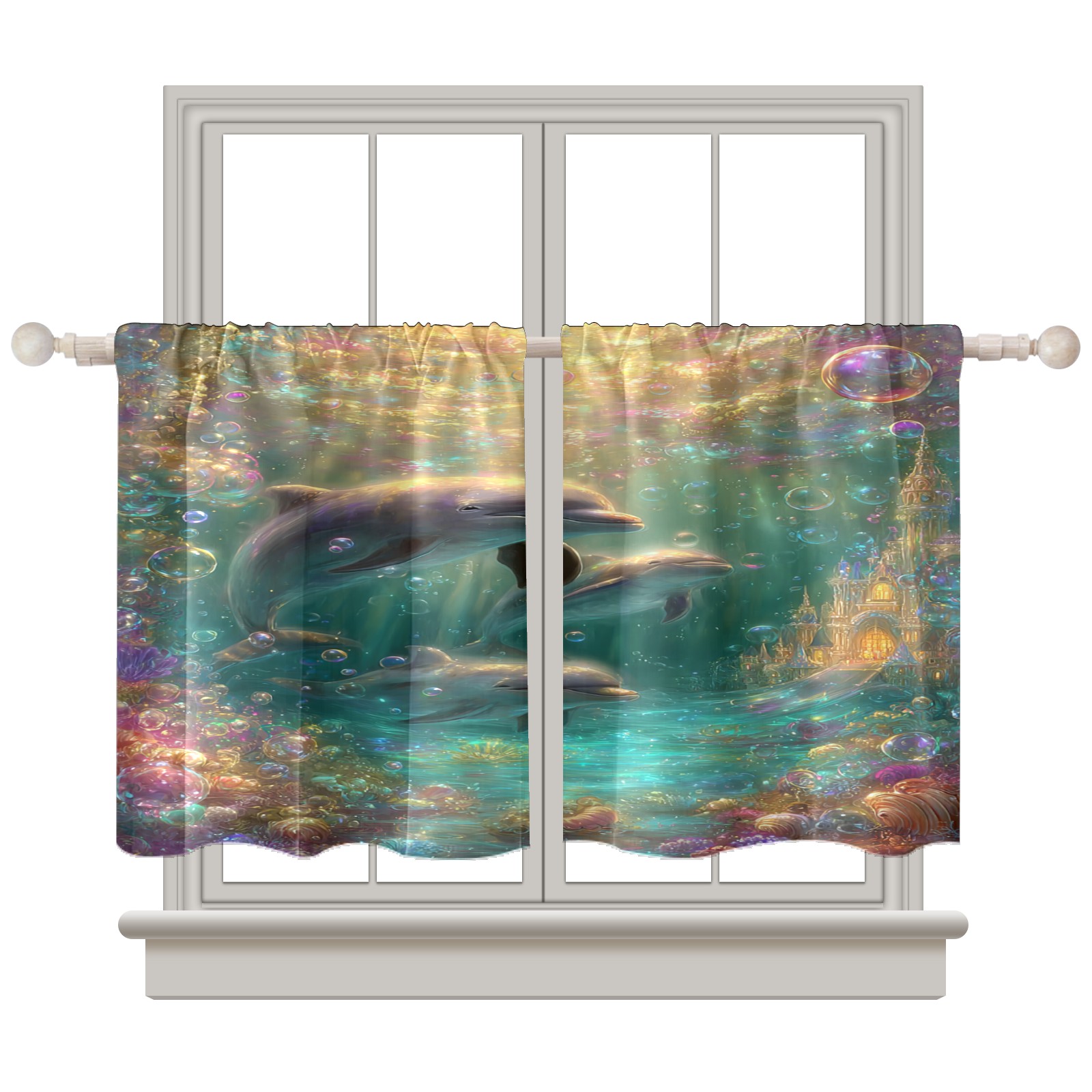 Шторы-панно для дома, декоративные драпировки для гостиной и спальни, легкие и прочные, Fantasy Dolphin Multi