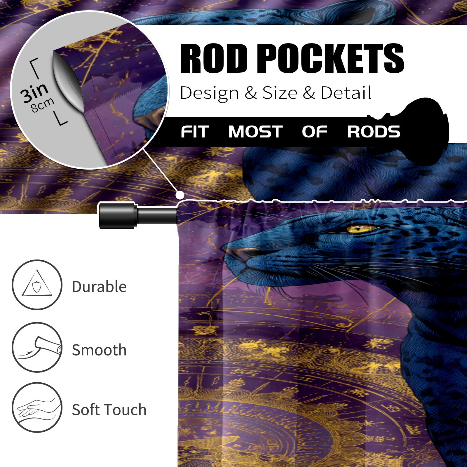 Шторы-панно для дома, декоративные драпировки для гостиной и спальни, легкие и прочные, Mysterious Blue Panther