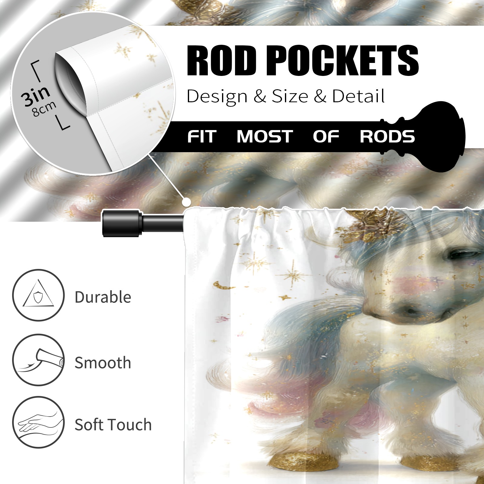 Шторы-панно для дома, декоративные драпировки для гостиной и спальни, легкие и прочные, Dreamy Unicorn White