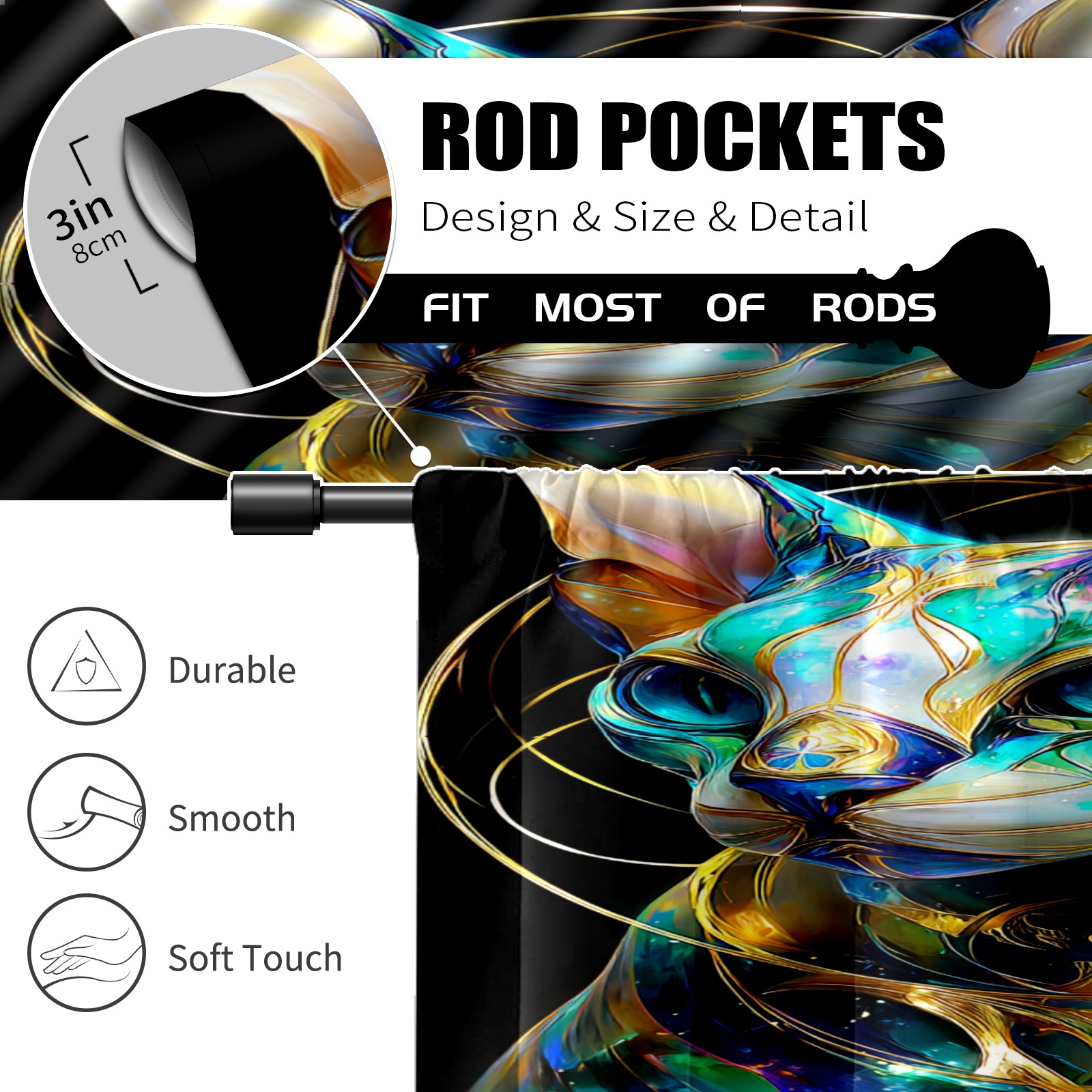 Шторы-панно для дома, декоративные драпировки для гостиной и спальни, легкие и прочные, Vibrant Cat Multi