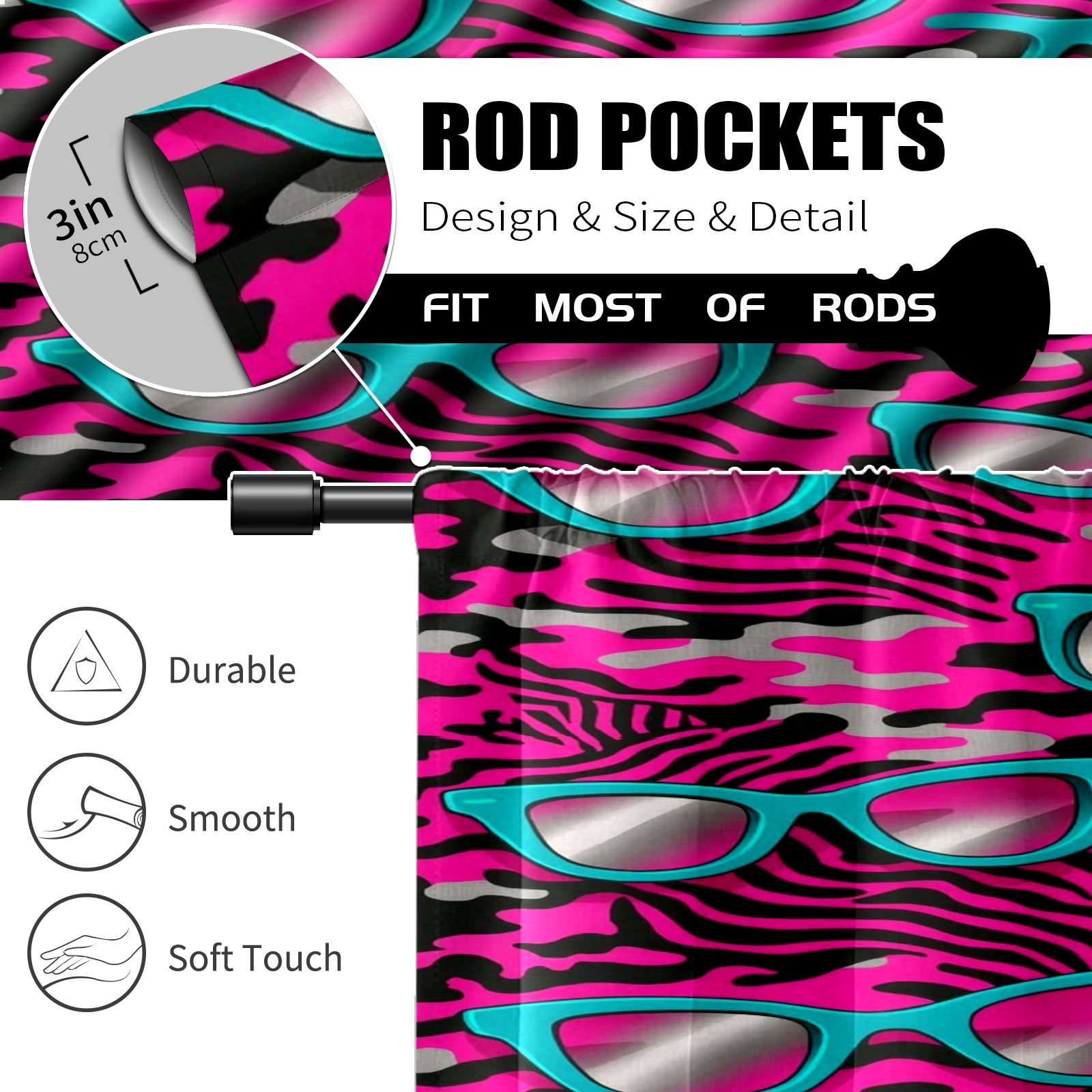 Шторы-панно для дома, декоративные драпировки для гостиной и спальни, легкие и прочные, Cool Sunglasses Pink