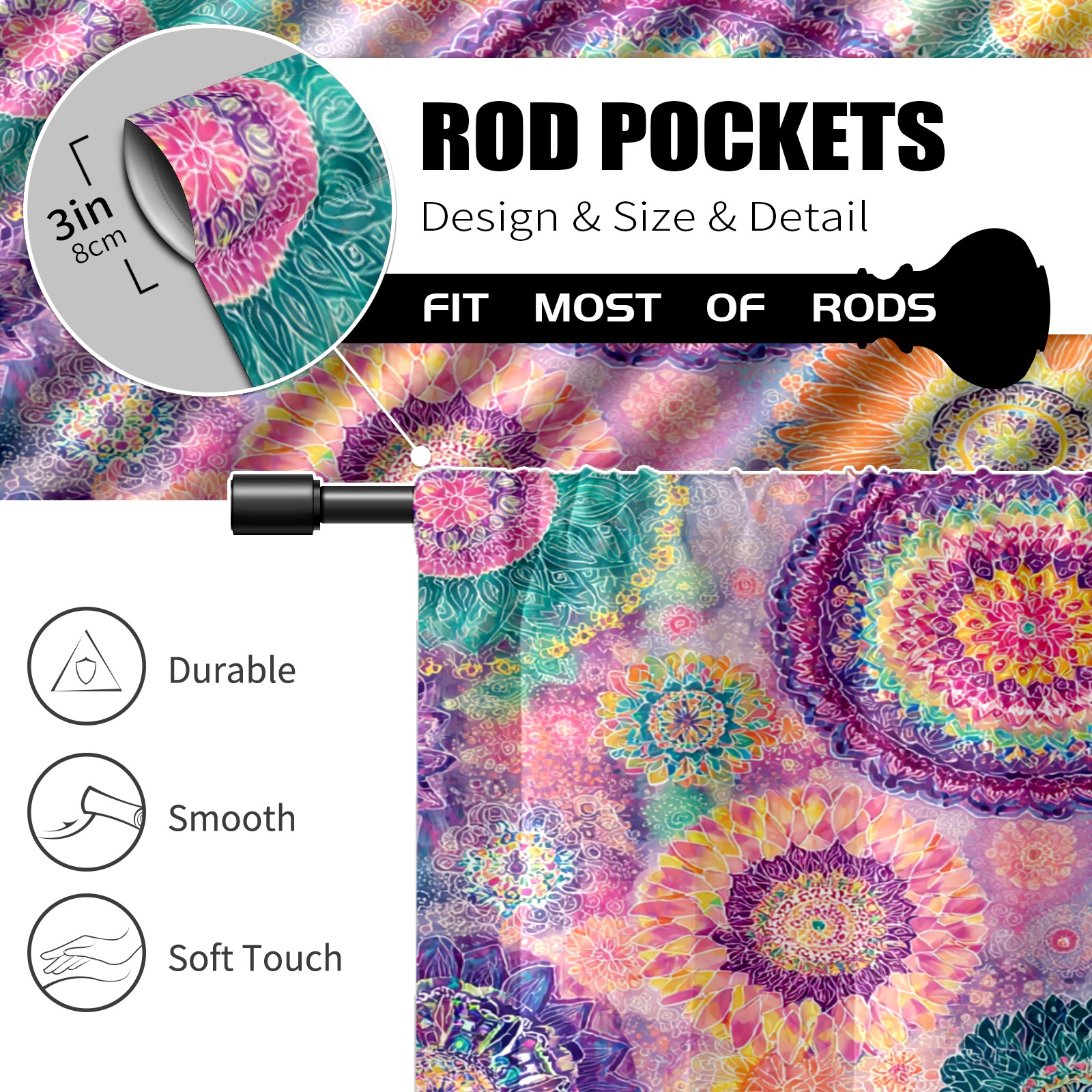 Шторы-панно для дома, декоративные драпировки для гостиной и спальни, легкие и прочные, Vibrant Pattern Multi