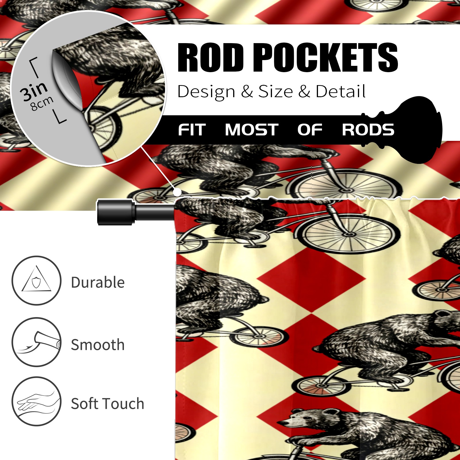 Шторы-панно для дома, декоративные драпировки для гостиной и спальни, легкие и прочные, Circus Bear 3