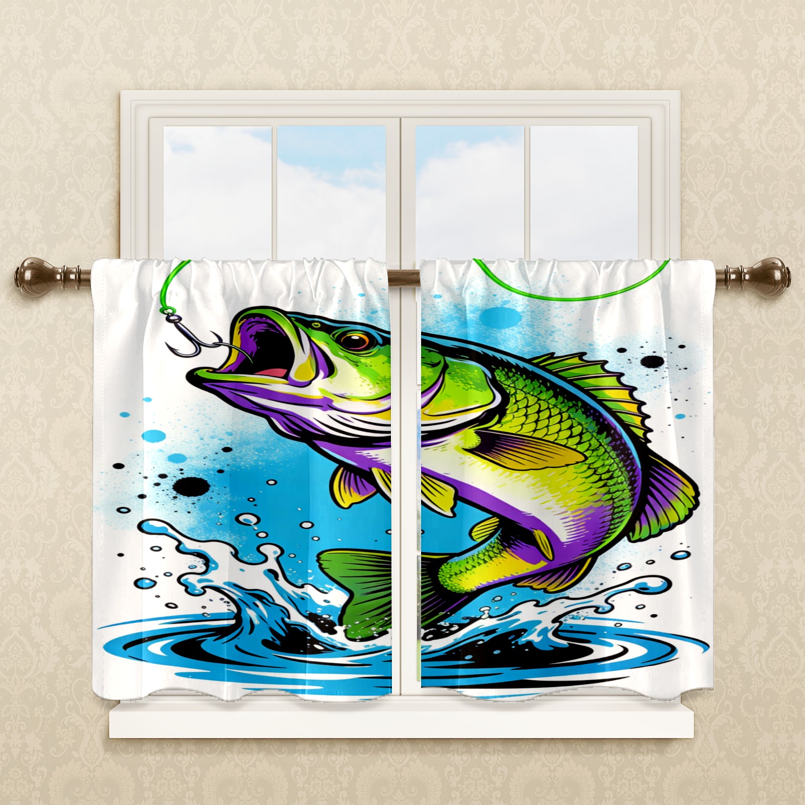 Шторы-панно для дома, декоративные драпировки для гостиной и спальни, легкие и прочные, Bass That Bite 1