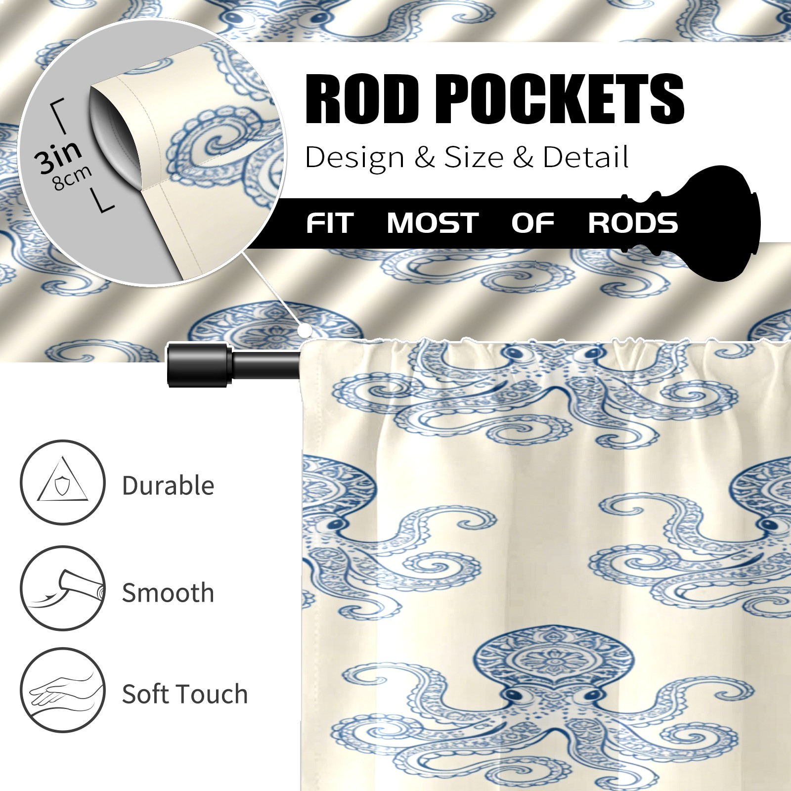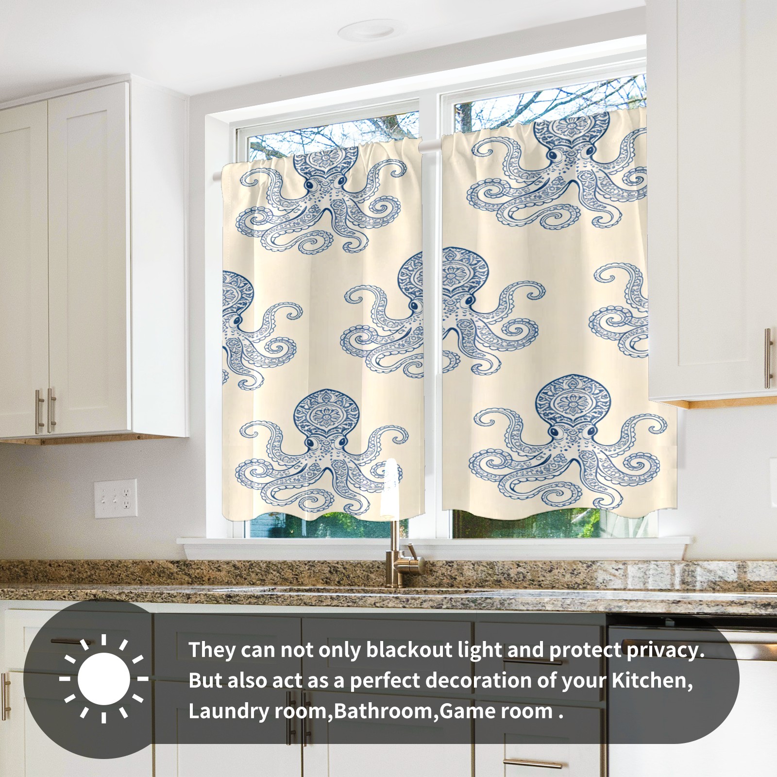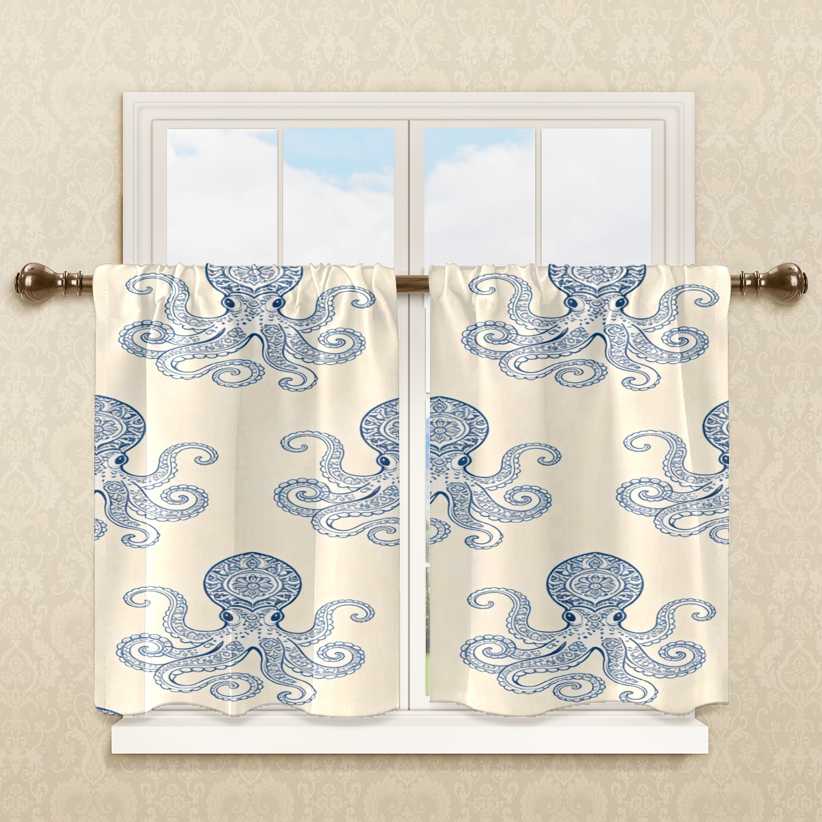 Шторы-панно для дома, декоративные драпировки для гостиной и спальни, легкие и прочные, Blue-striped Octopus