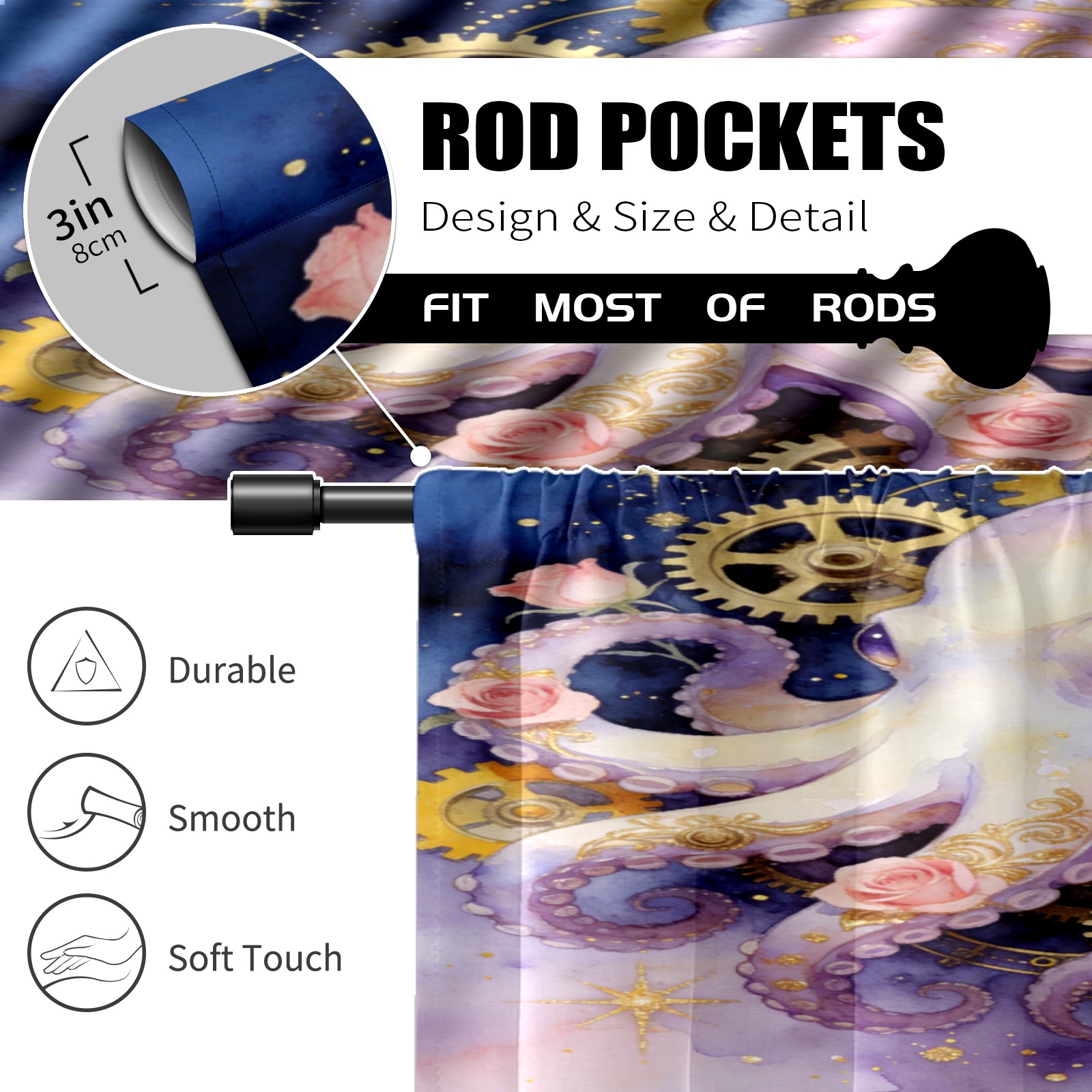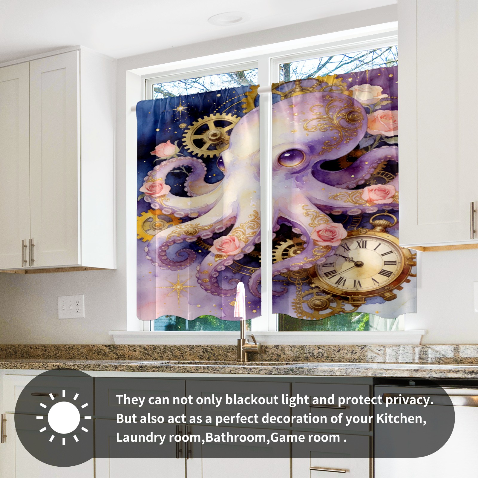 Шторы-панно для дома, декоративные драпировки для гостиной и спальни, легкие и прочные, Steampunk Octopus 1