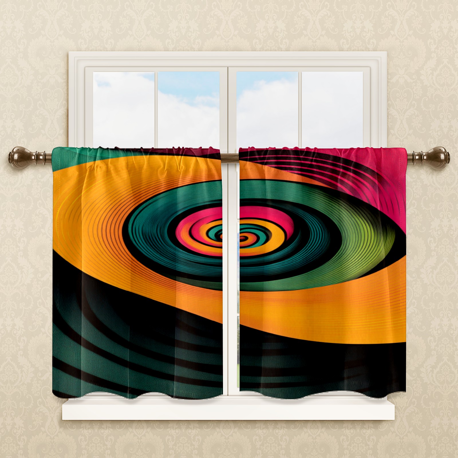 Шторы-панно для дома, декоративные драпировки для гостиной и спальни, легкие и прочные, Pink Yellow Swirling Pattern(1)