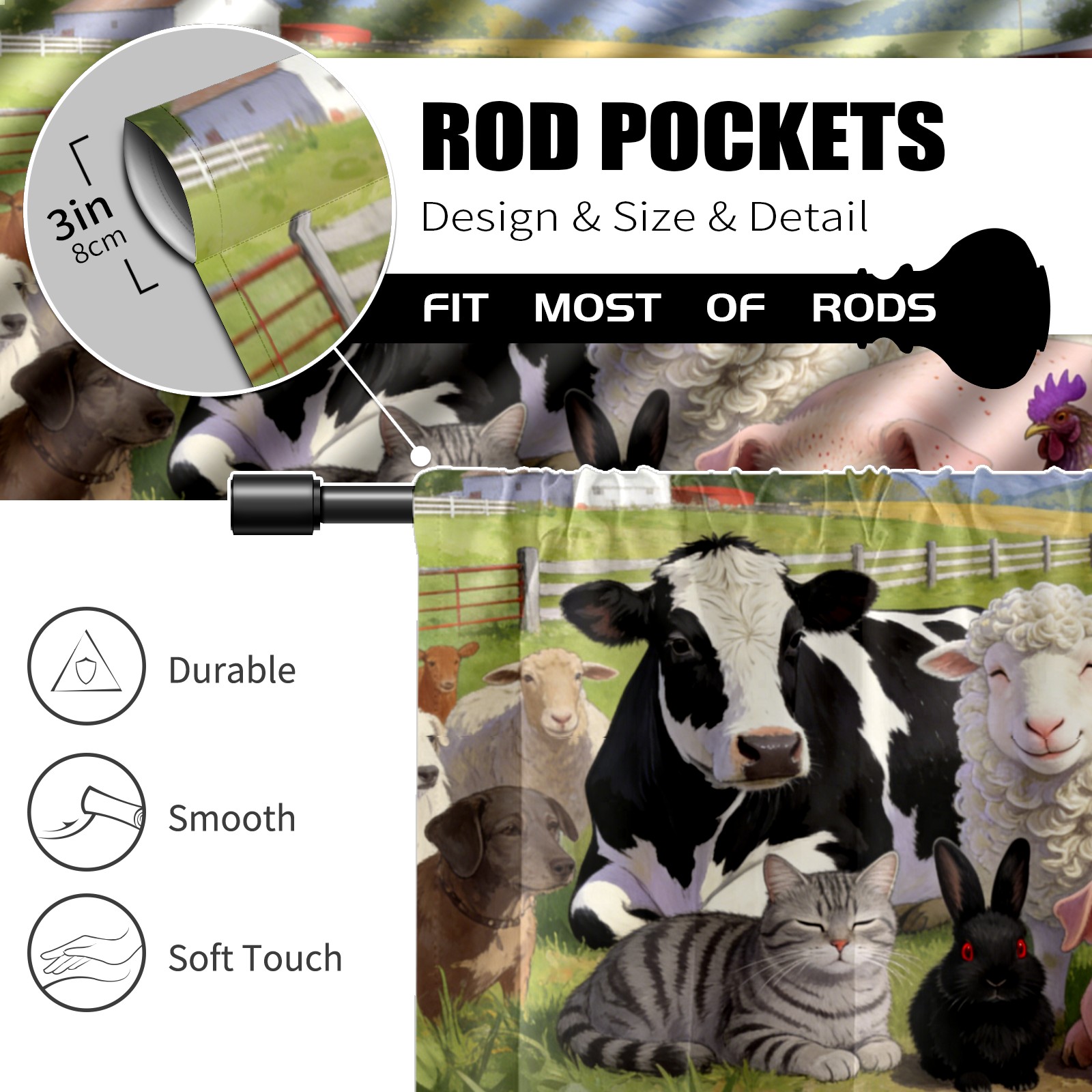 Шторы-панно для дома, декоративные драпировки для гостиной и спальни, легкие и прочные, Farm Animal Collection 1