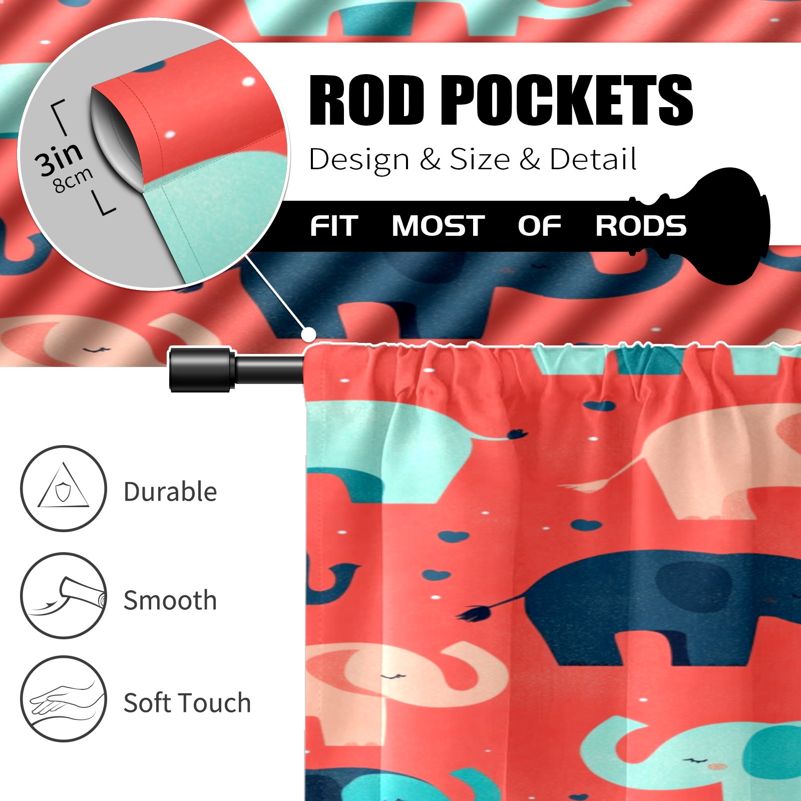 Шторы-панно для дома, декоративные драпировки для гостиной и спальни, легкие и прочные, Cartoon Elephant Pattern(2)