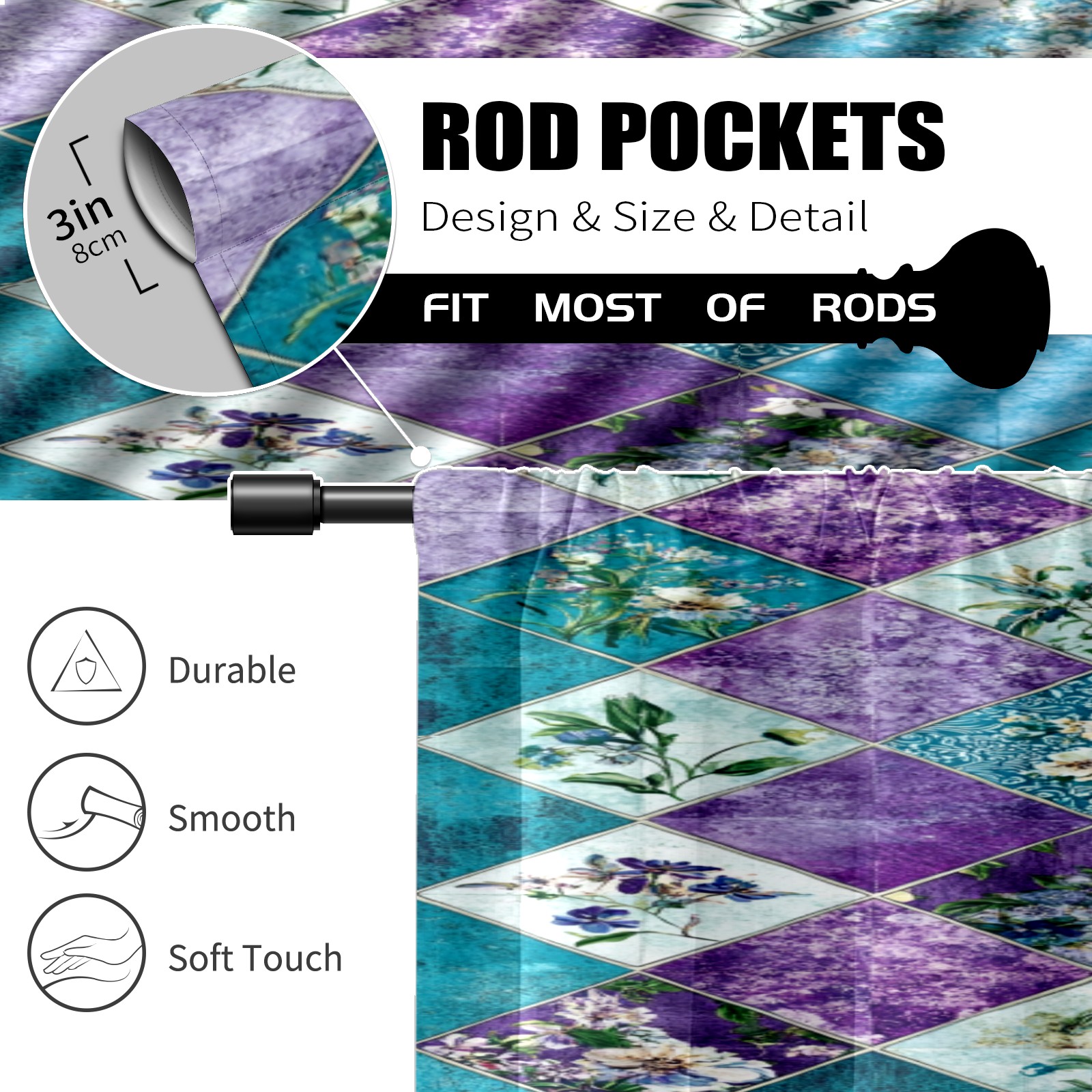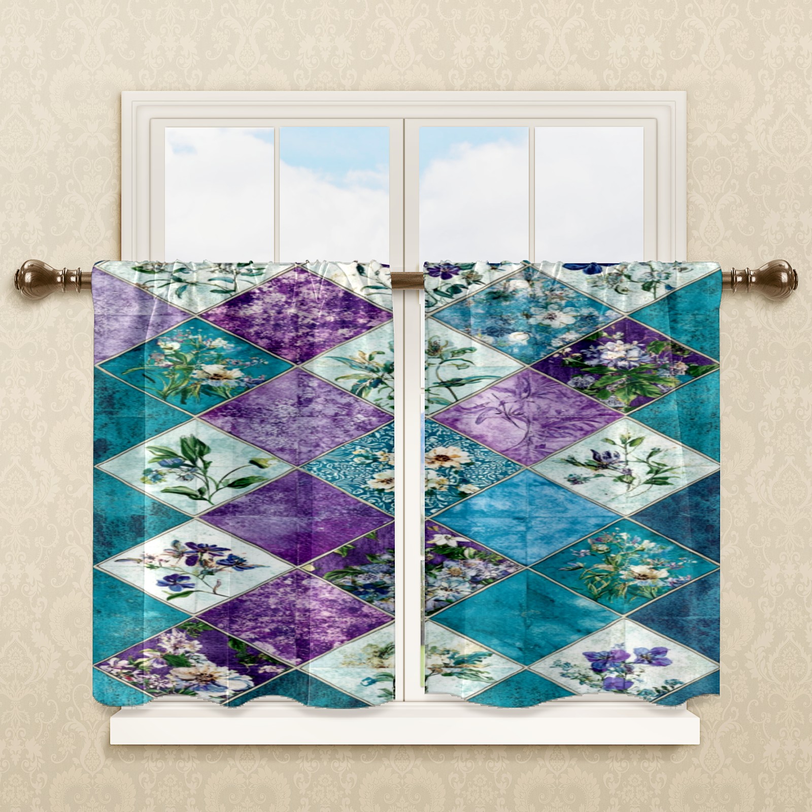 Шторы-панно для дома, декоративные драпировки для гостиной и спальни, легкие и прочные, Checkered Floral Pattern