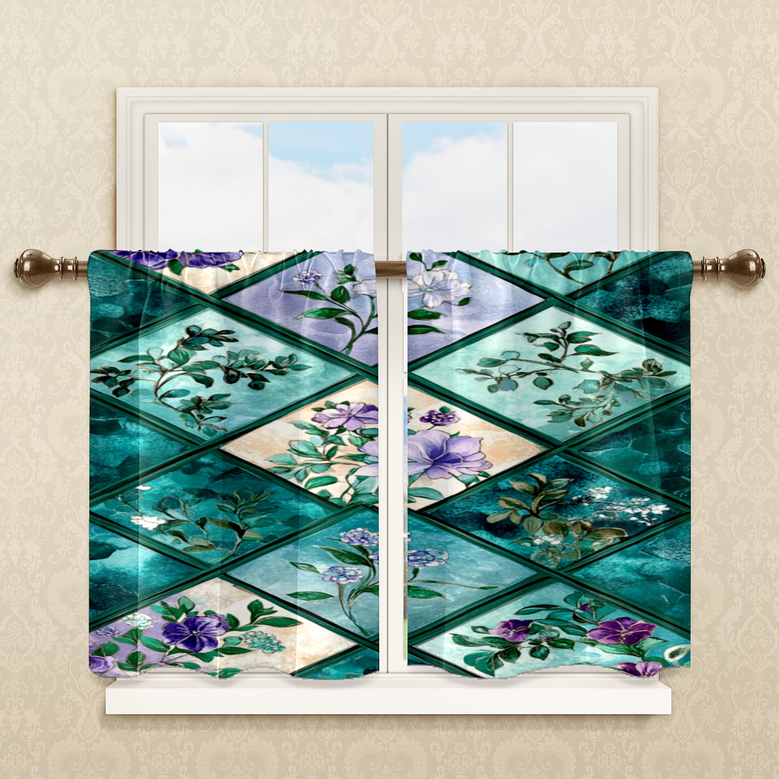 Шторы-панно для дома, декоративные драпировки для гостиной и спальни, легкие и прочные, Checkered Floral Pattern(3)