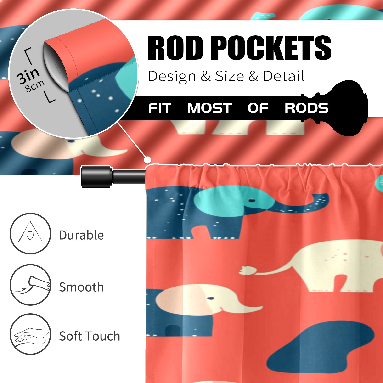 Шторы-панно для дома, декоративные драпировки для гостиной и спальни, легкие и прочные, Cartoon Elephant Pattern