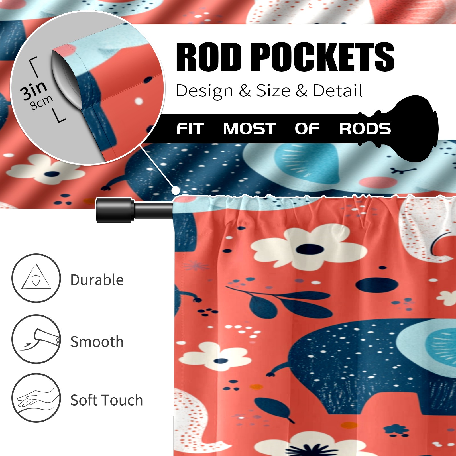 Шторы-панно для дома, декоративные драпировки для гостиной и спальни, легкие и прочные, Cartoon Elephant Pattern(1)