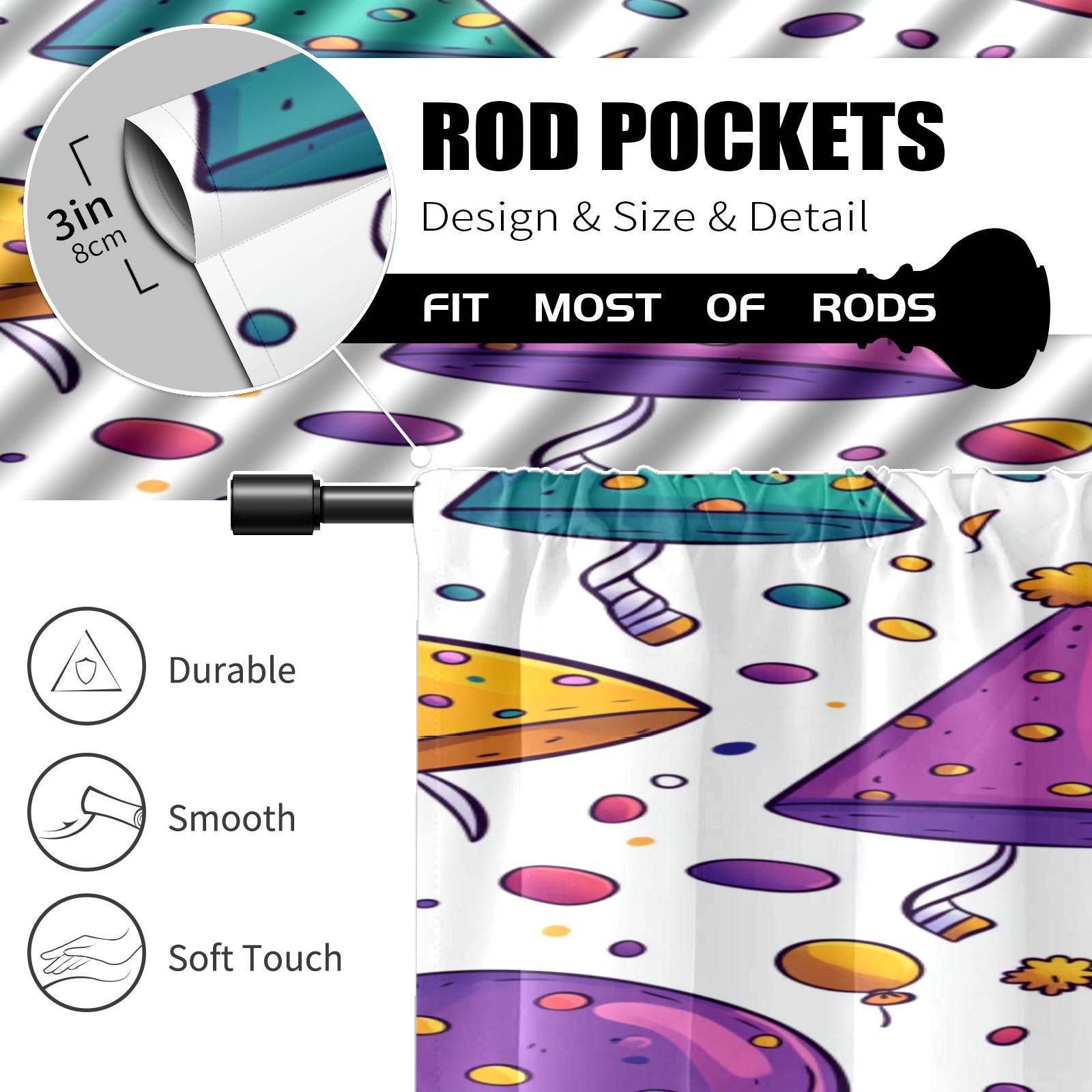 Шторы-панно для дома, декоративные драпировки для гостиной и спальни, легкие и прочные, Birthday Hat Pattern