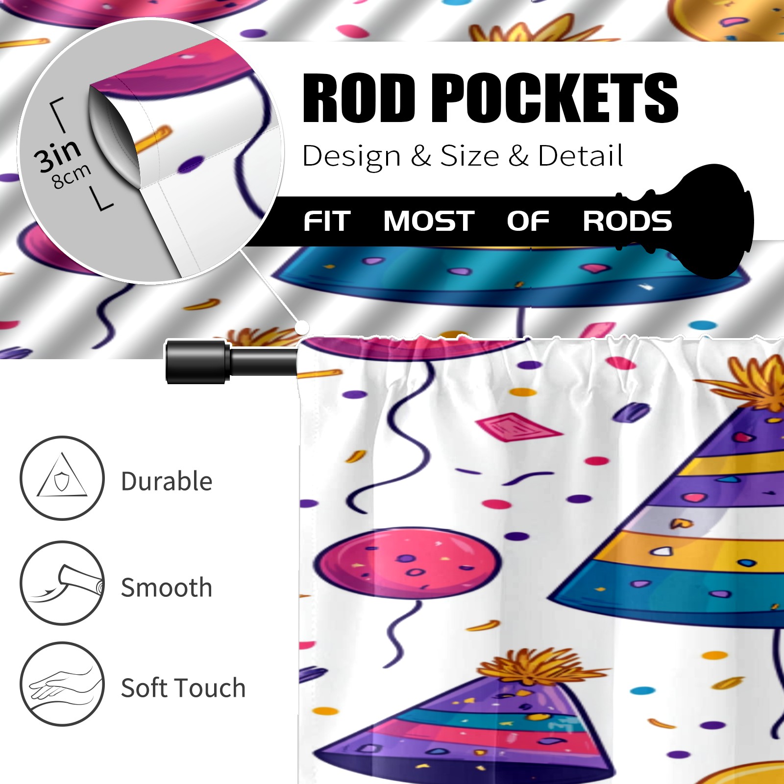 Шторы-панно для дома, декоративные драпировки для гостиной и спальни, легкие и прочные, Birthday Hat Pattern(1)