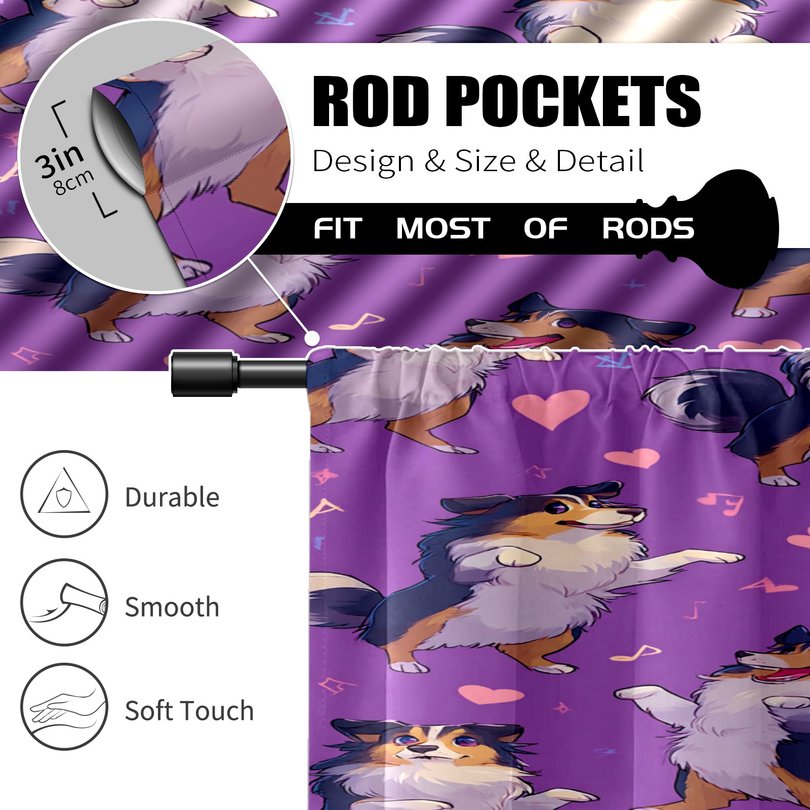 Шторы-панно для дома, декоративные драпировки для гостиной и спальни, легкие и прочные, Cute Puppy Purple