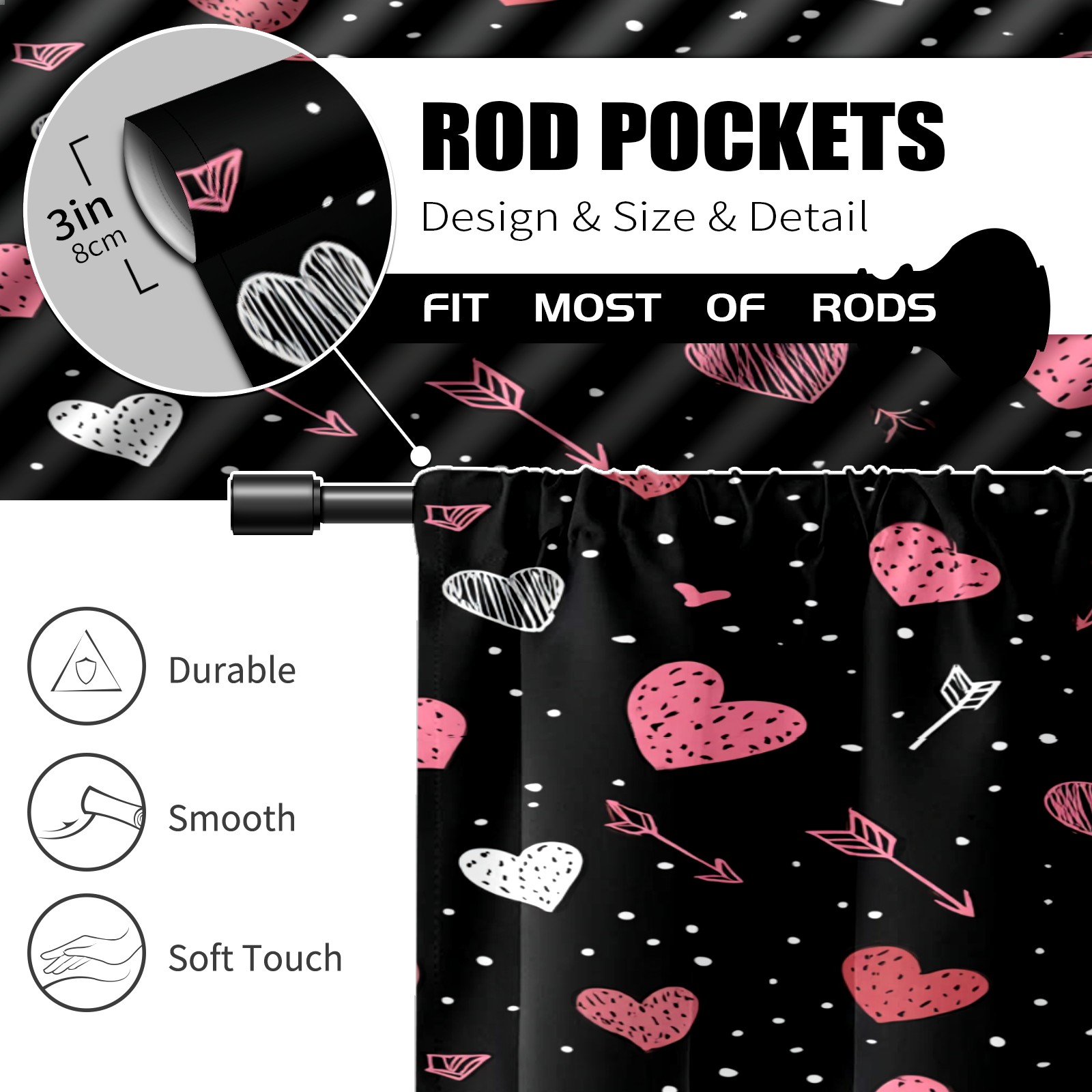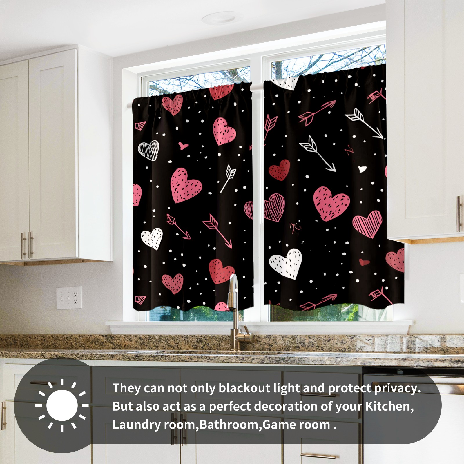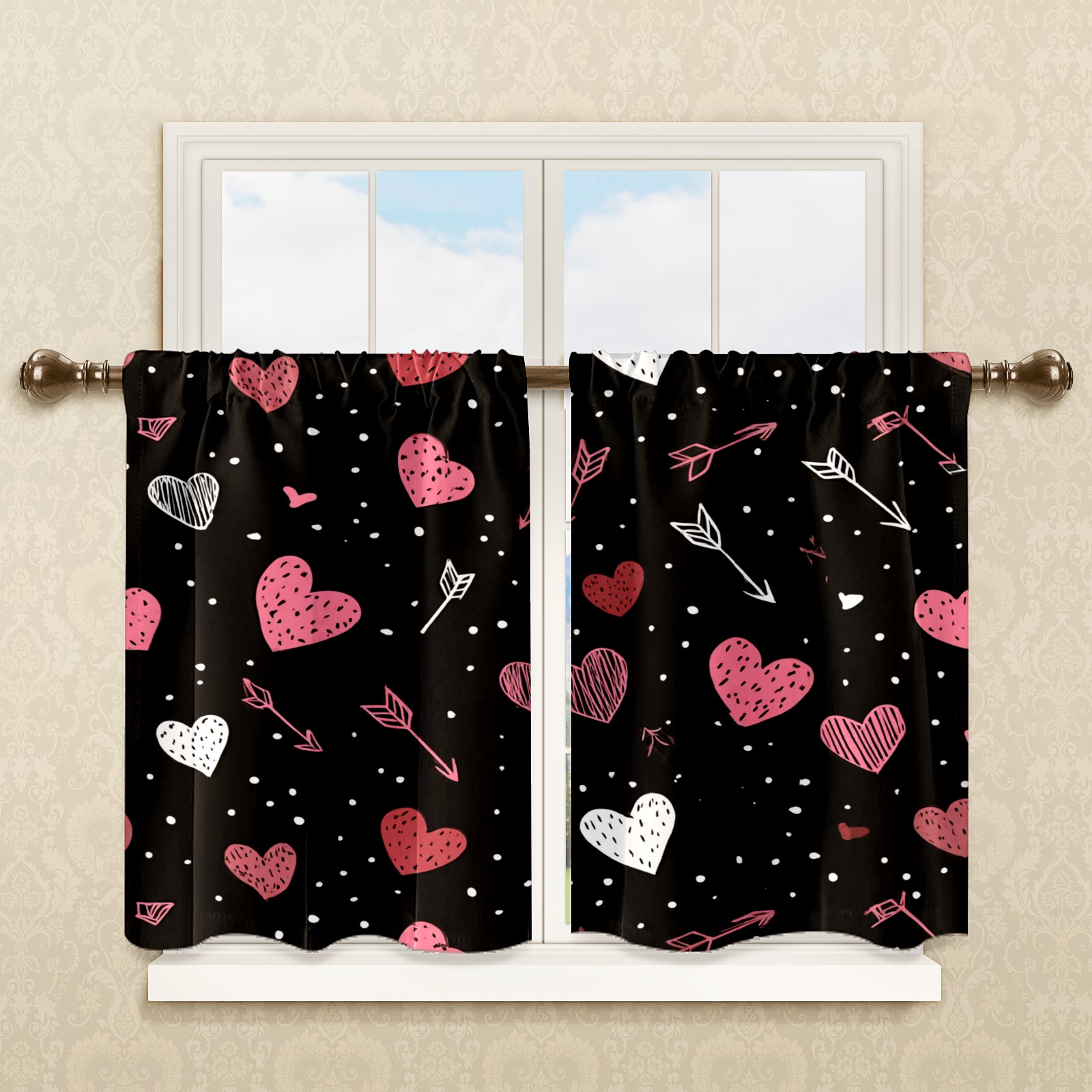 Шторы-панно для дома, декоративные драпировки для гостиной и спальни, легкие и прочные, Heart Arrow Black